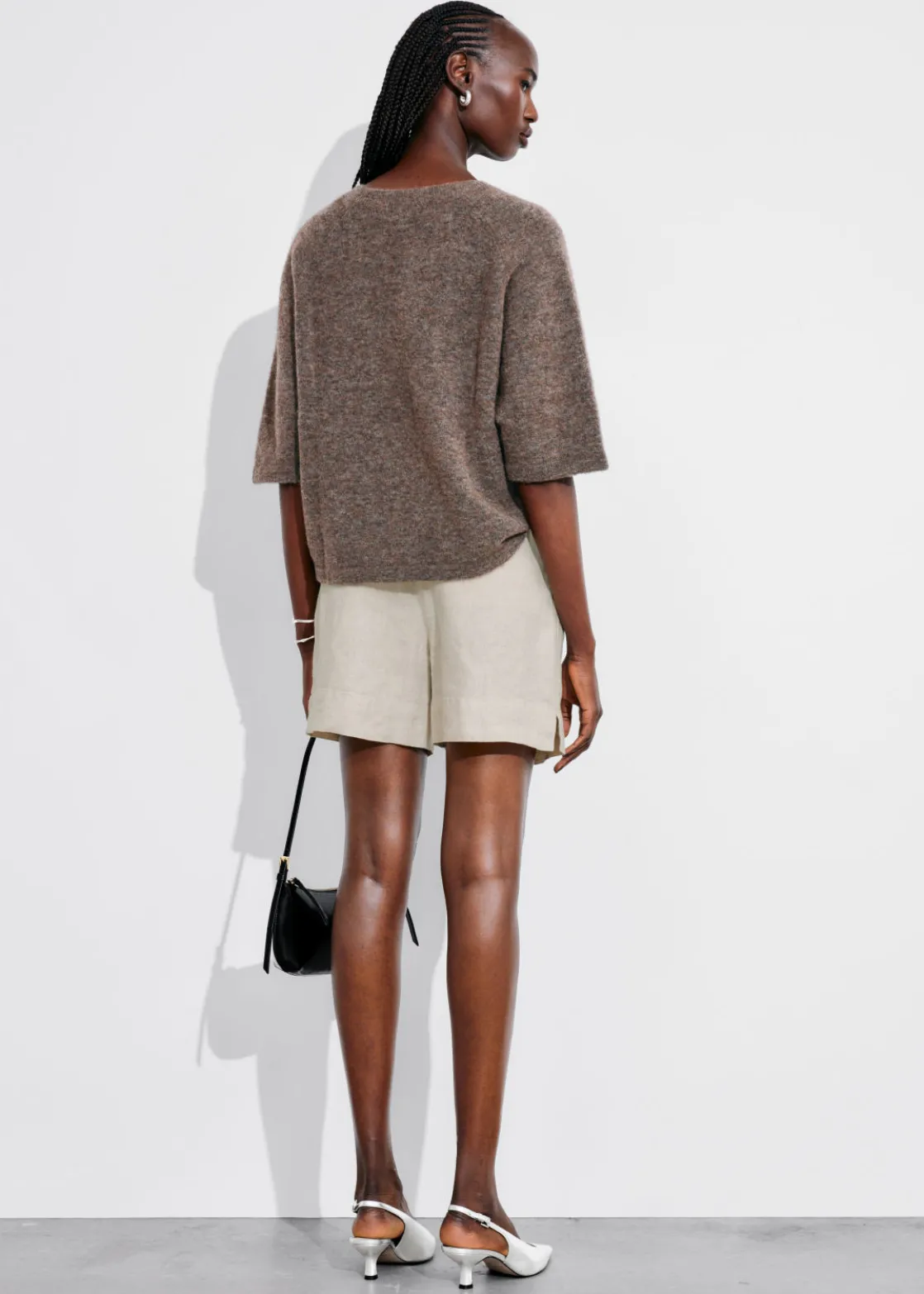 Crewneck t-shirt knitted from alpaca and merino wool.