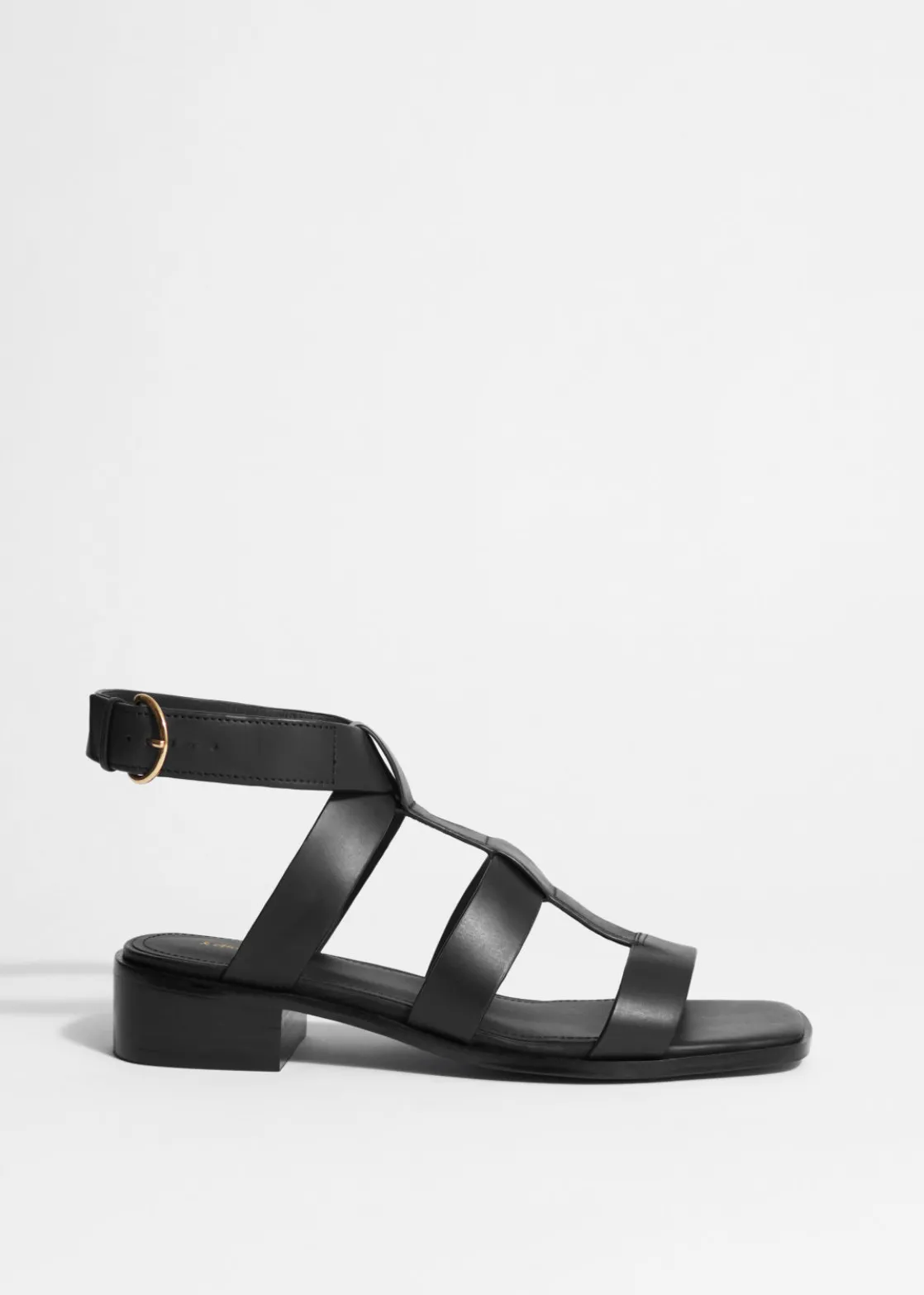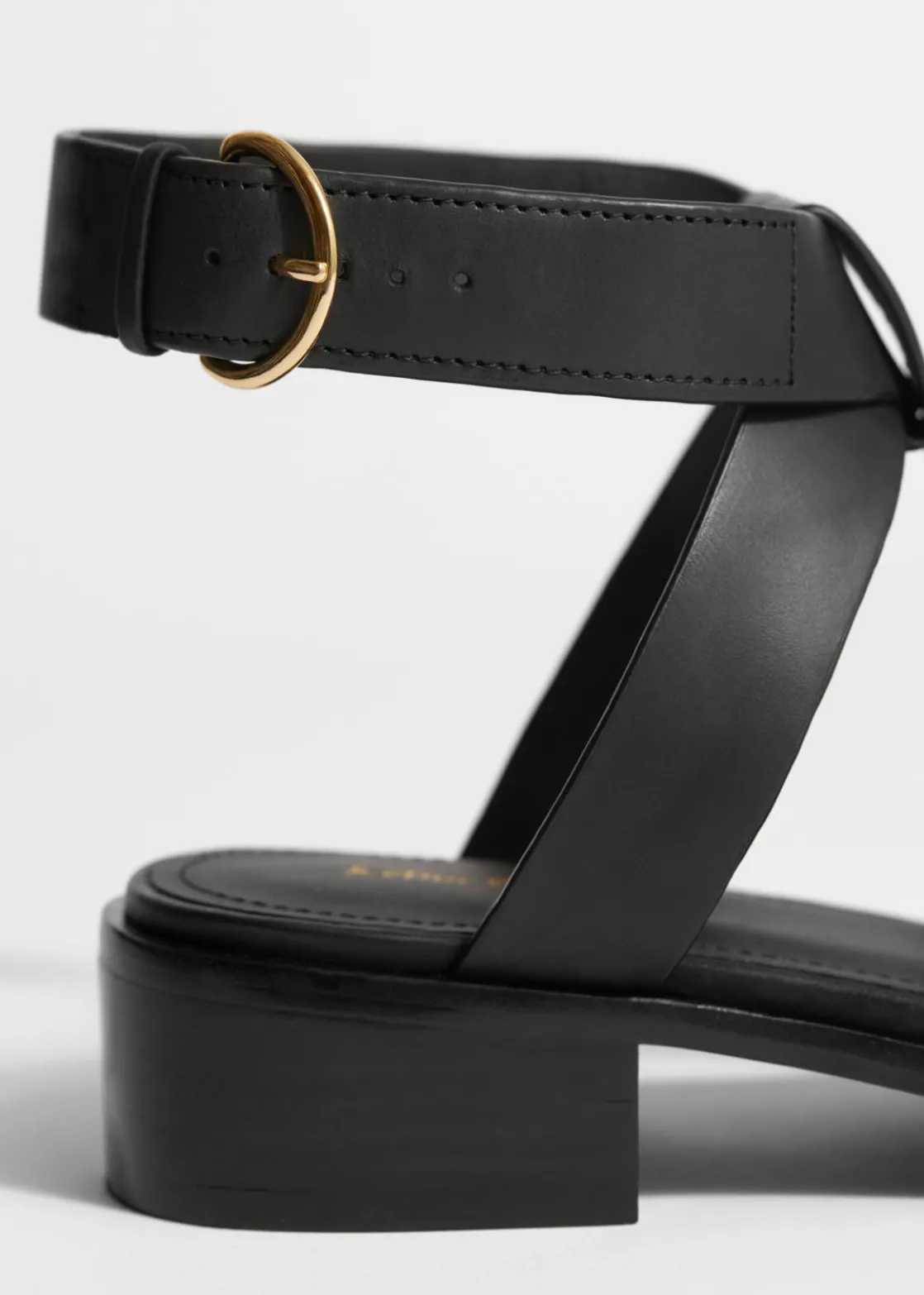 These classic sandals, crafted from supple leather, are designed with sleek straps and secure at the ankle with a gold-tone buckle. The slight block heels add height to your outfit without compromising on comfort.