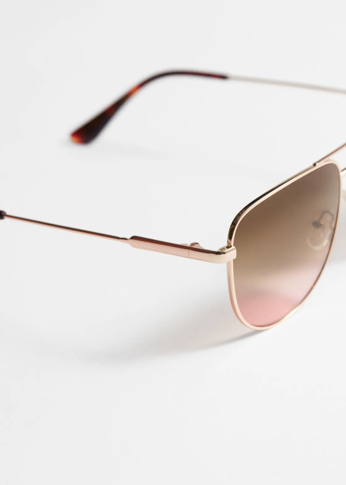 Sunglasses with a classic aviator finish. Featuring gradient lenses, nosepads and temple tips.