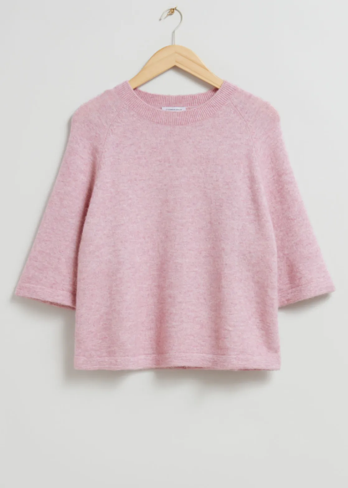 Boxy crewneck t-shirt knitted from alpaca, featuring short raglan sleeves.