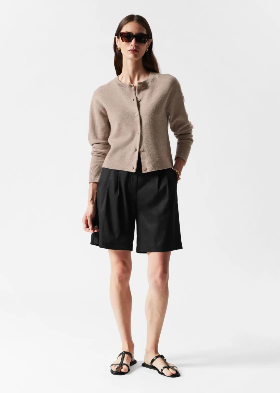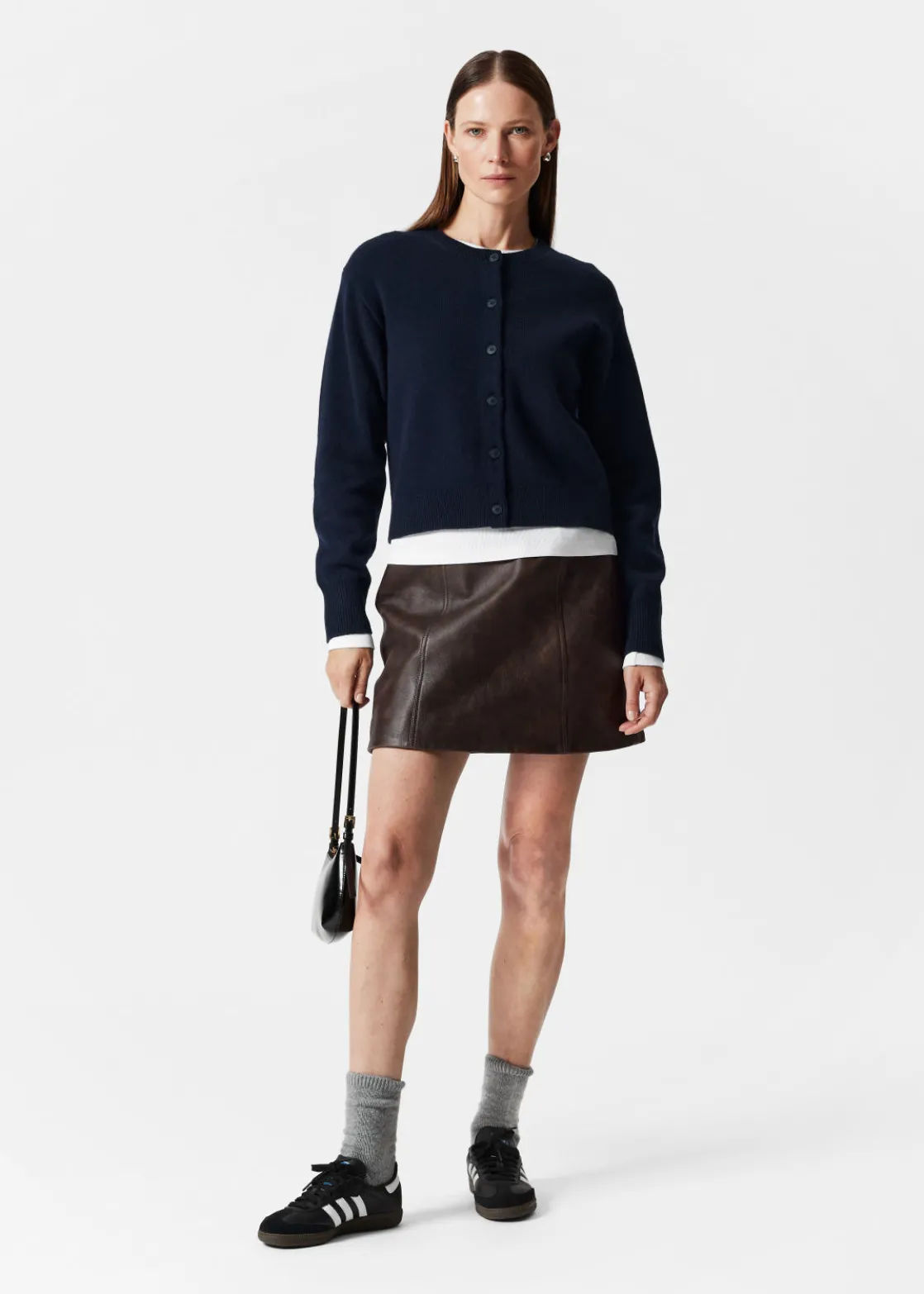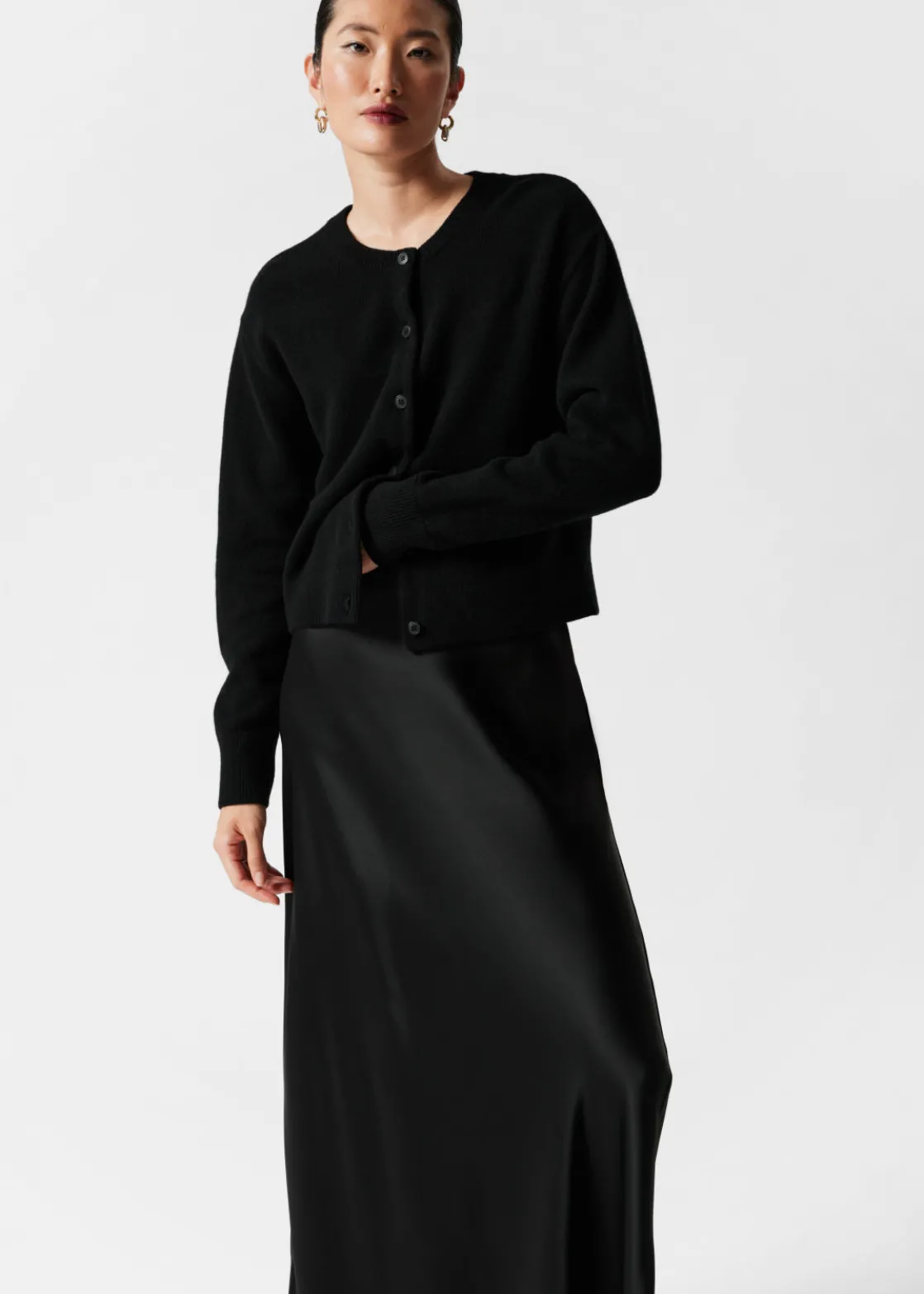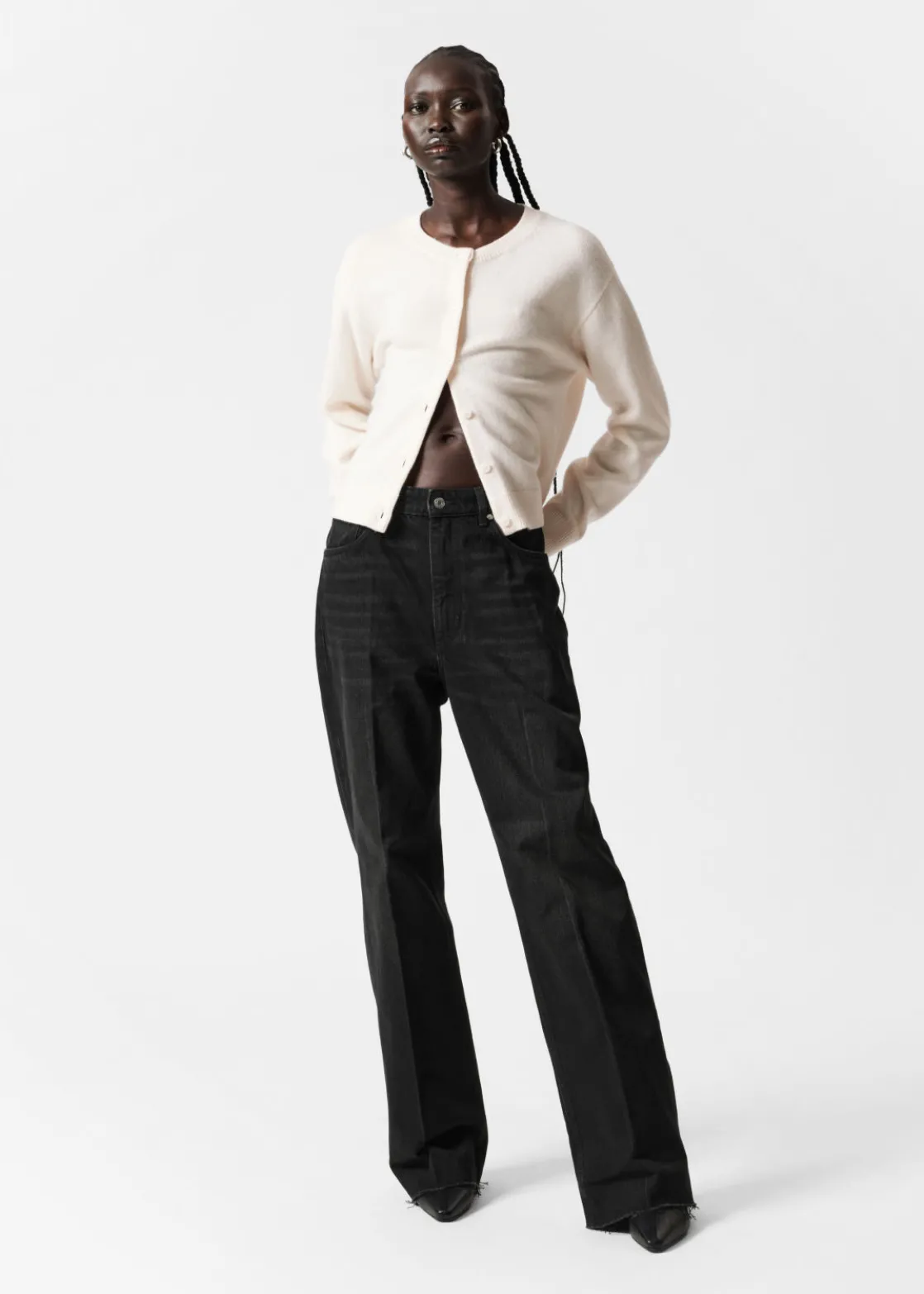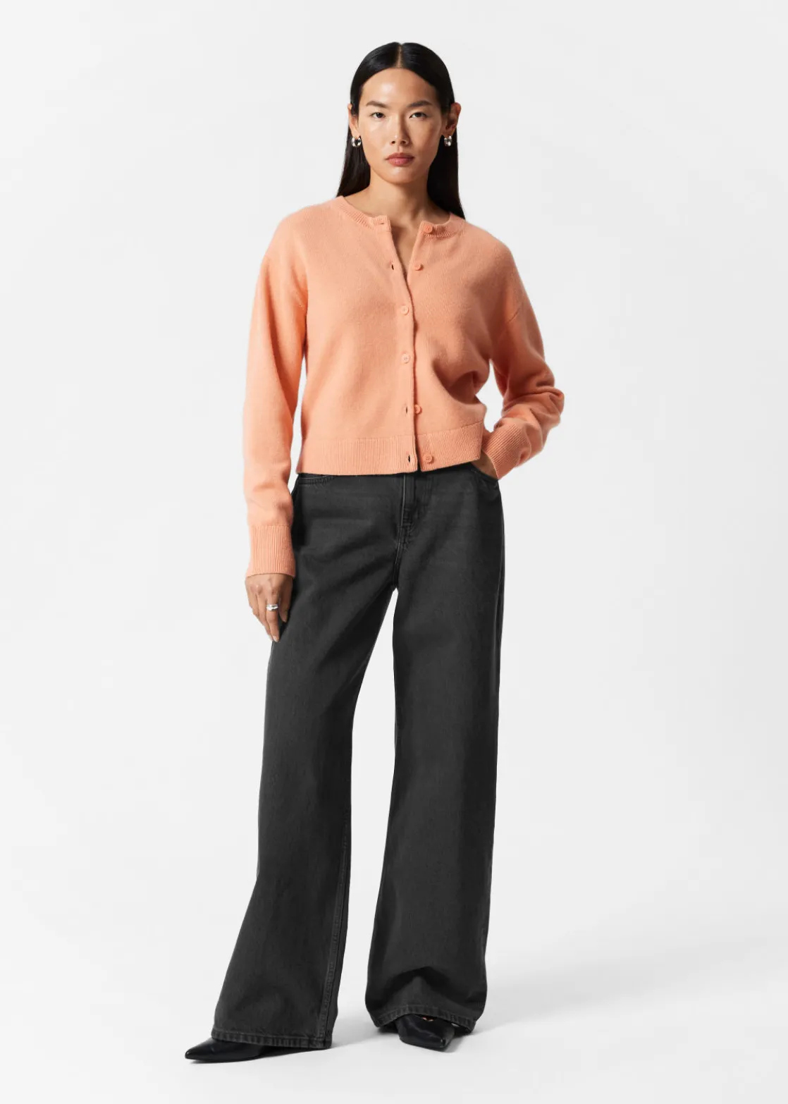 Boxy merino wool cardigan finished with a ribbed neckline, cuffs and hemline.