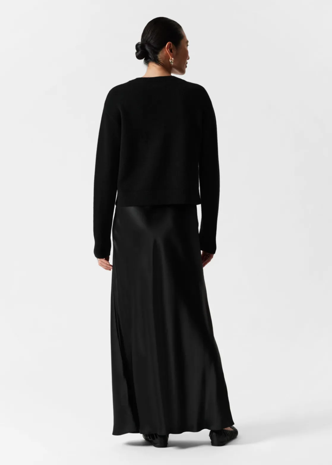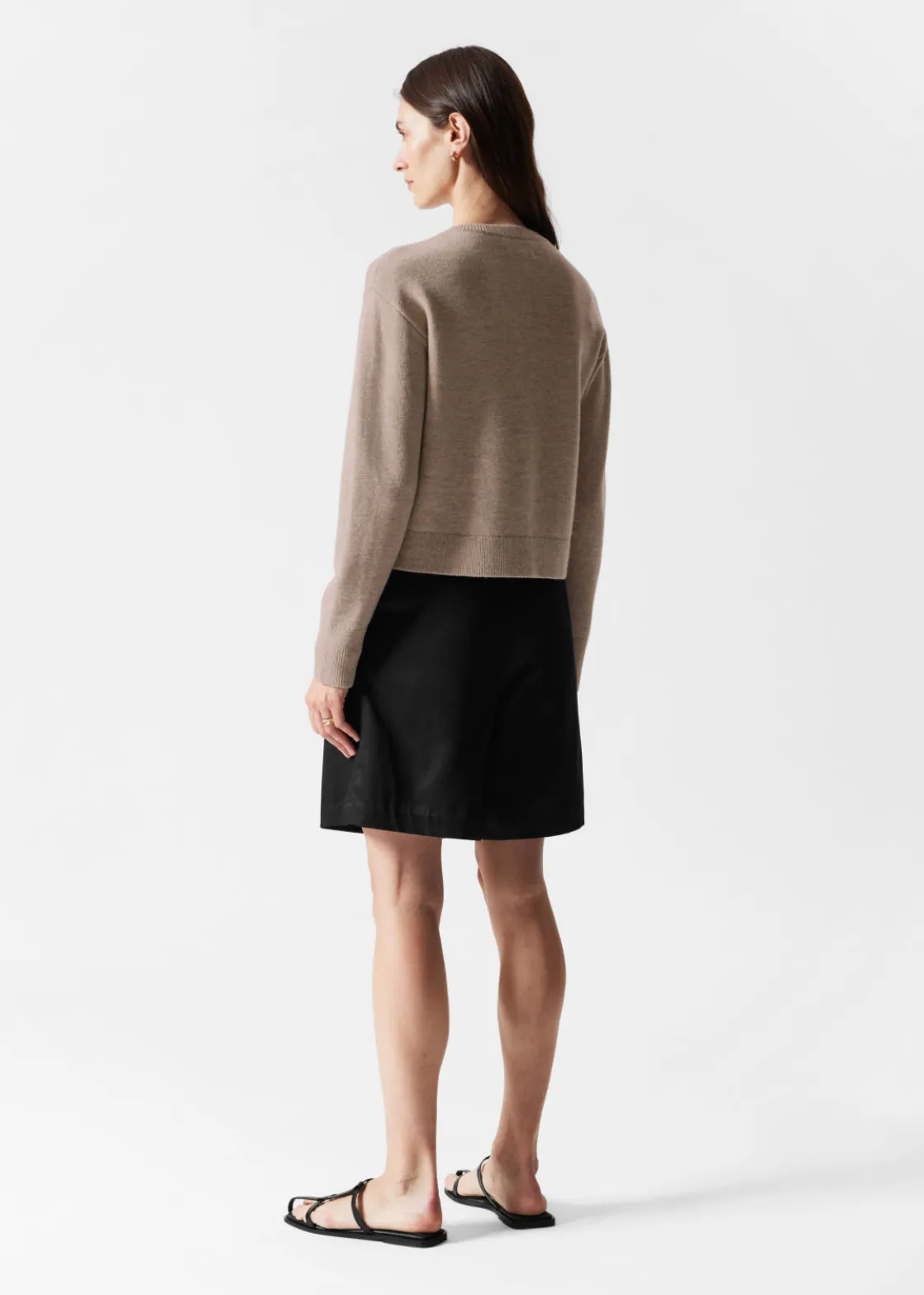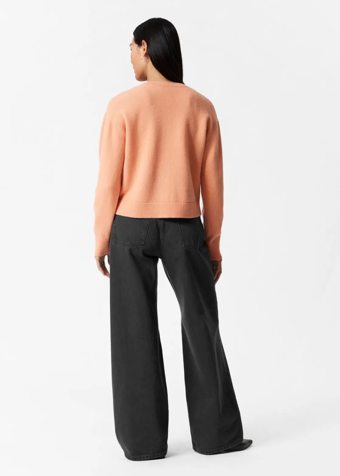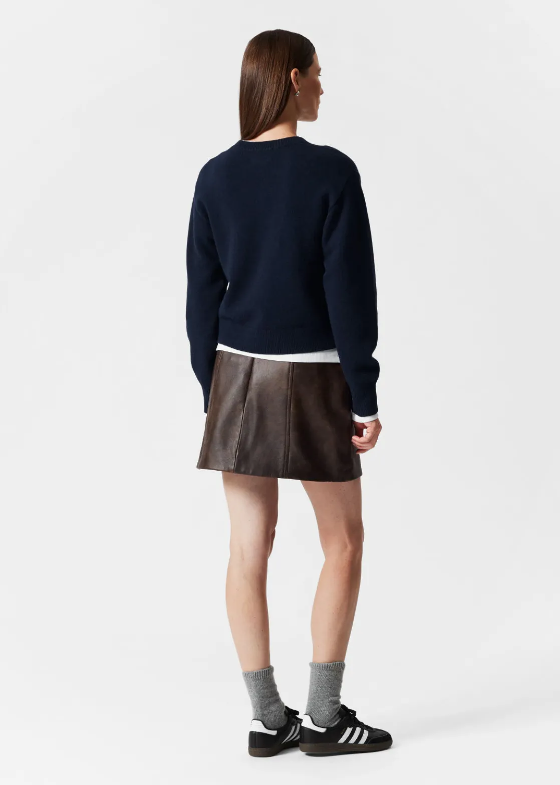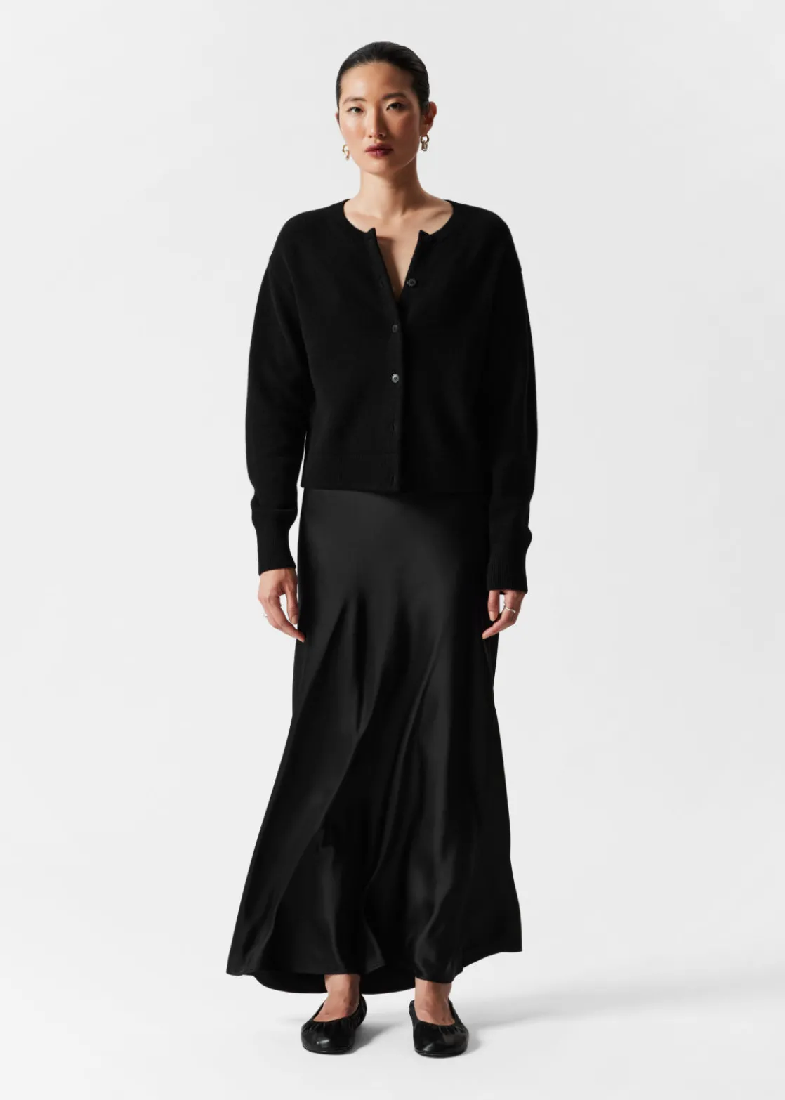 Boxy merino wool cardigan finished with a ribbed neckline, cuffs and hemline.