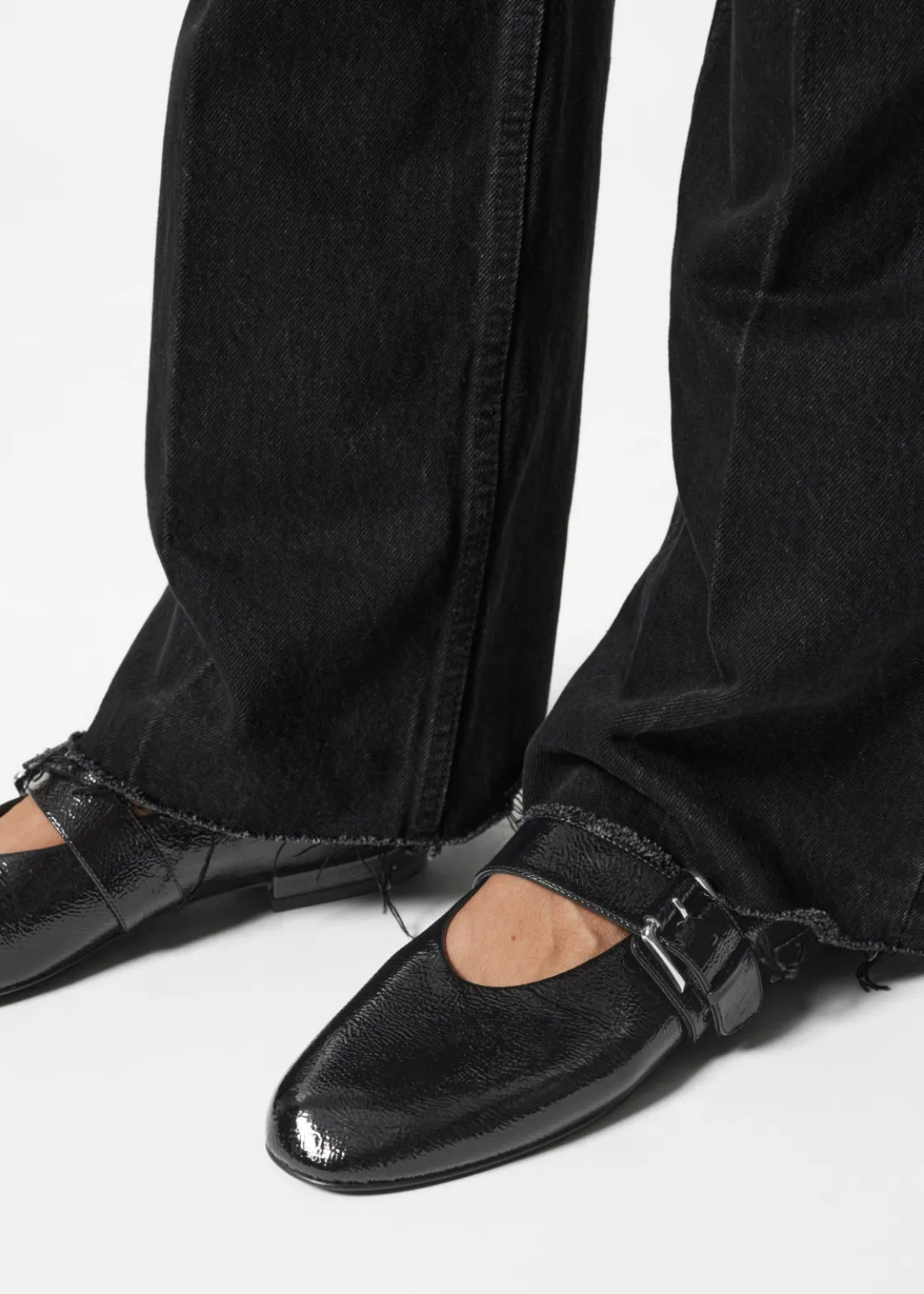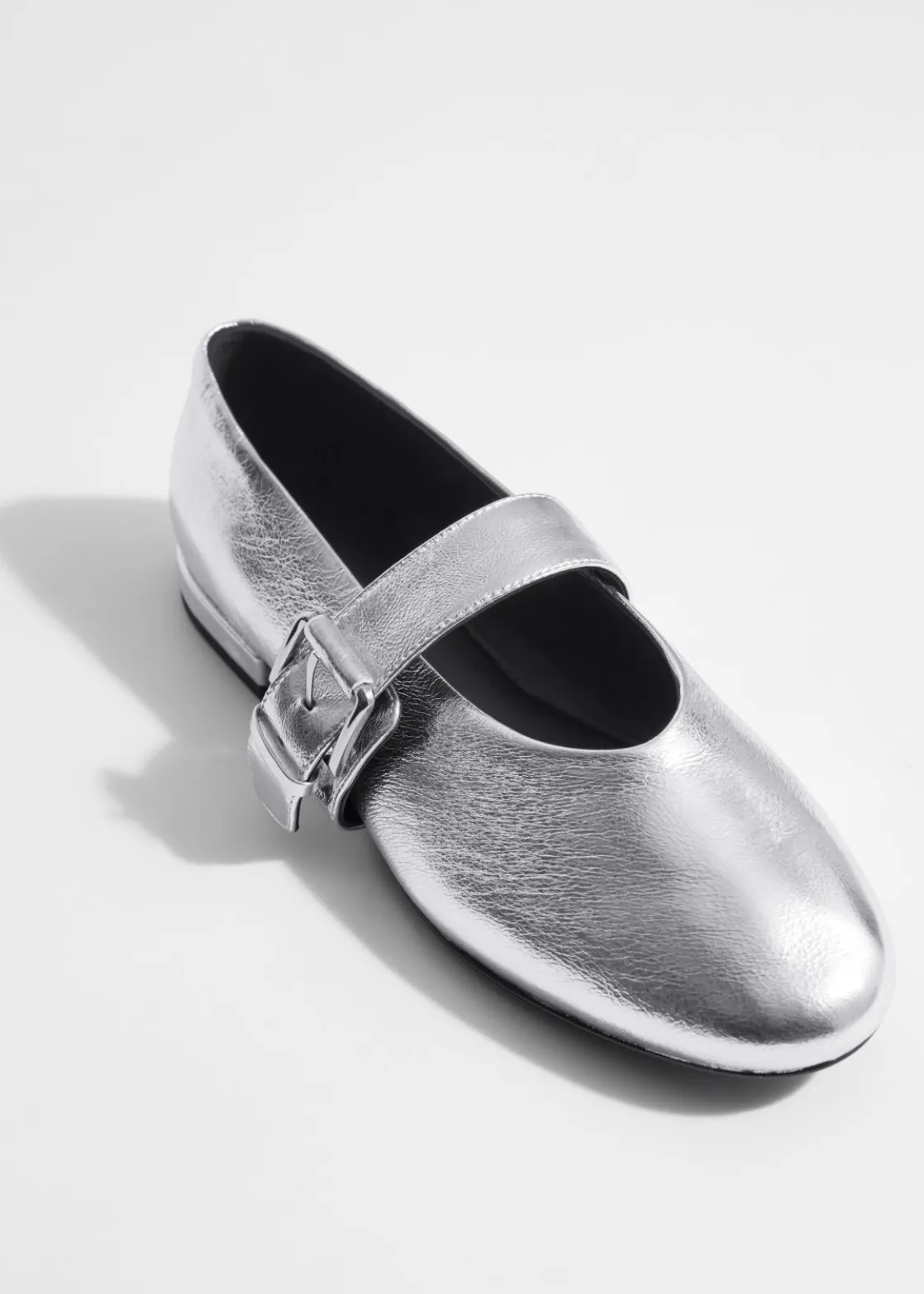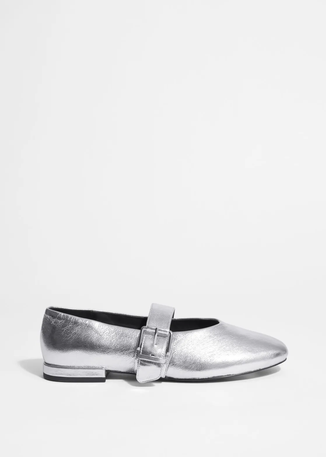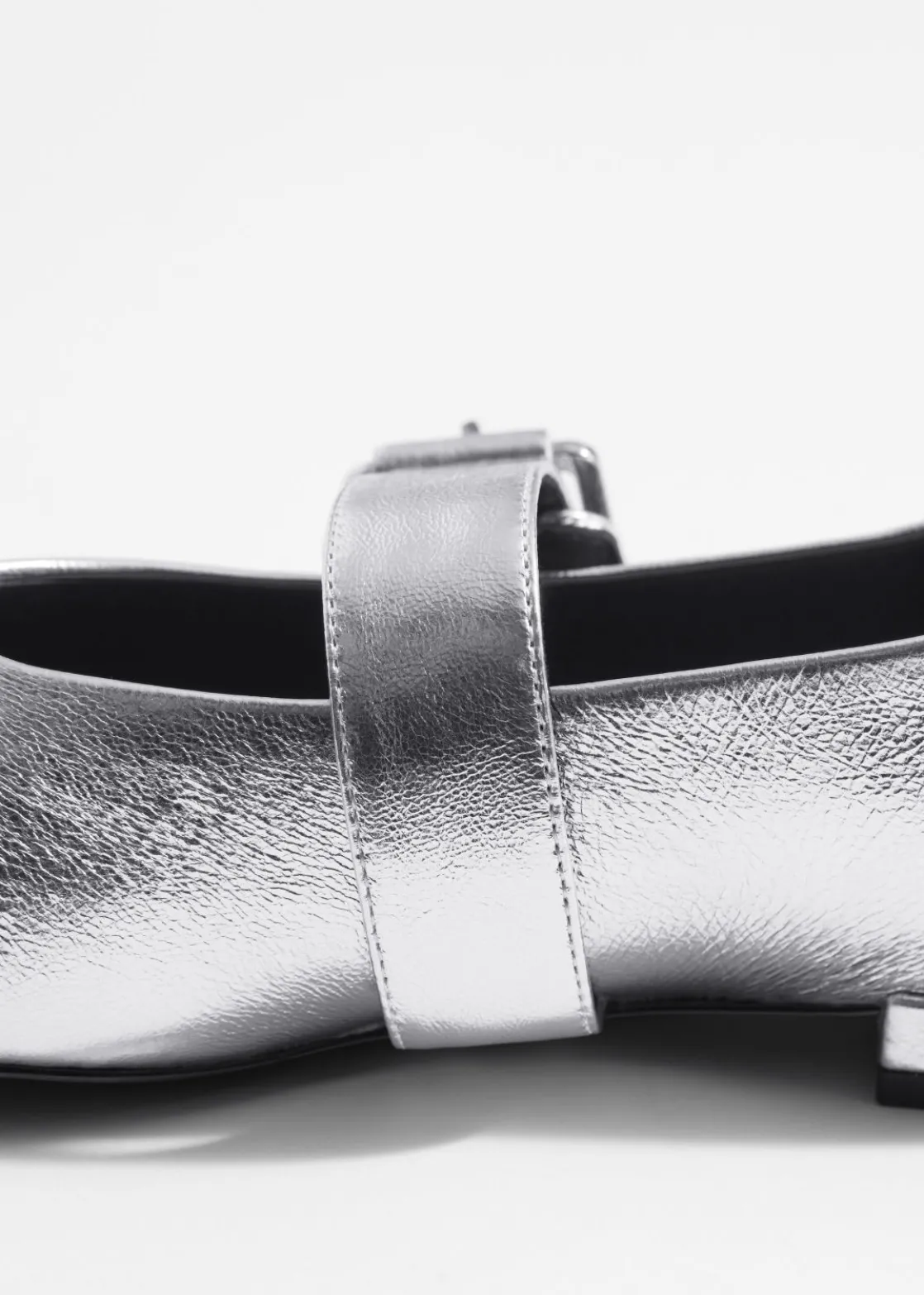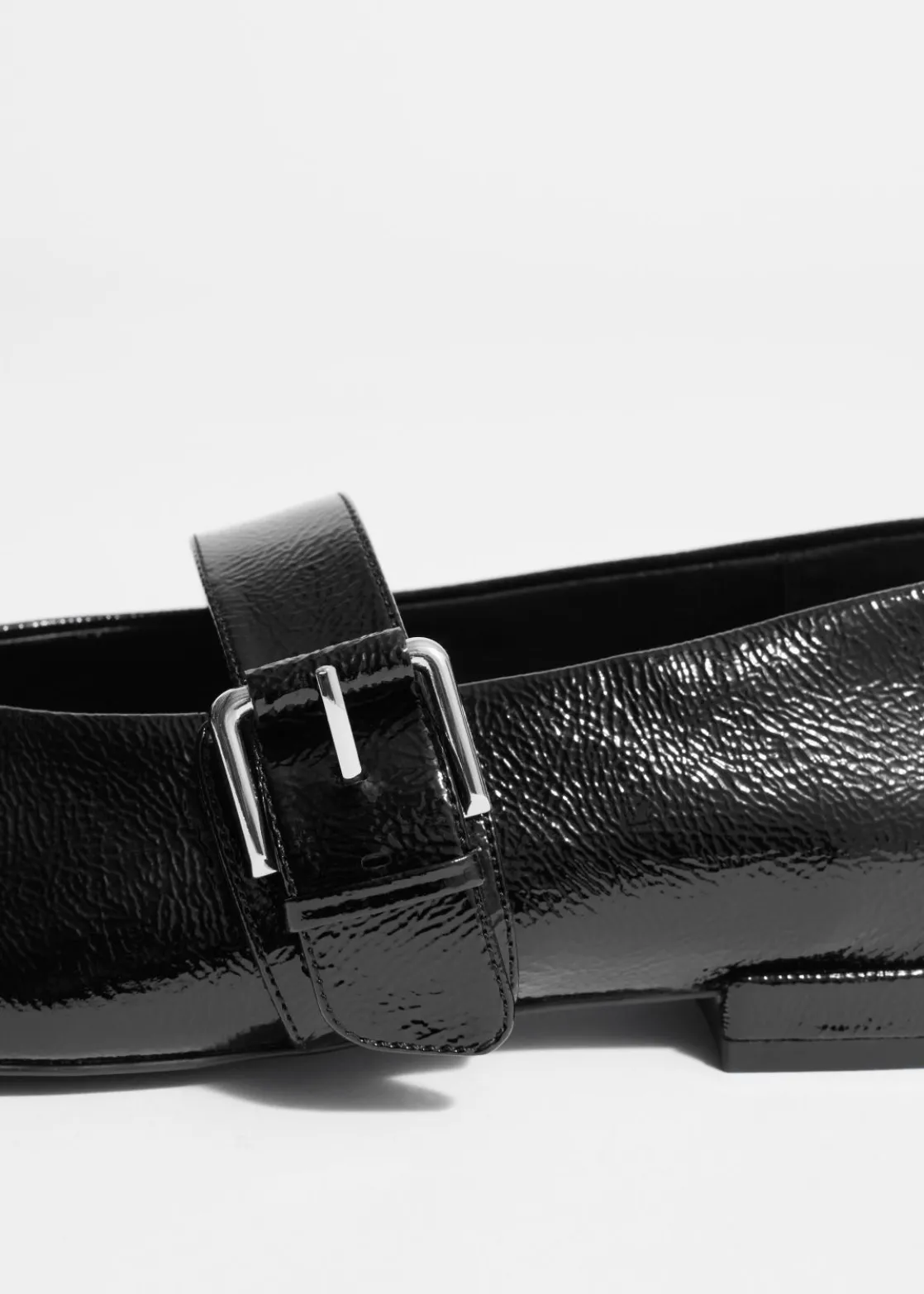 These timeless Mary-Jane flats have been crafted from supple leather, fitted with cushioned insoles and set on a slight heel. Wide adjustable buckle-fastening straps cross the modern almond toes.