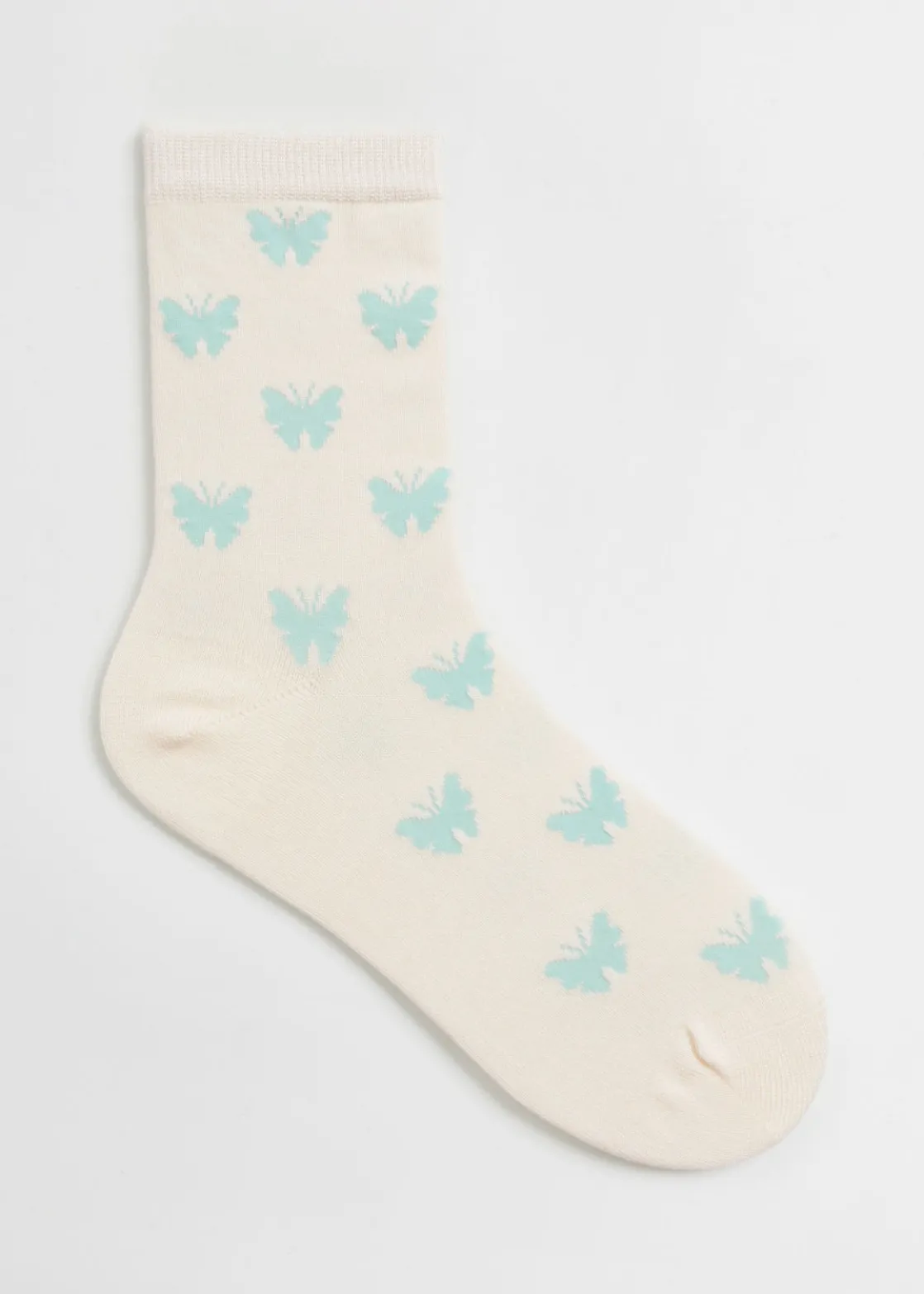 Socks with an allover butterfly motif.
