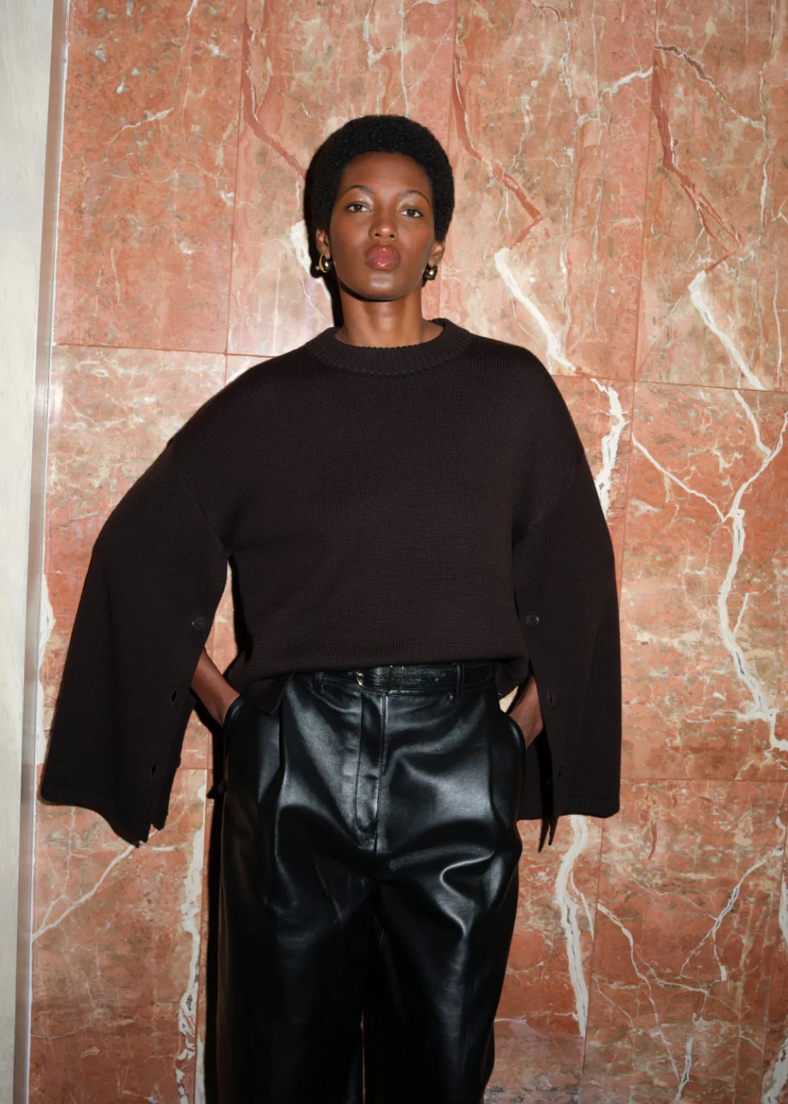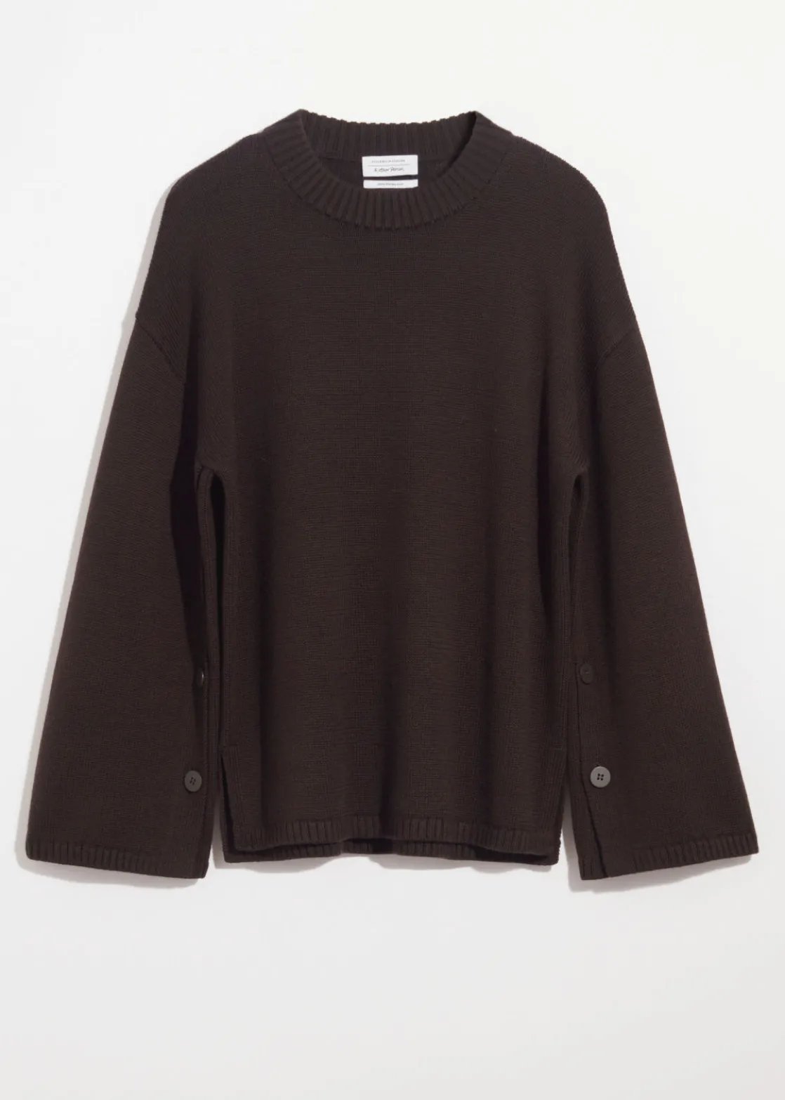 Long-sleeve sweater knitted from merino wool. Detailed with buttons at the inner sleeves.