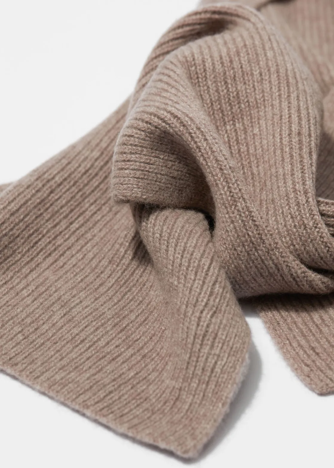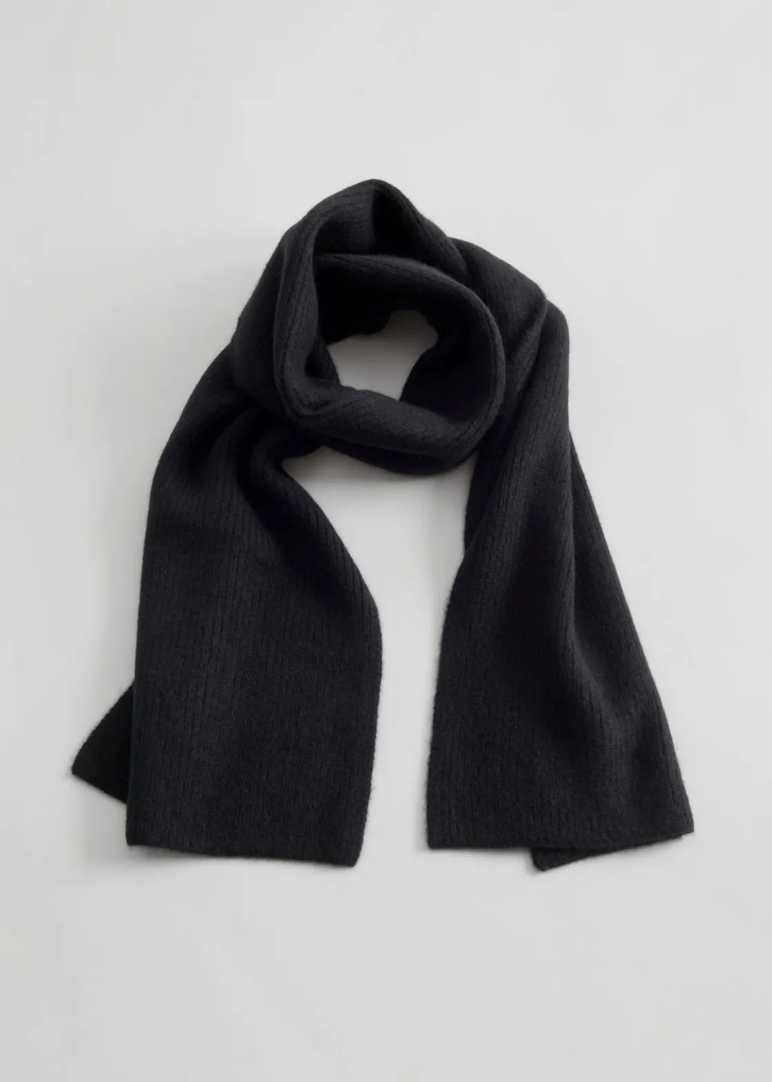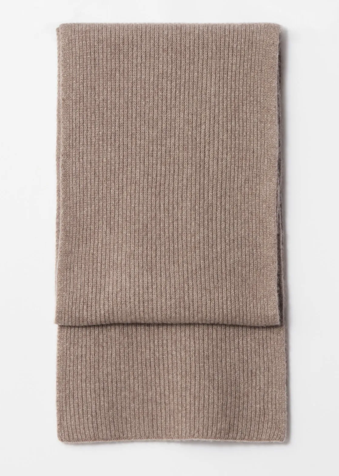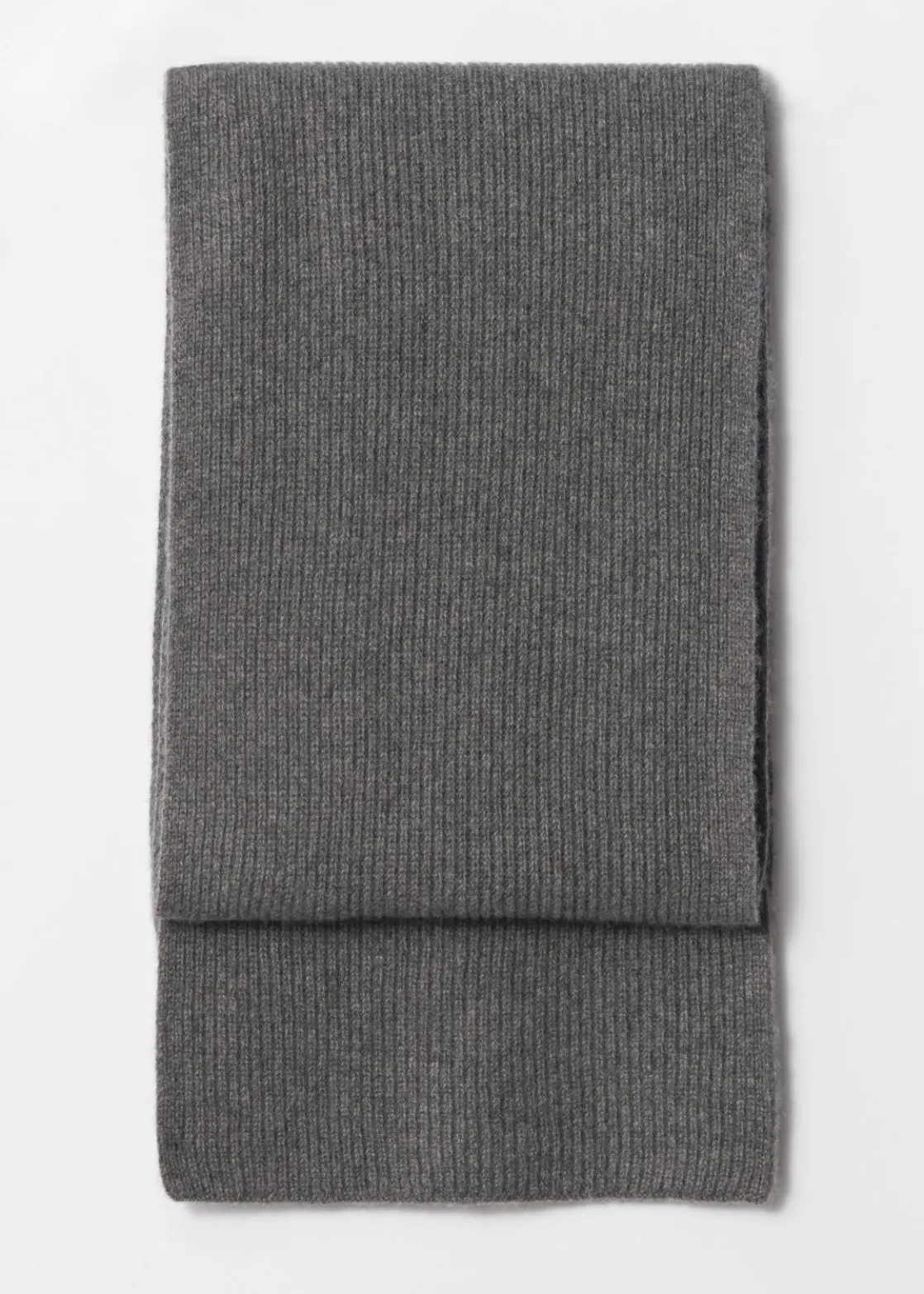 Soft cashmere knit scarf with a ribbed finish.