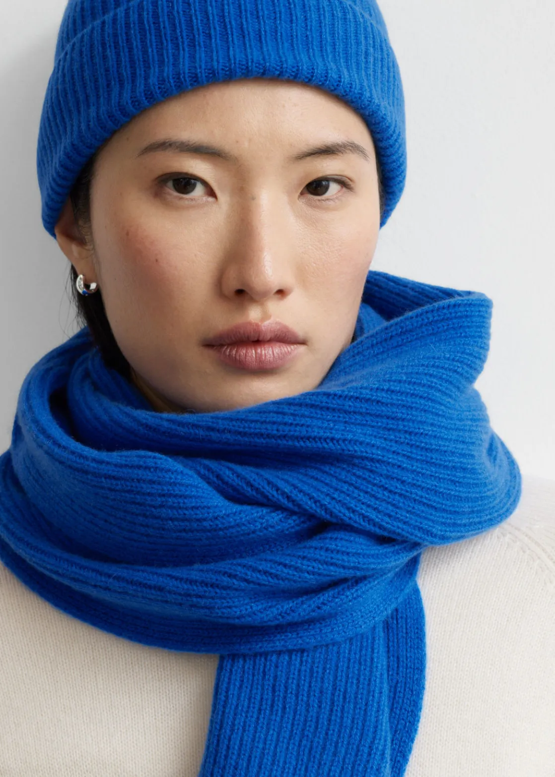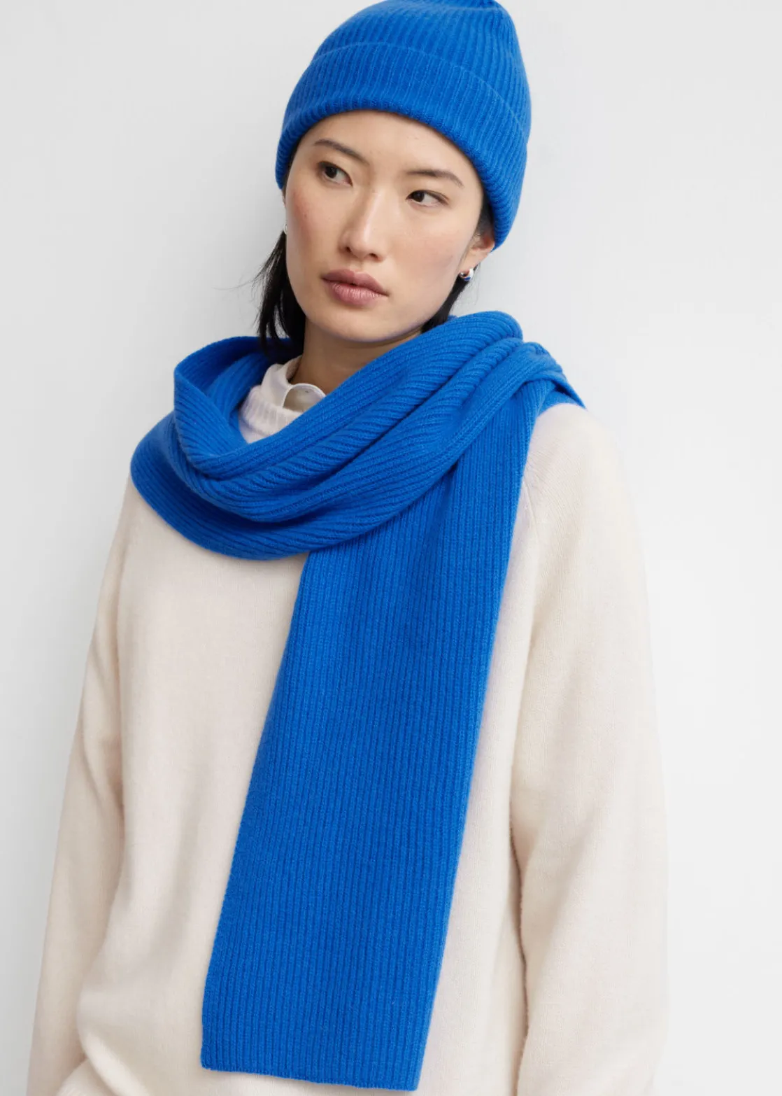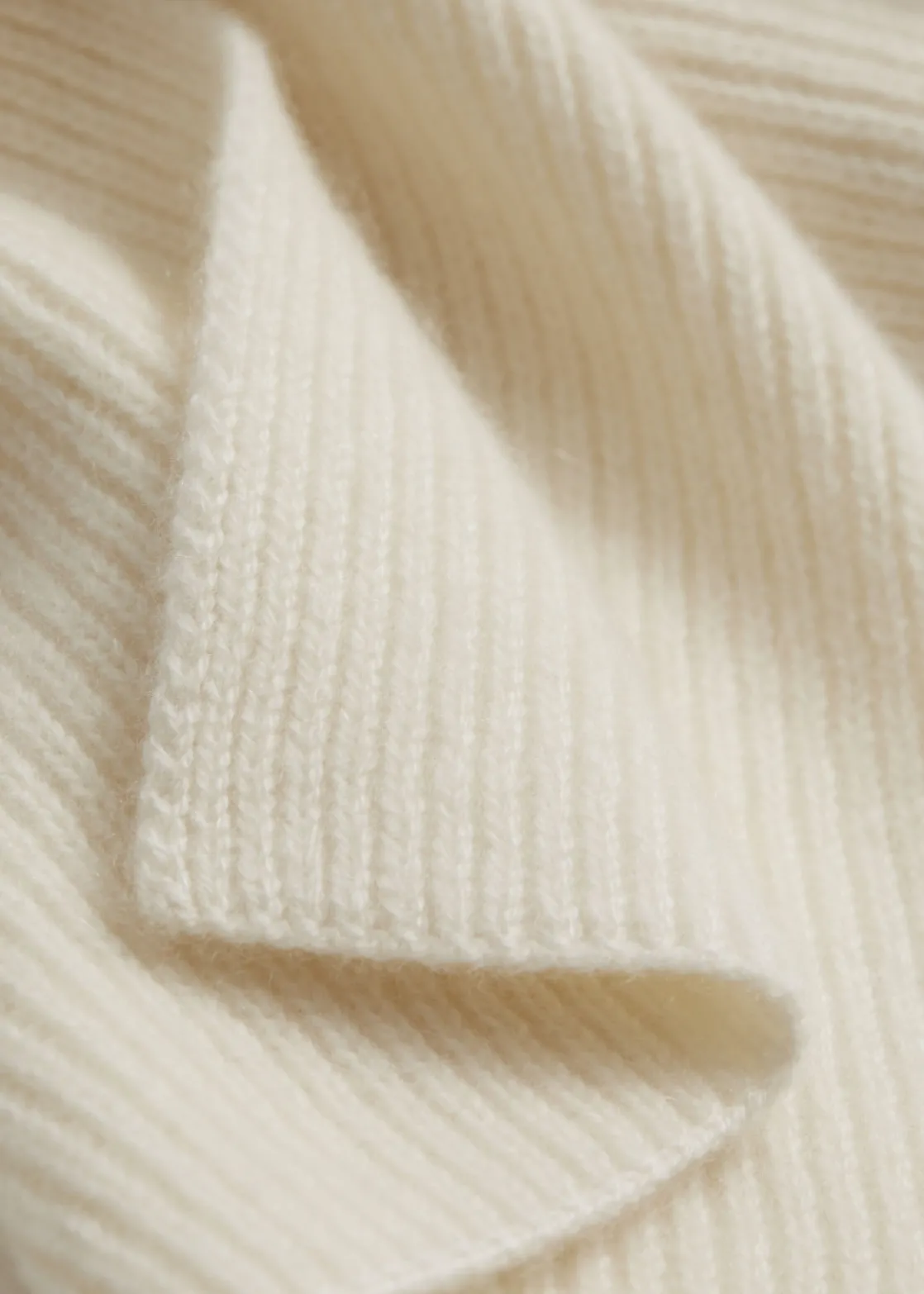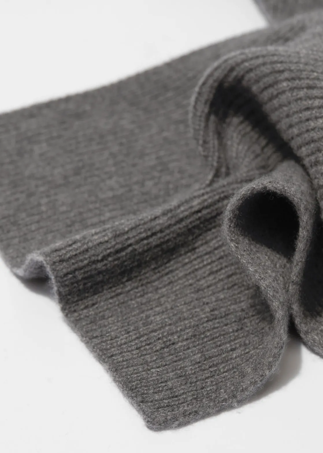 Soft cashmere knit scarf with a ribbed finish.