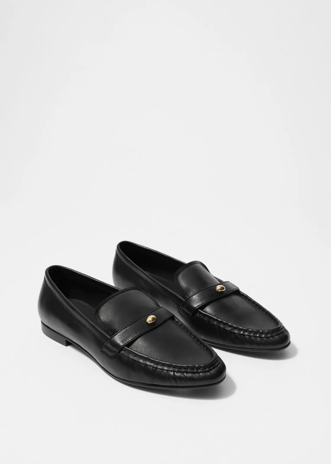 These loafers are crafted from impeccably smooth leather in Portugal. This pair has a gold-tone embellishment, a slight heel for lift and sleek almond toe. Loafers will work with just about anything in your wardrobe.