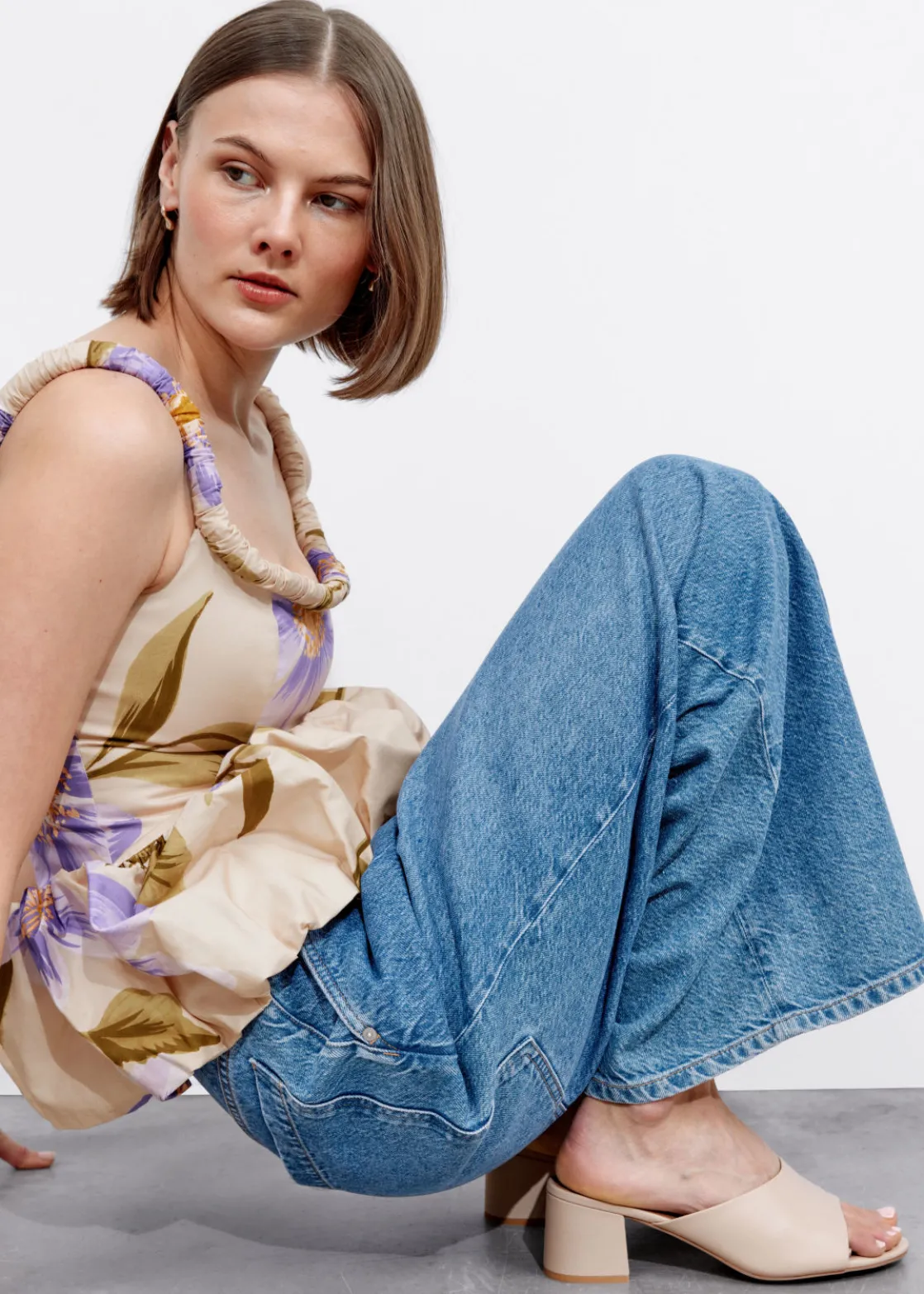 Mules crafted from nappa leather featuring a slight ’90s feel with minimalist lines, rounded toes and stacked block heels.