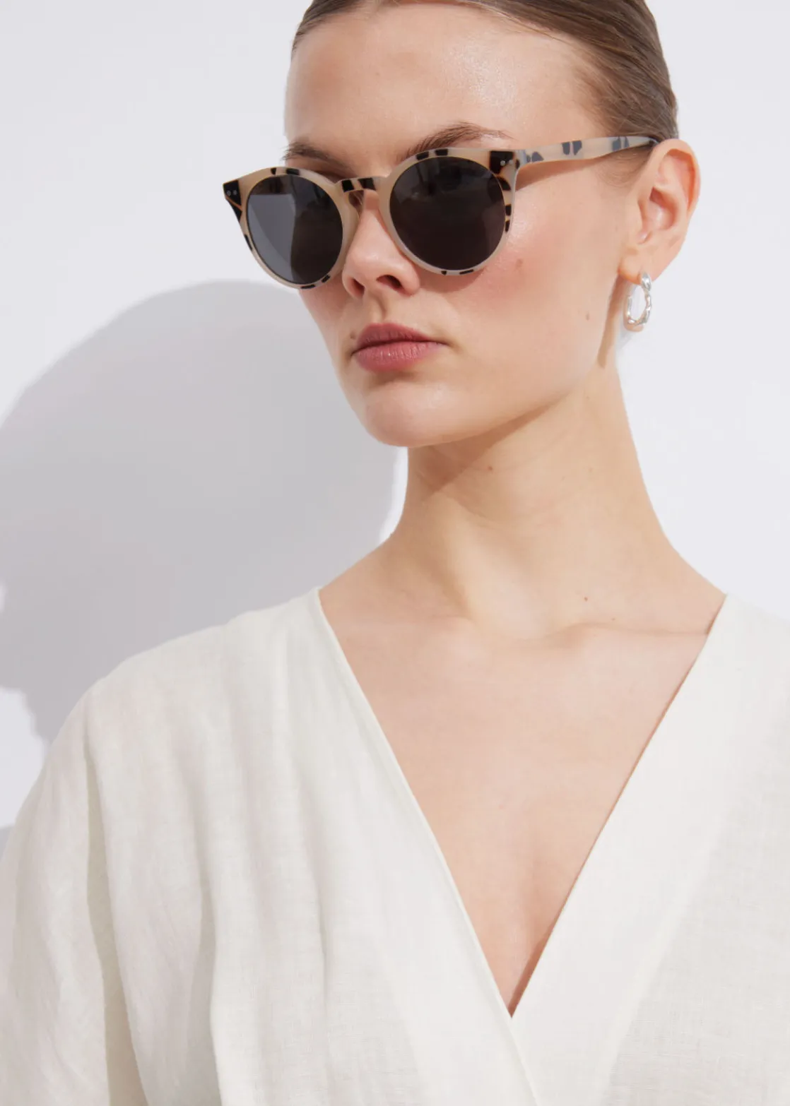 These sleek round silhouette sunglasses draws inspiration from vintage classics.