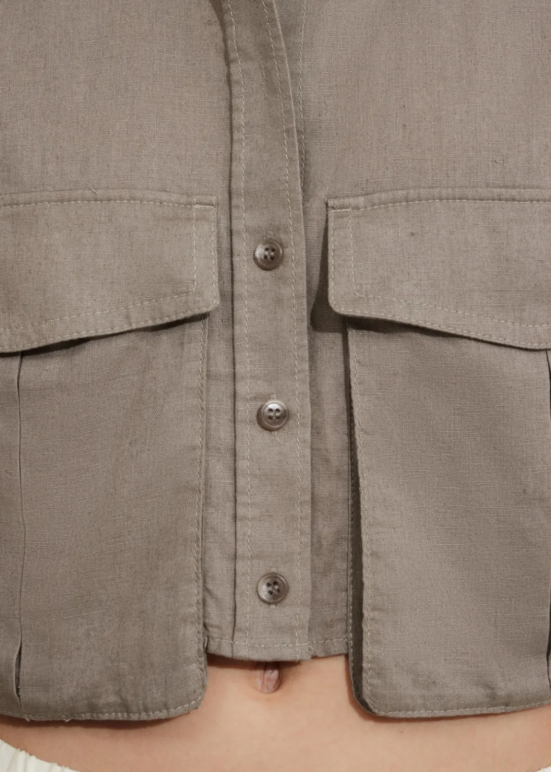 Cropped sleeveless top made from a linen blend. Detailed with patch pockets at the chest.