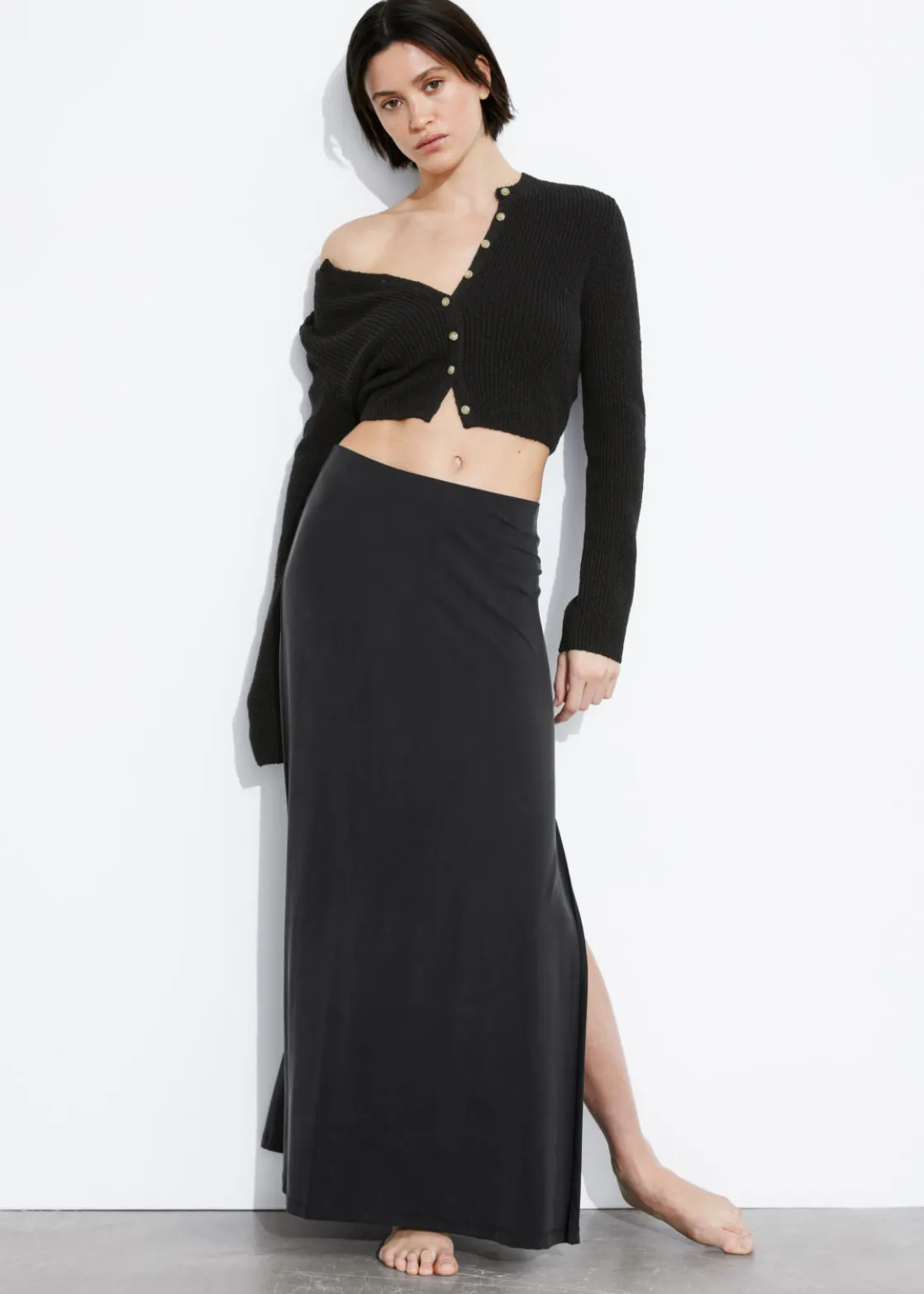 Cropped Rib-Knit Cardigan
