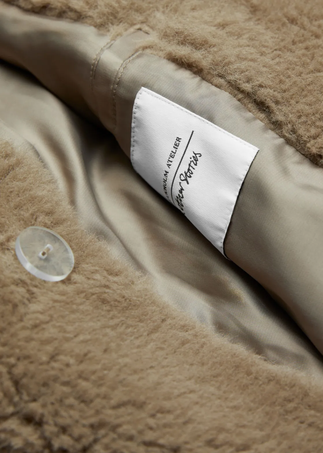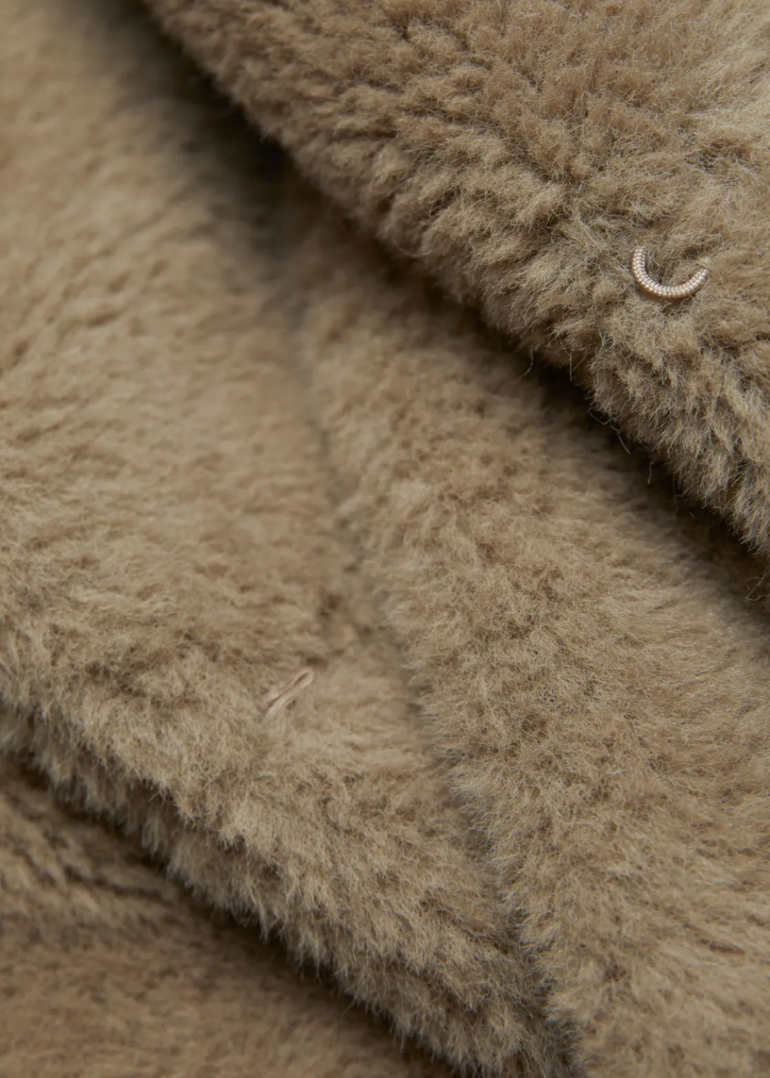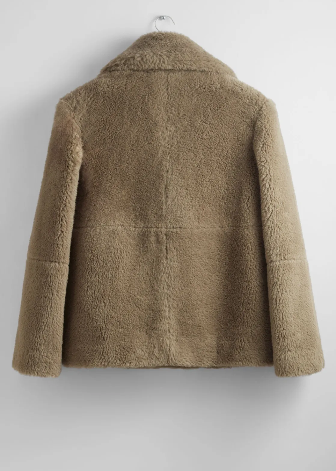 Faux fur jacket featuring a clean finish secured with duo concealed hook closures.