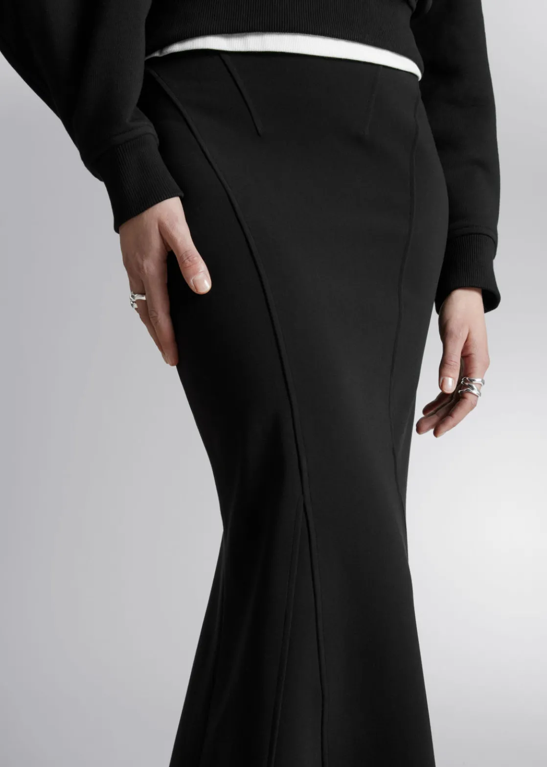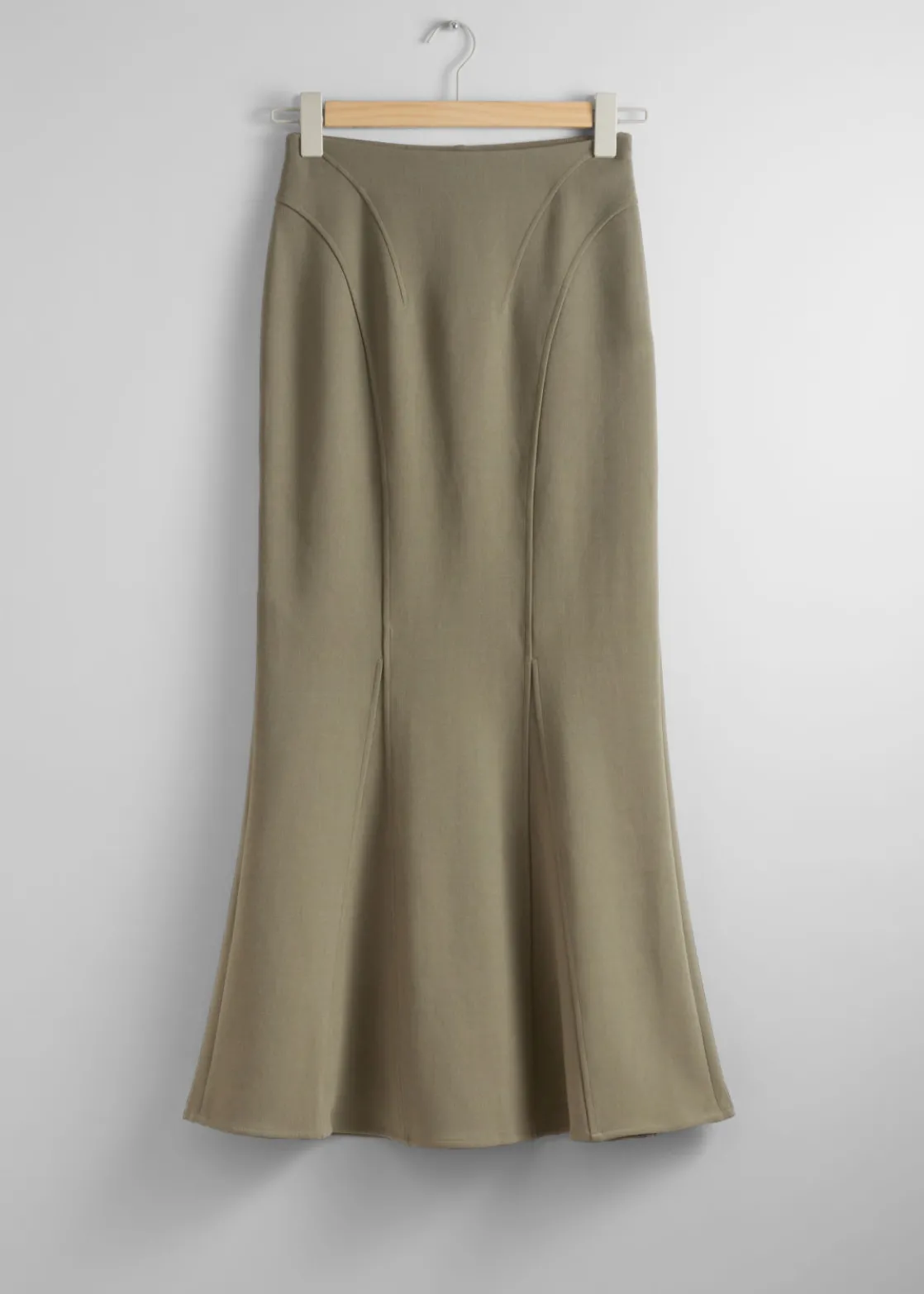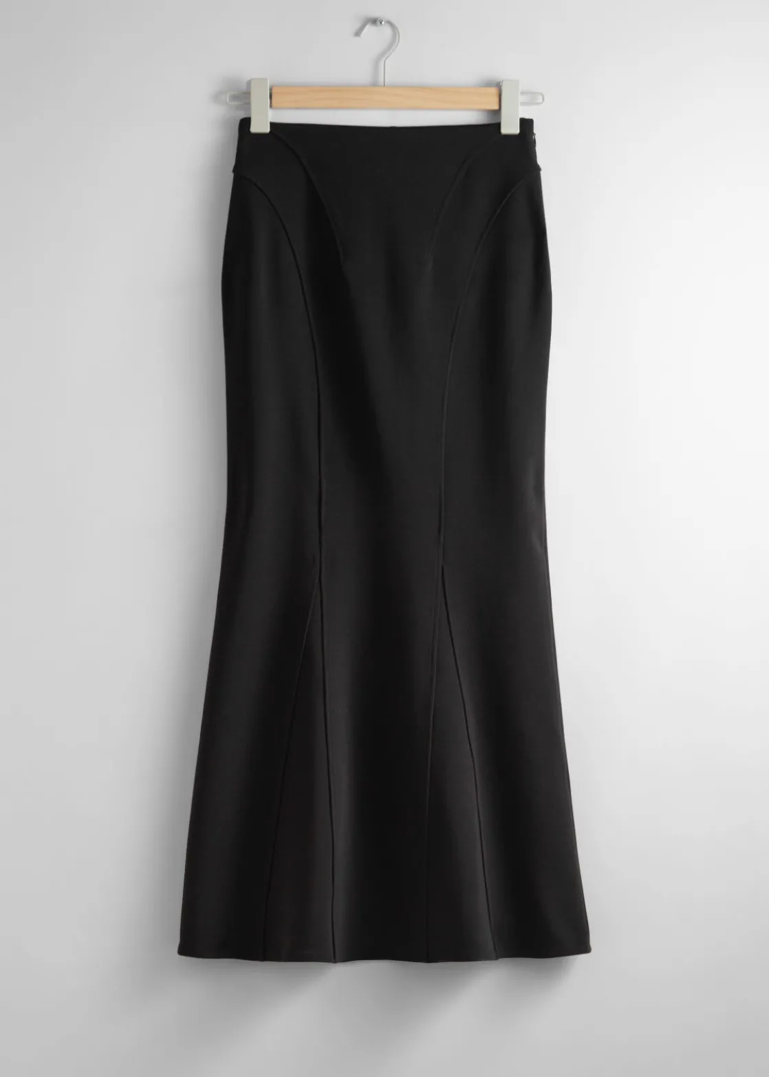 Maxi skirt designed with a figure-hugging fit before flaring out at the knee to a fluted hem.