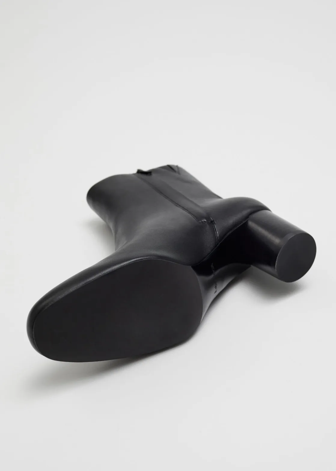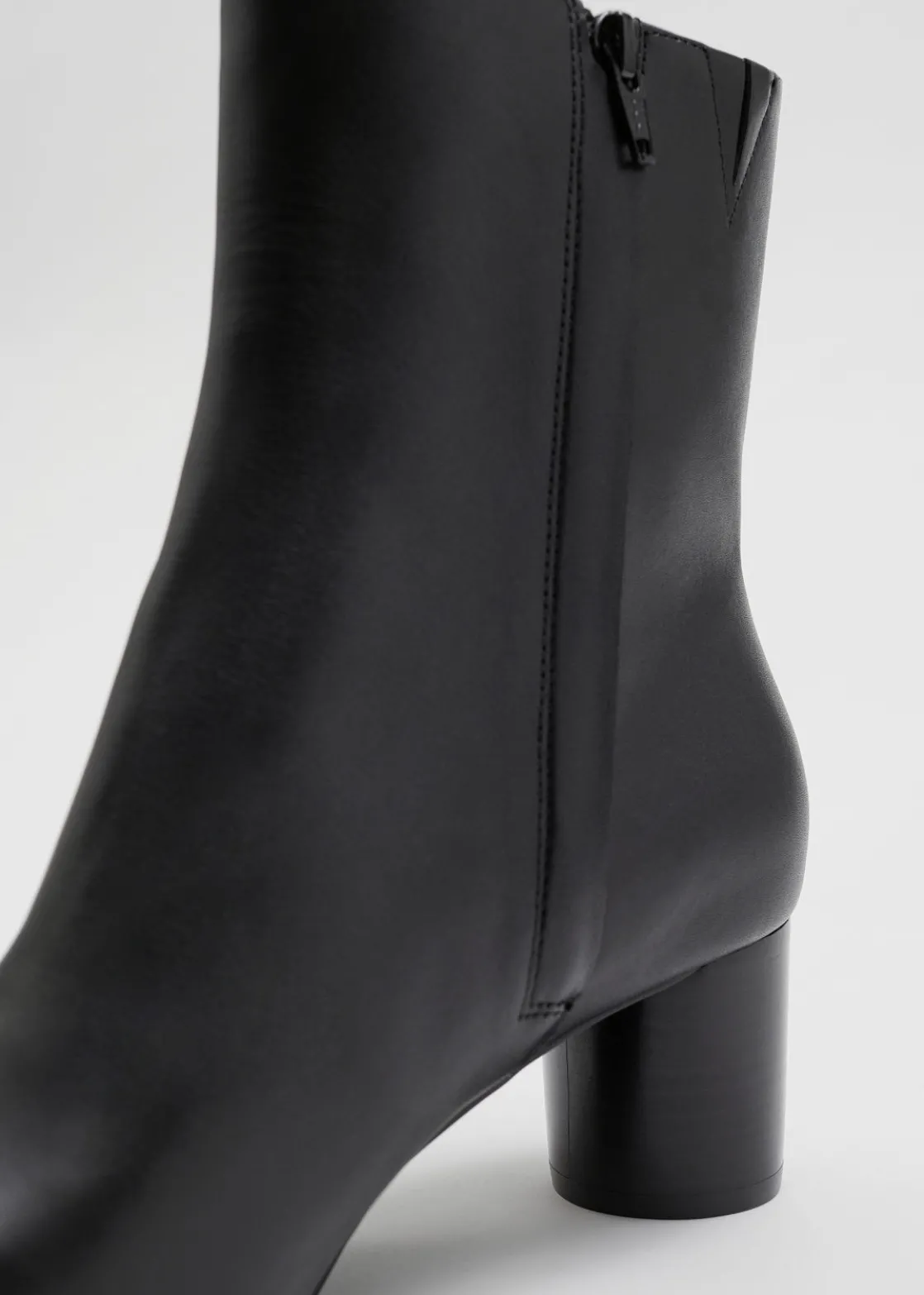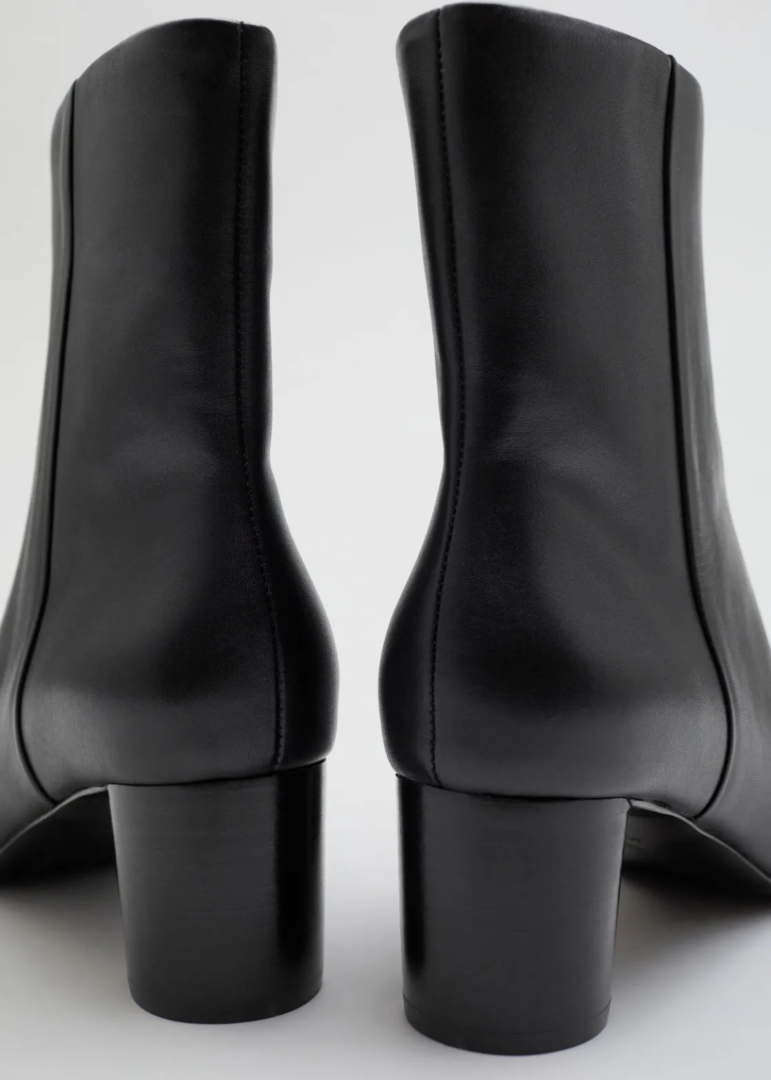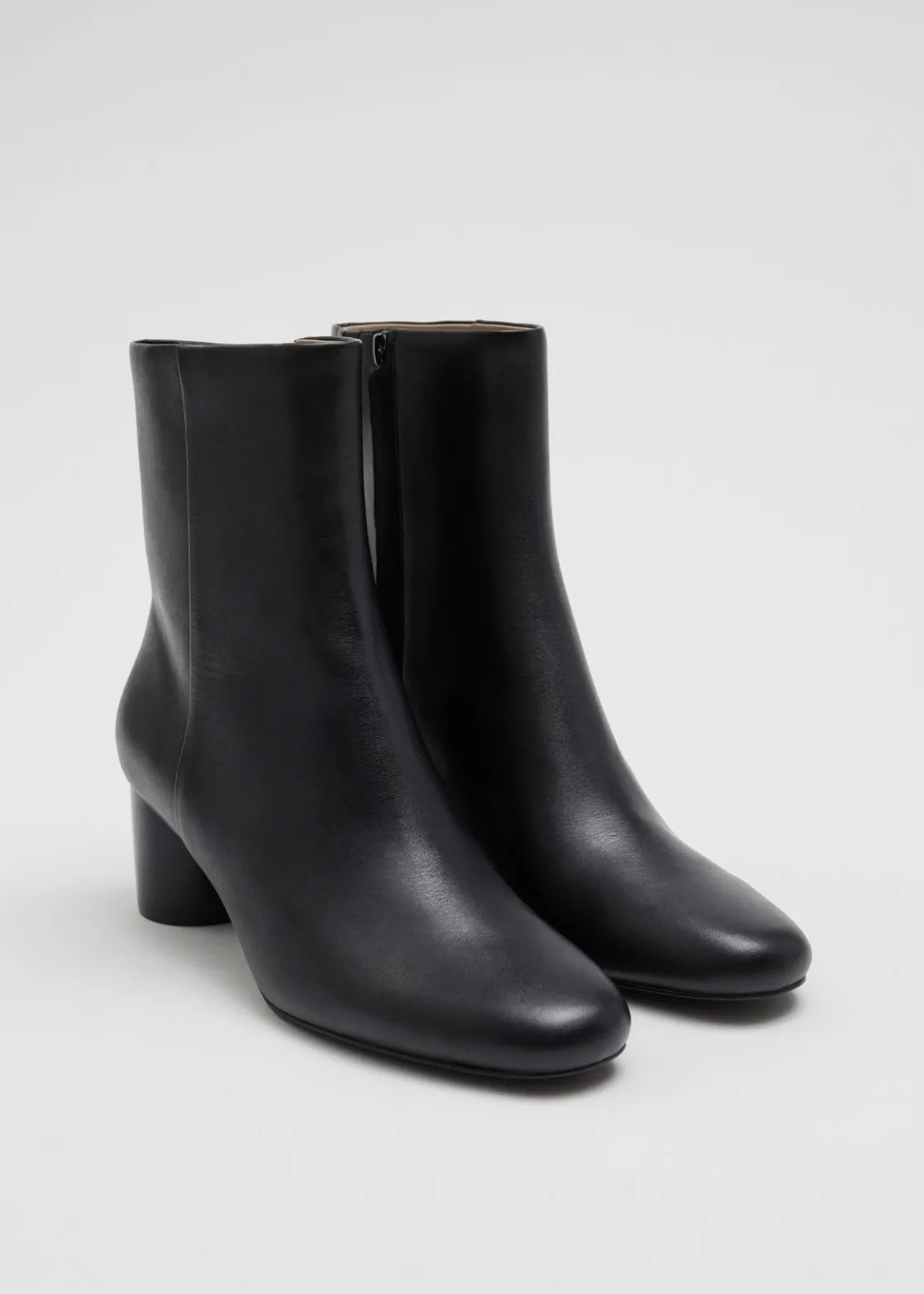 Sleek round-toe ankle boots made from smooth leather, finished with rounded block heels and concealed side zippers.