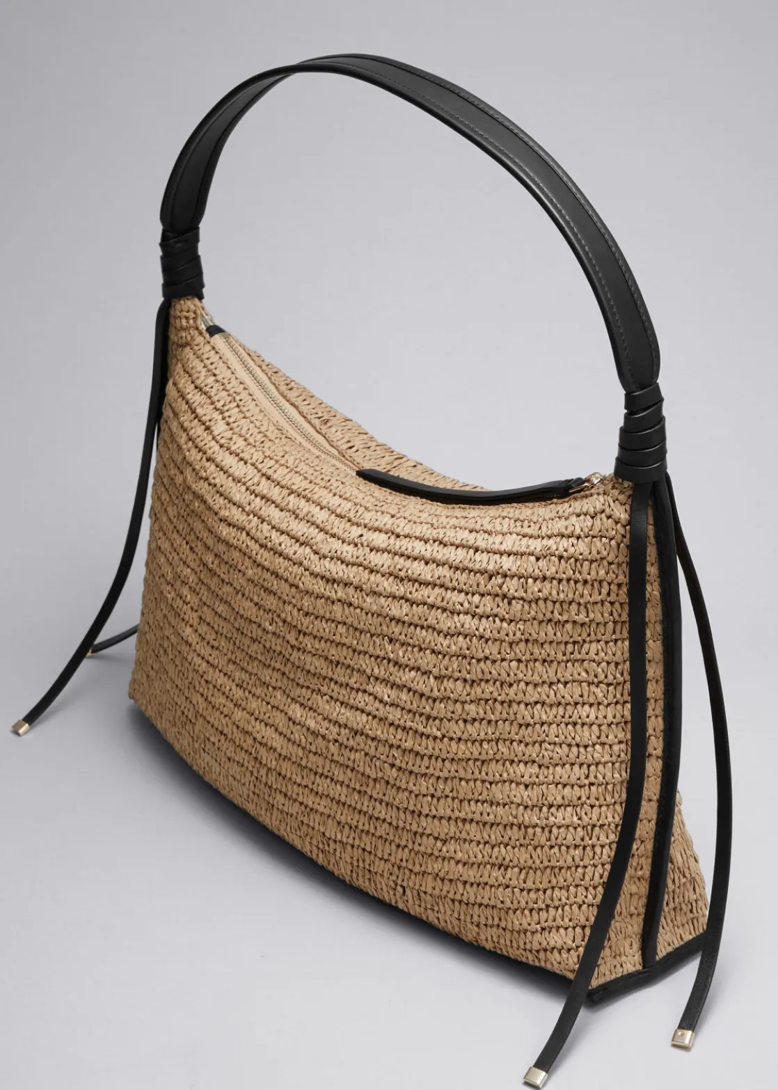 This shoulder bag is woven from paper fibers, trimmed with soft leather and whipstitched along the handle strap. Use this bag to store small items like your phone, wallet and sunglasses. The interior is lined with cotton and holds an internal slip pocket for smaller essentials.