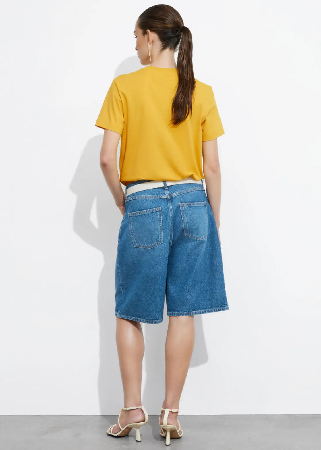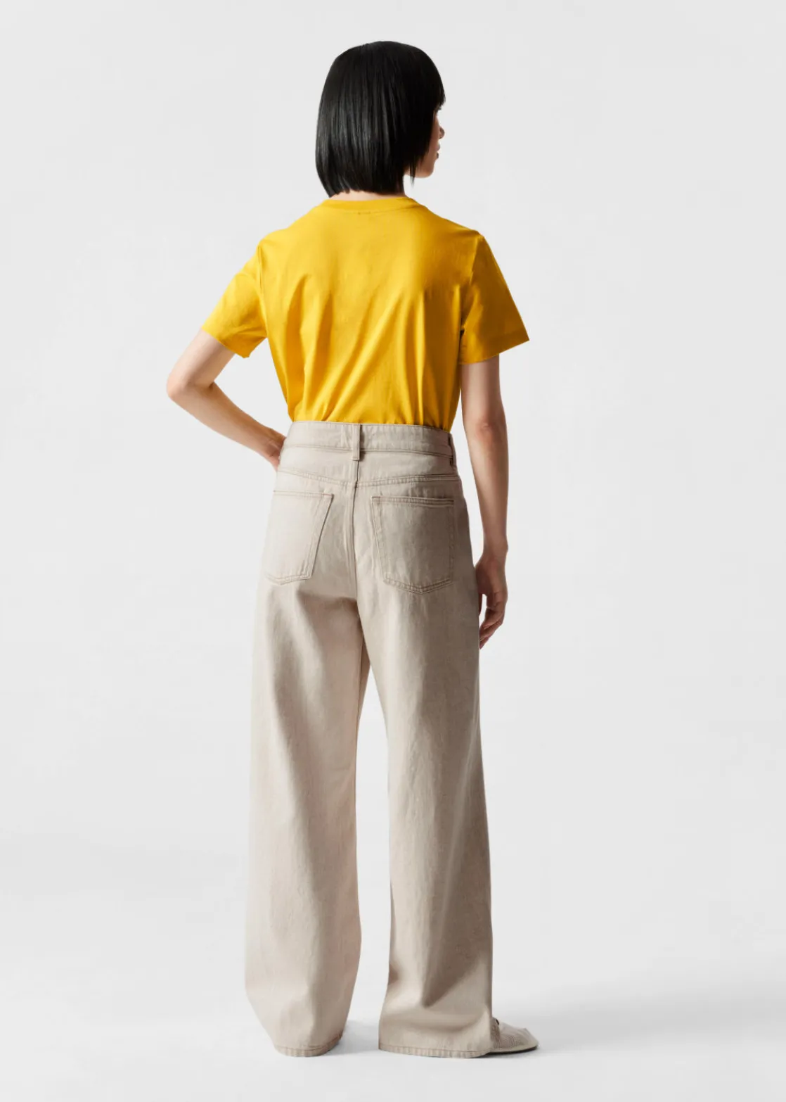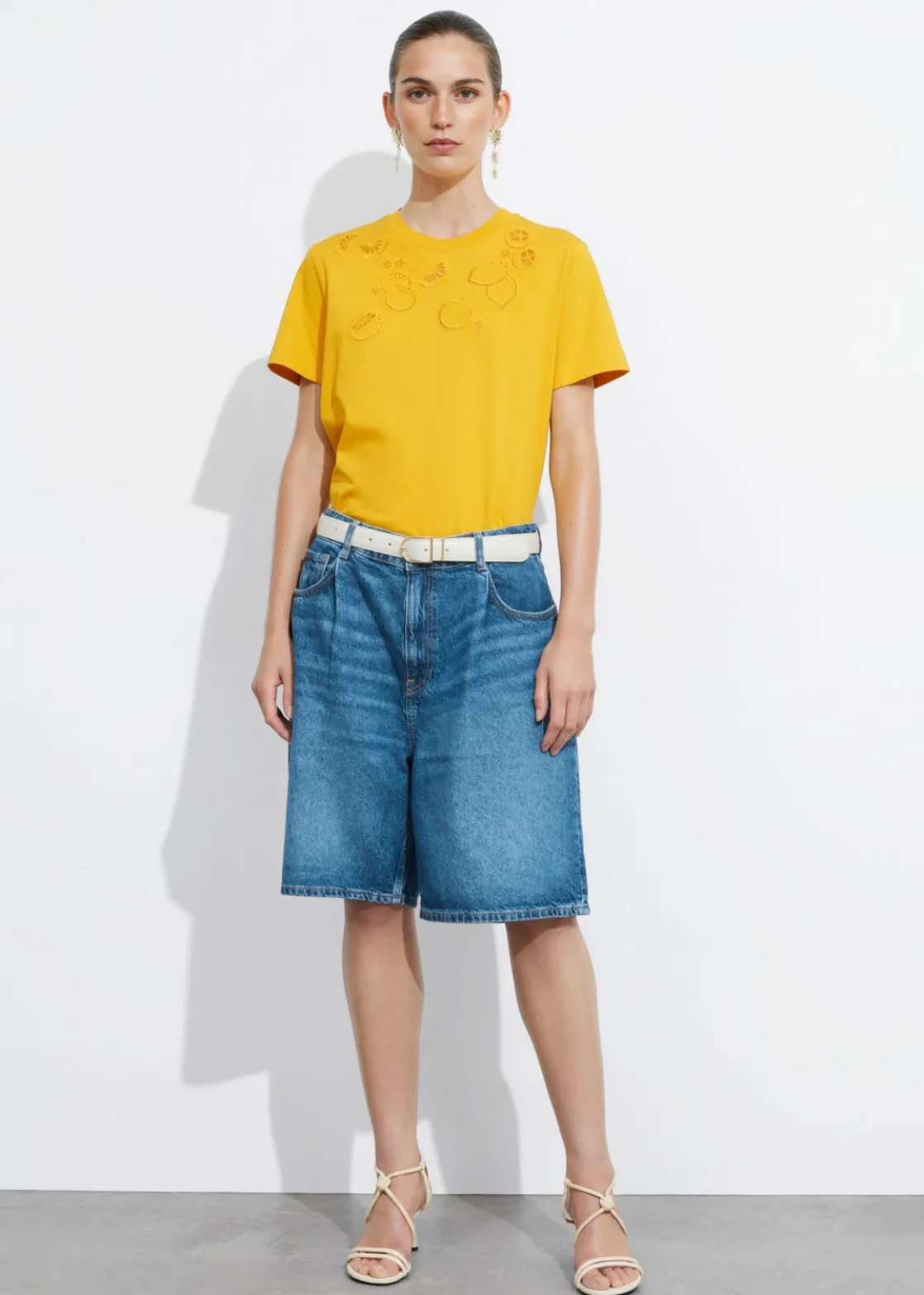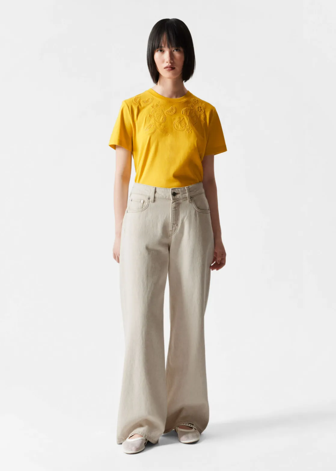 Crewneck t-shirt designed with lemon-inspired embroidery at the chest.
