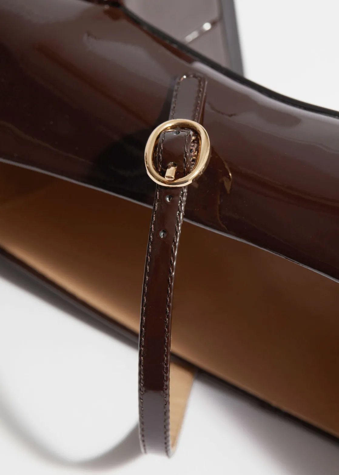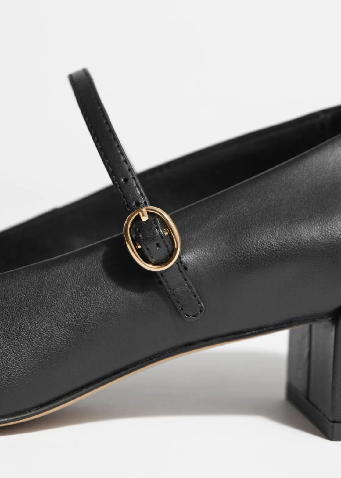 These Mary-Jane pumps are crafted from leather and set on supportive block heels for comfort. They’re signed off with delicate gold-tone buckles for a customizable fit and finished with rounded square toes.