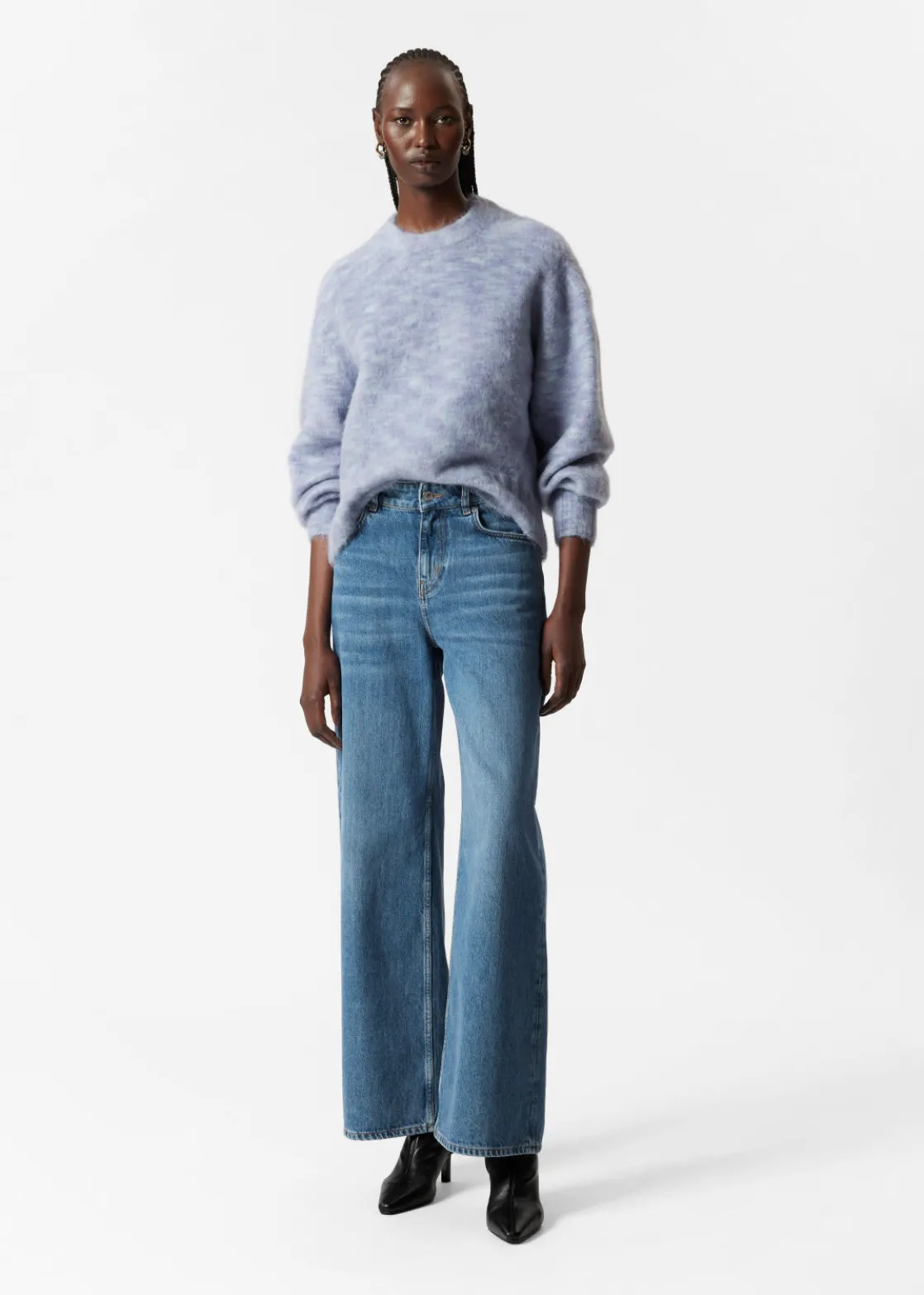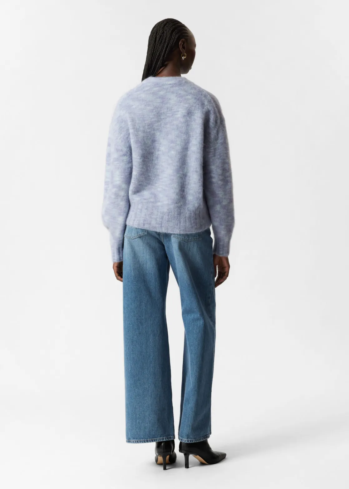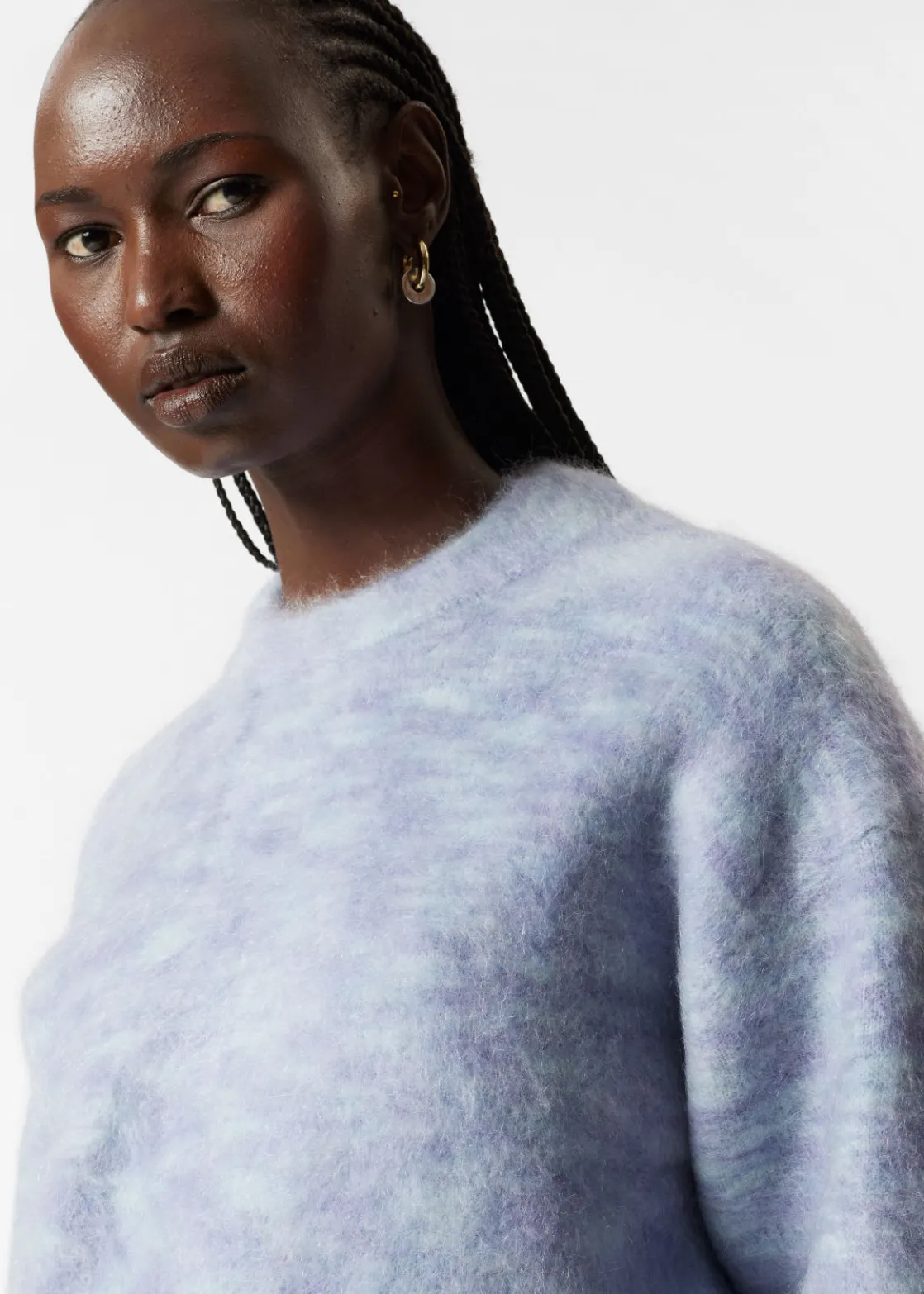 Oversized sweater with a round neck, knitted from wool and mohair.