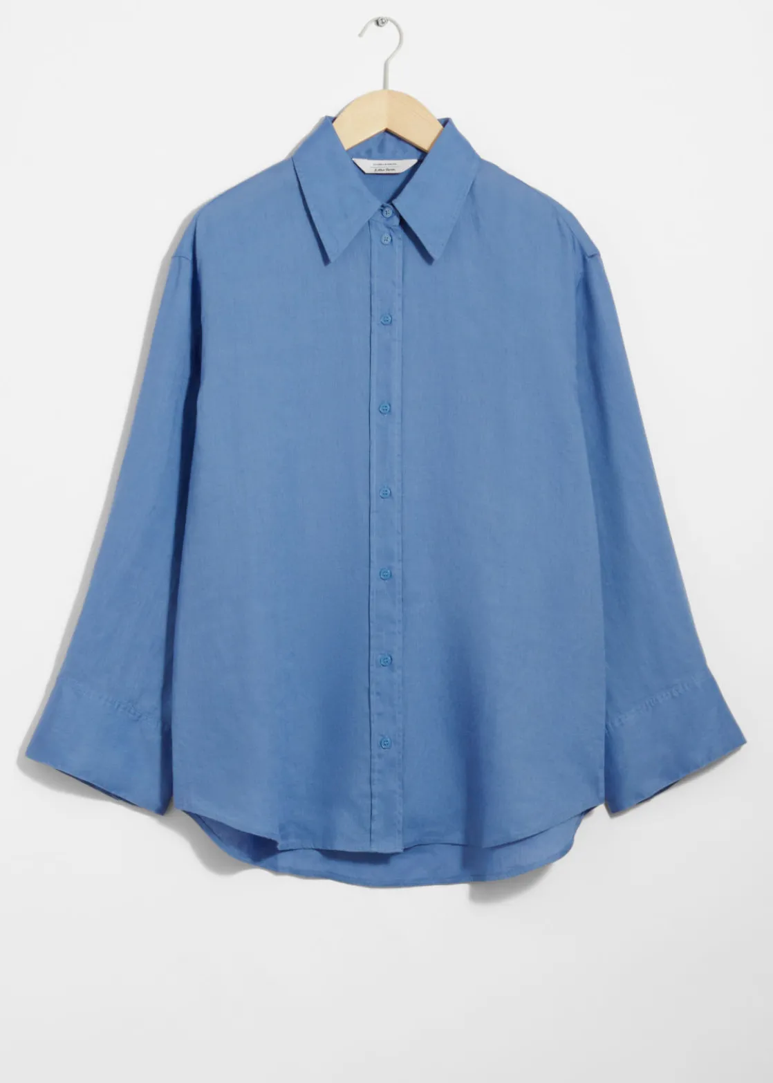 Linen shirt cut to an oversized silhouette. Traced with seven button closures.