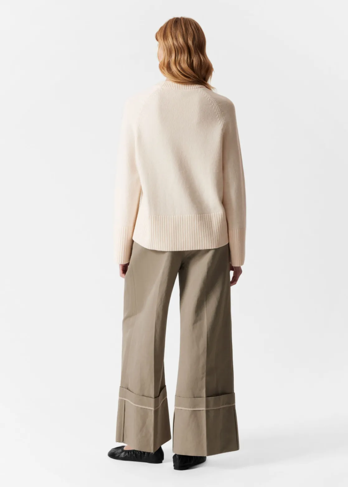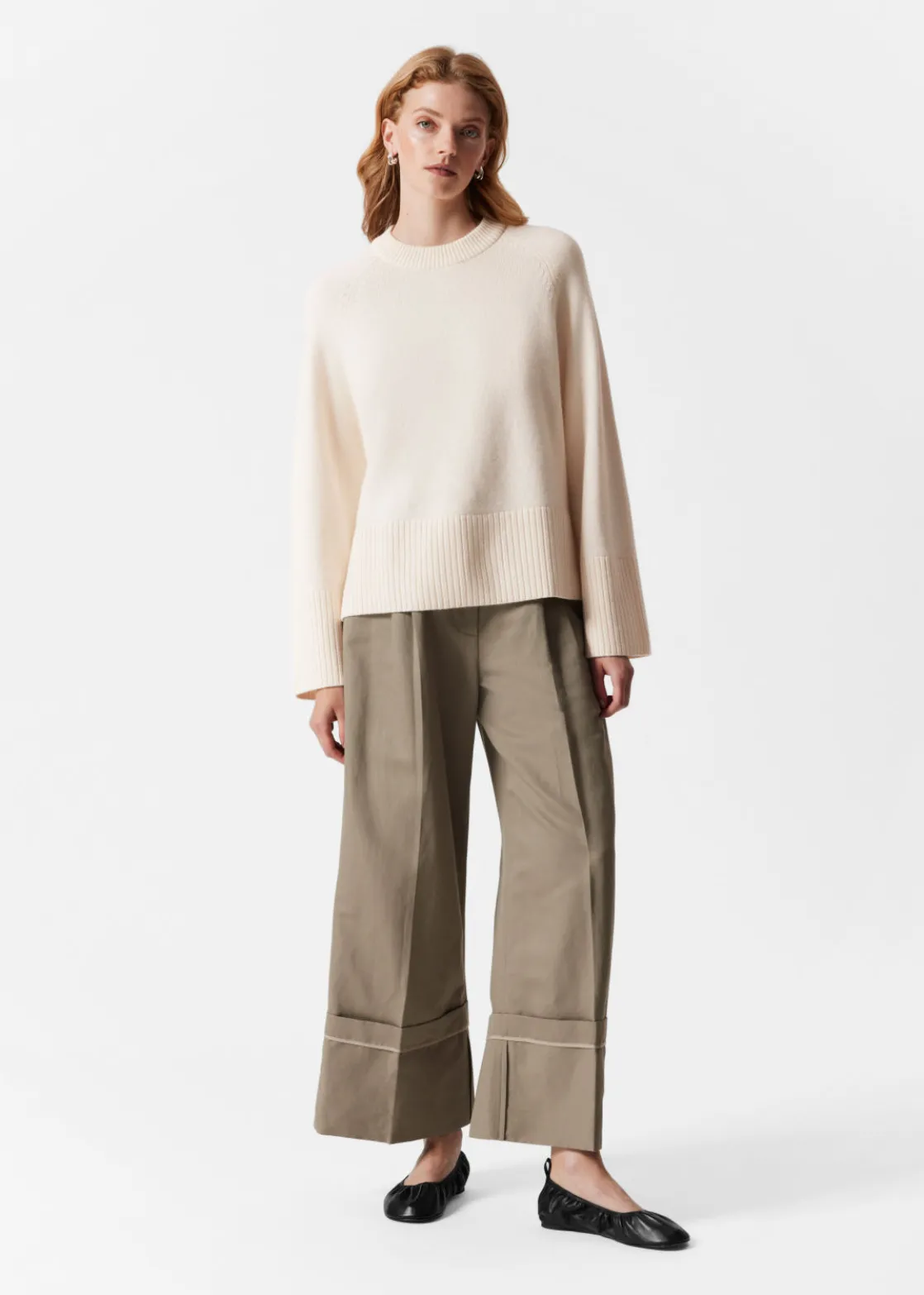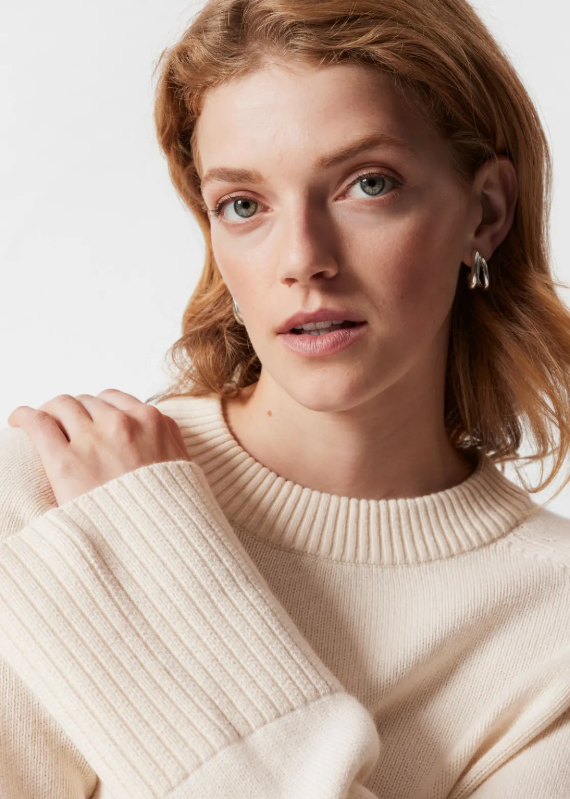 Oversized wool-blend sweater with raglan sleeves and a crewneck neckline. Ribbed trims.