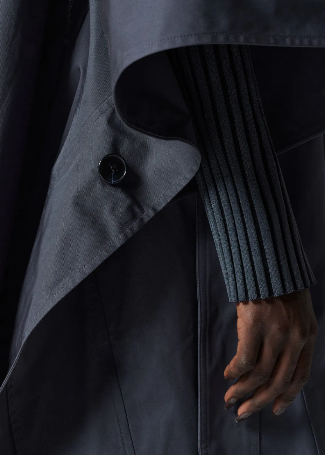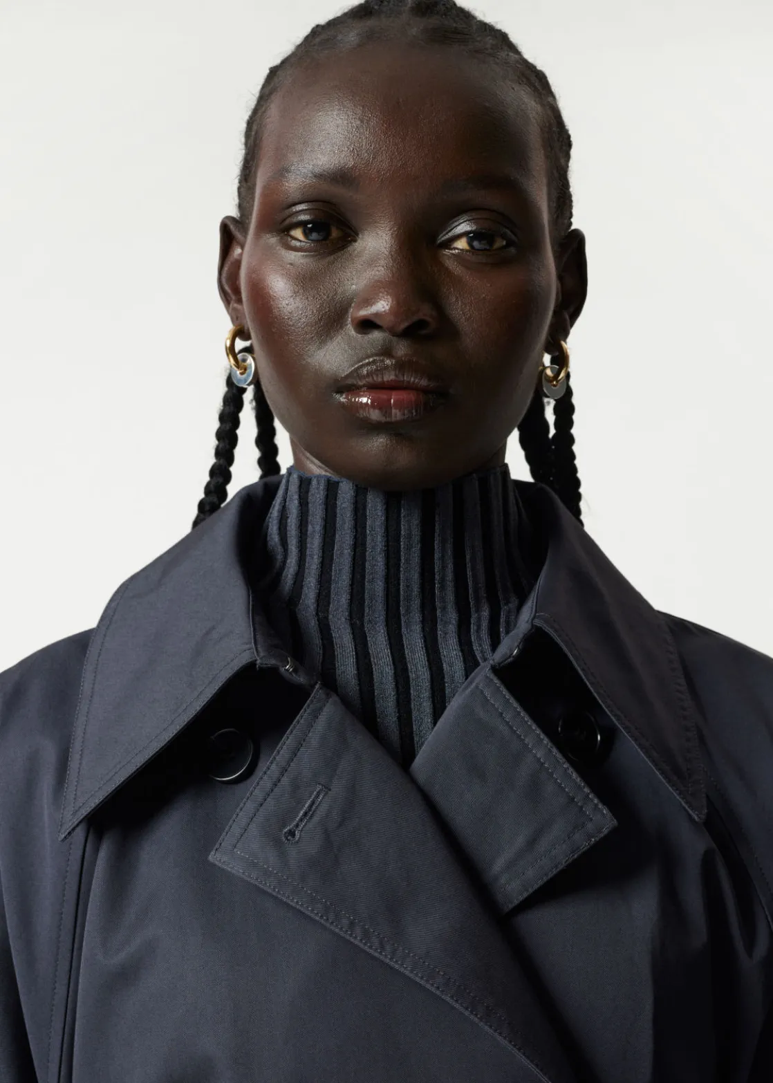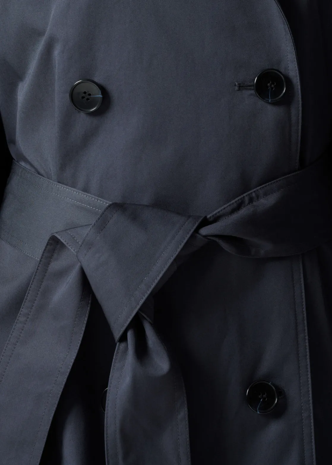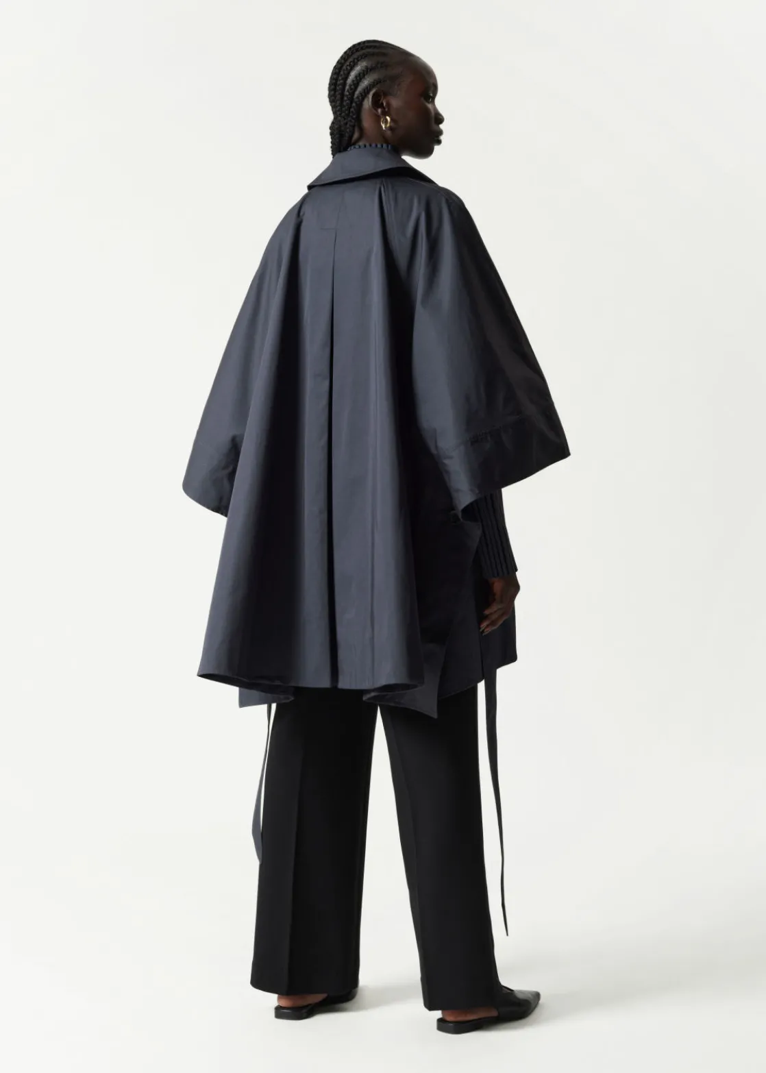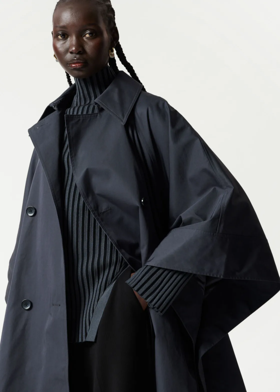 Oversized cape with a trenchcoat-inspired finish. Featuring a turn-down collar, a double-breasted silhouette and a self-tie belt.