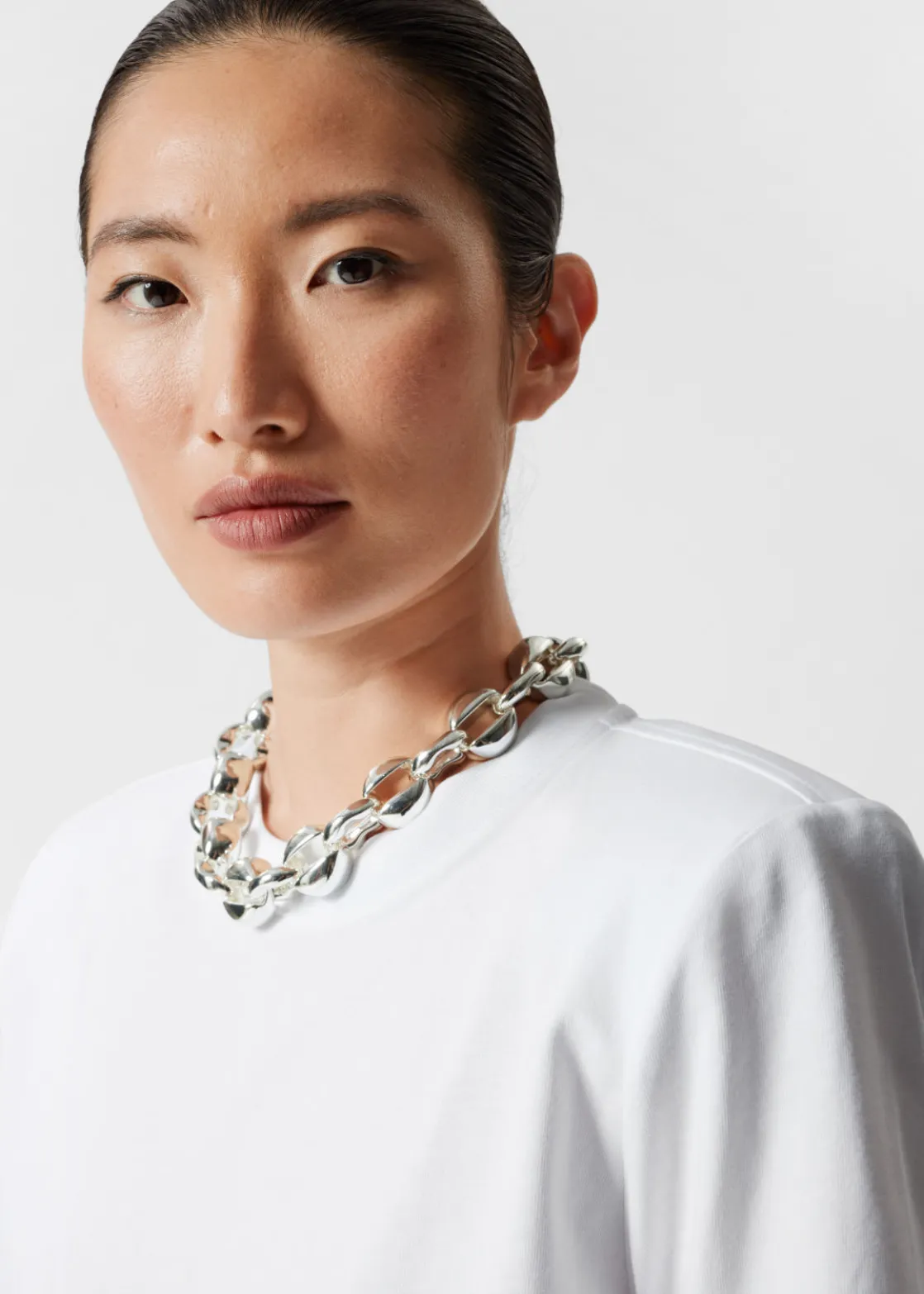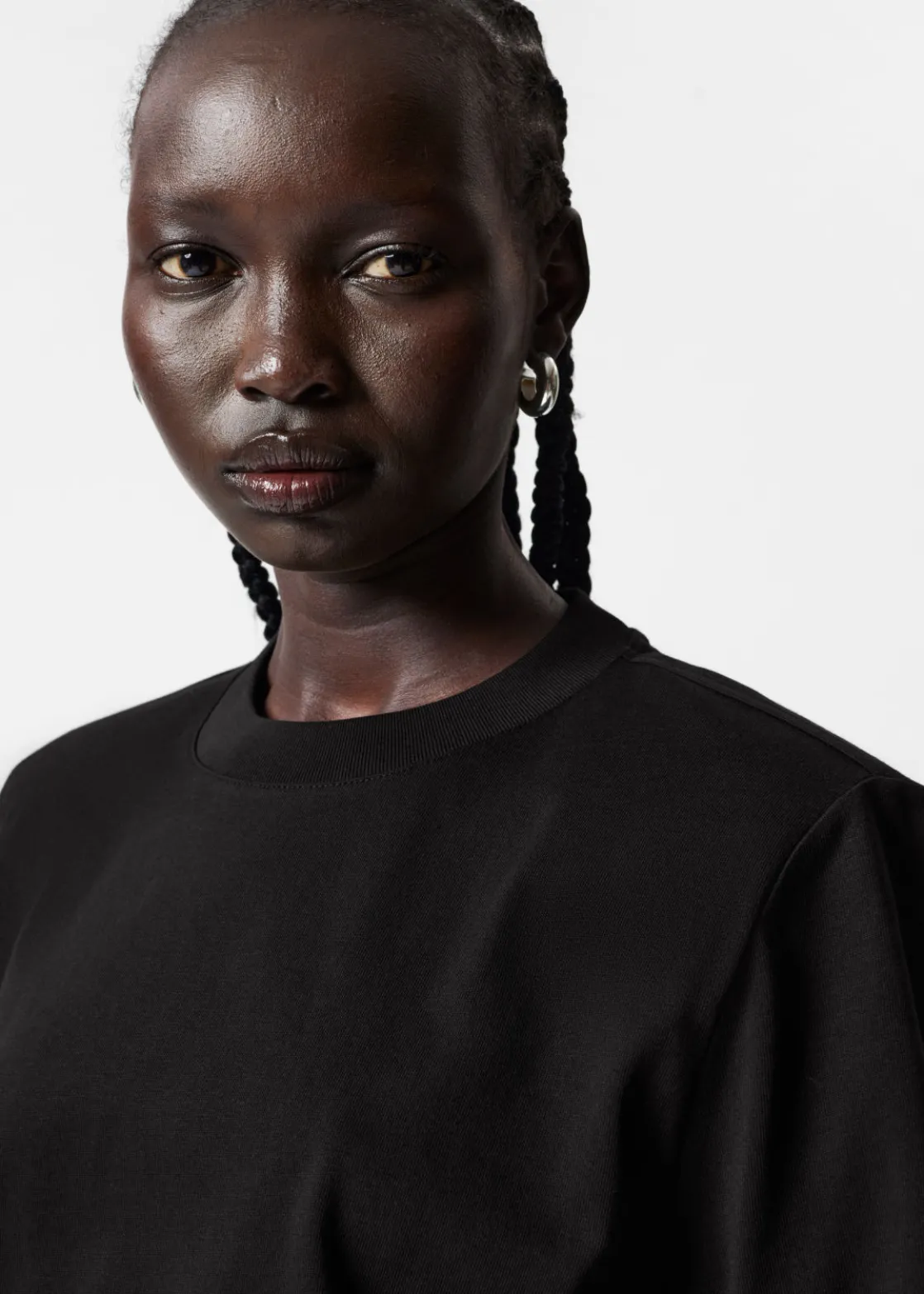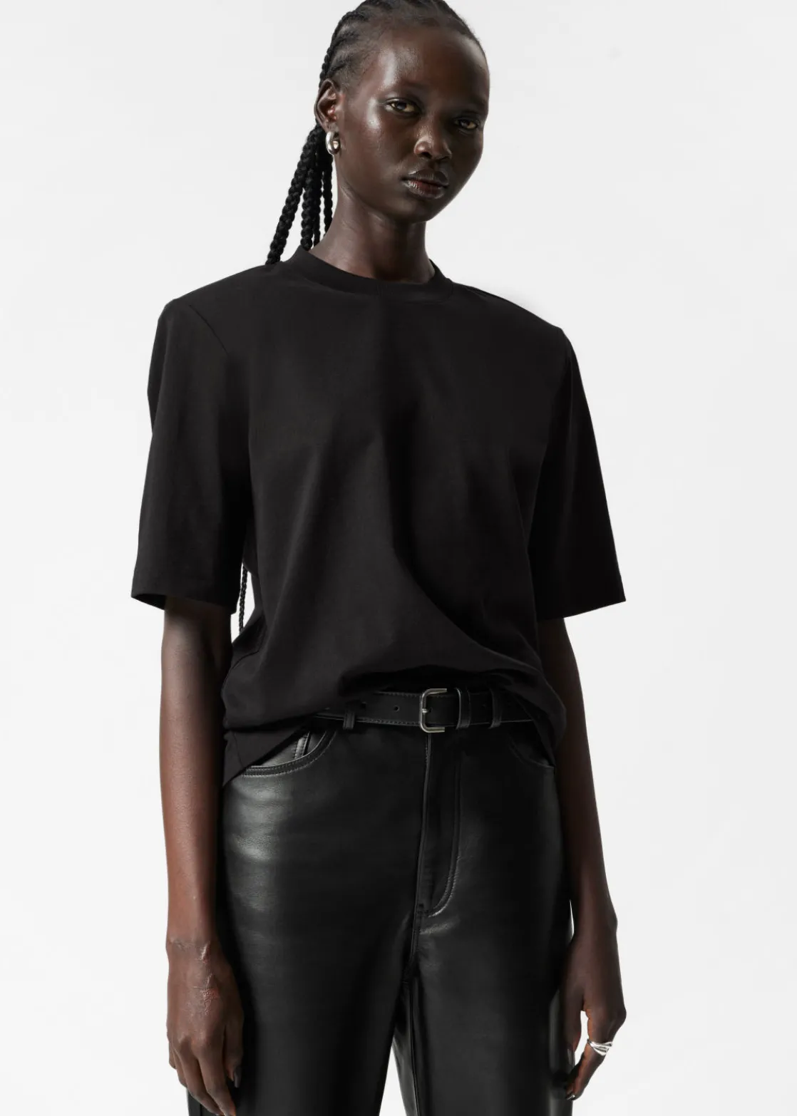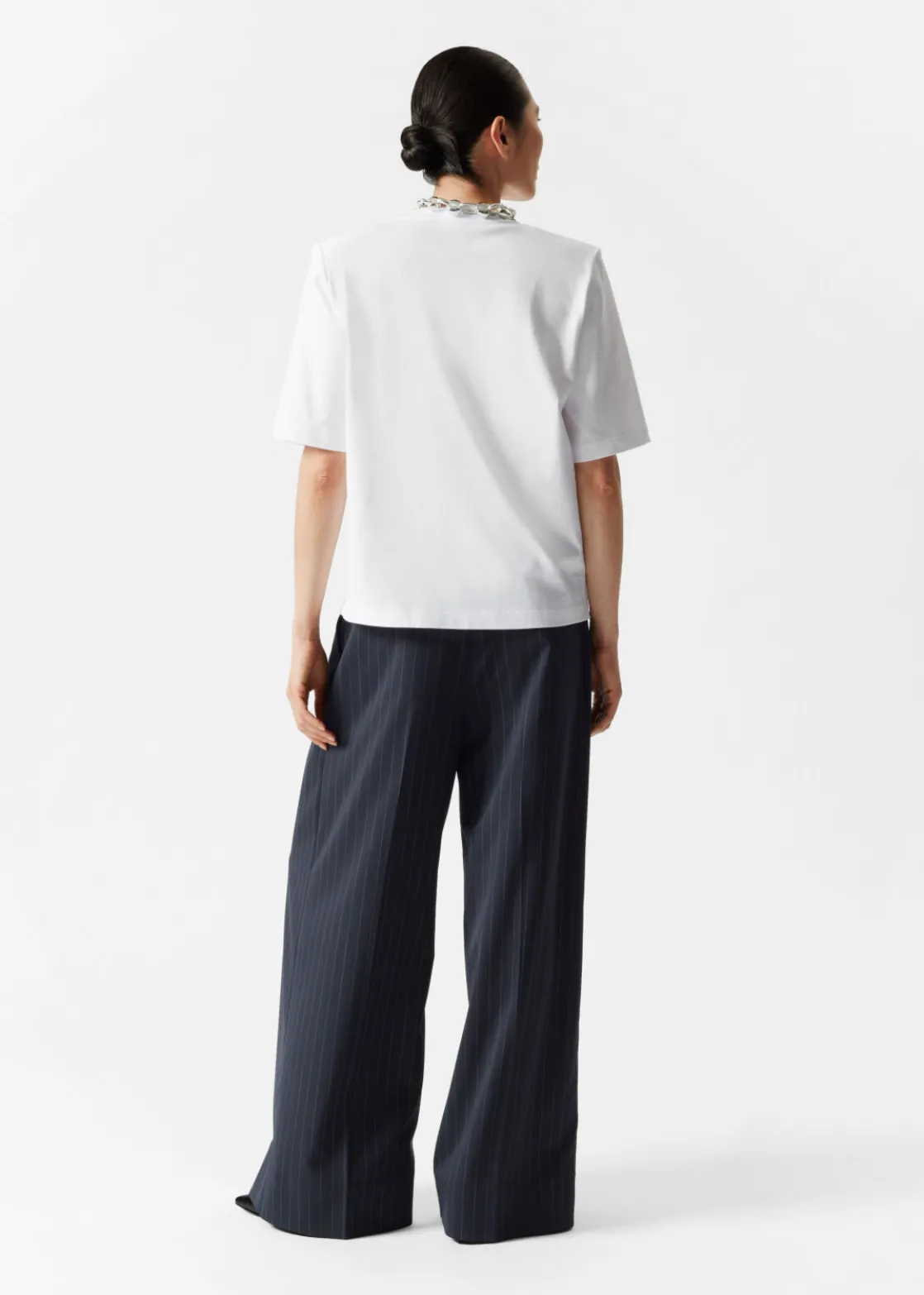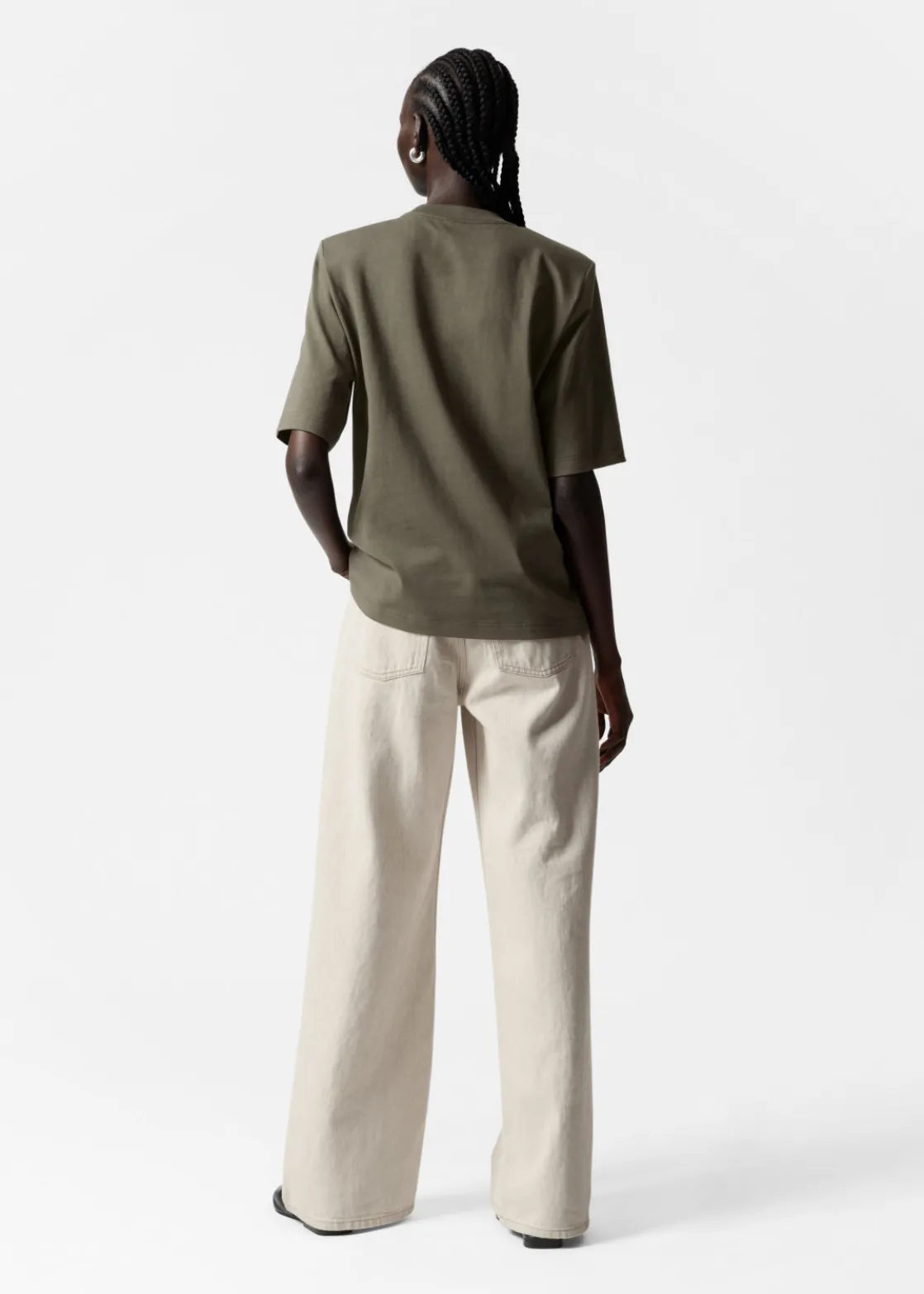 Classic crewneck t-shirt made from cotton. Featuring washable shoulder pads.