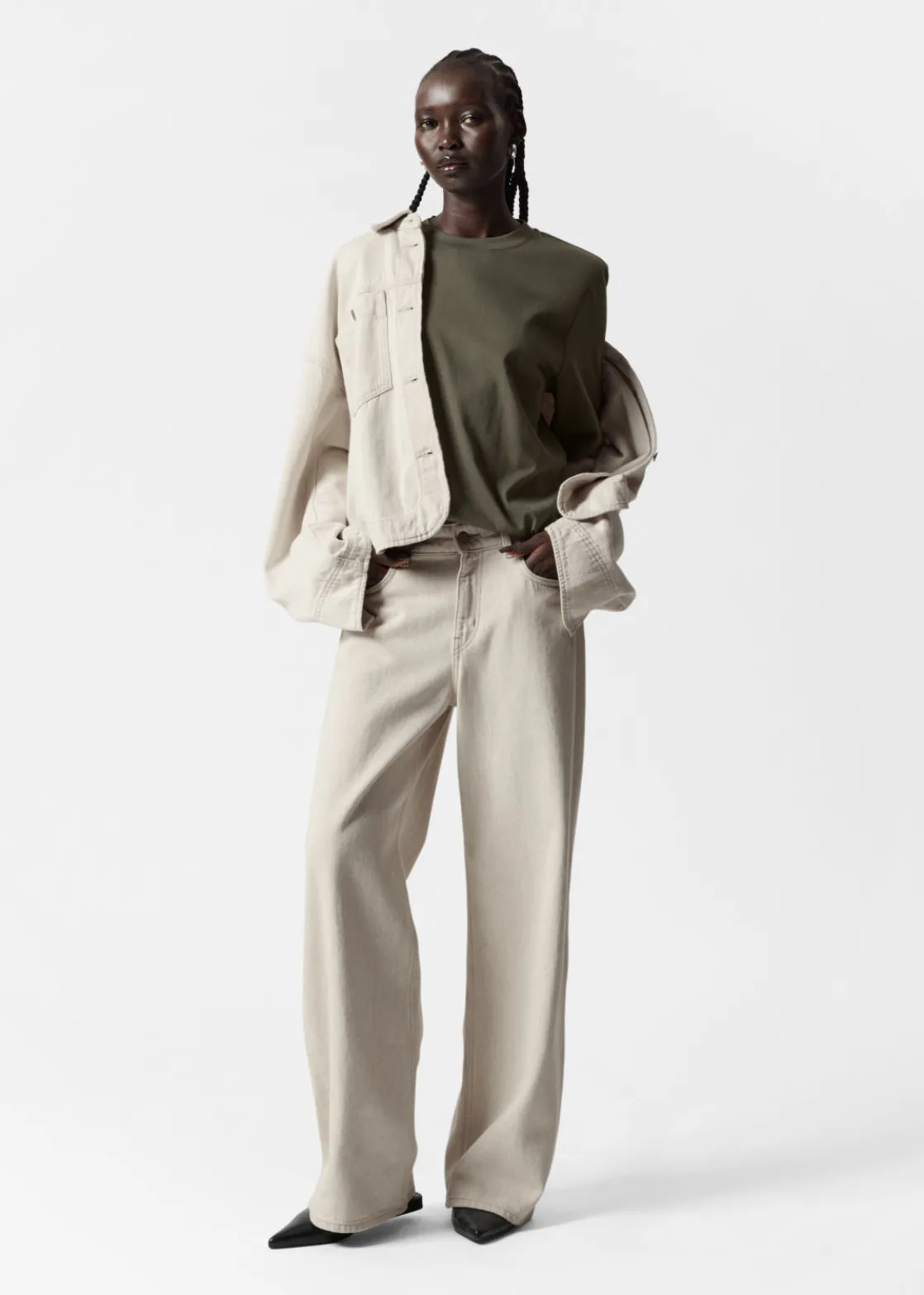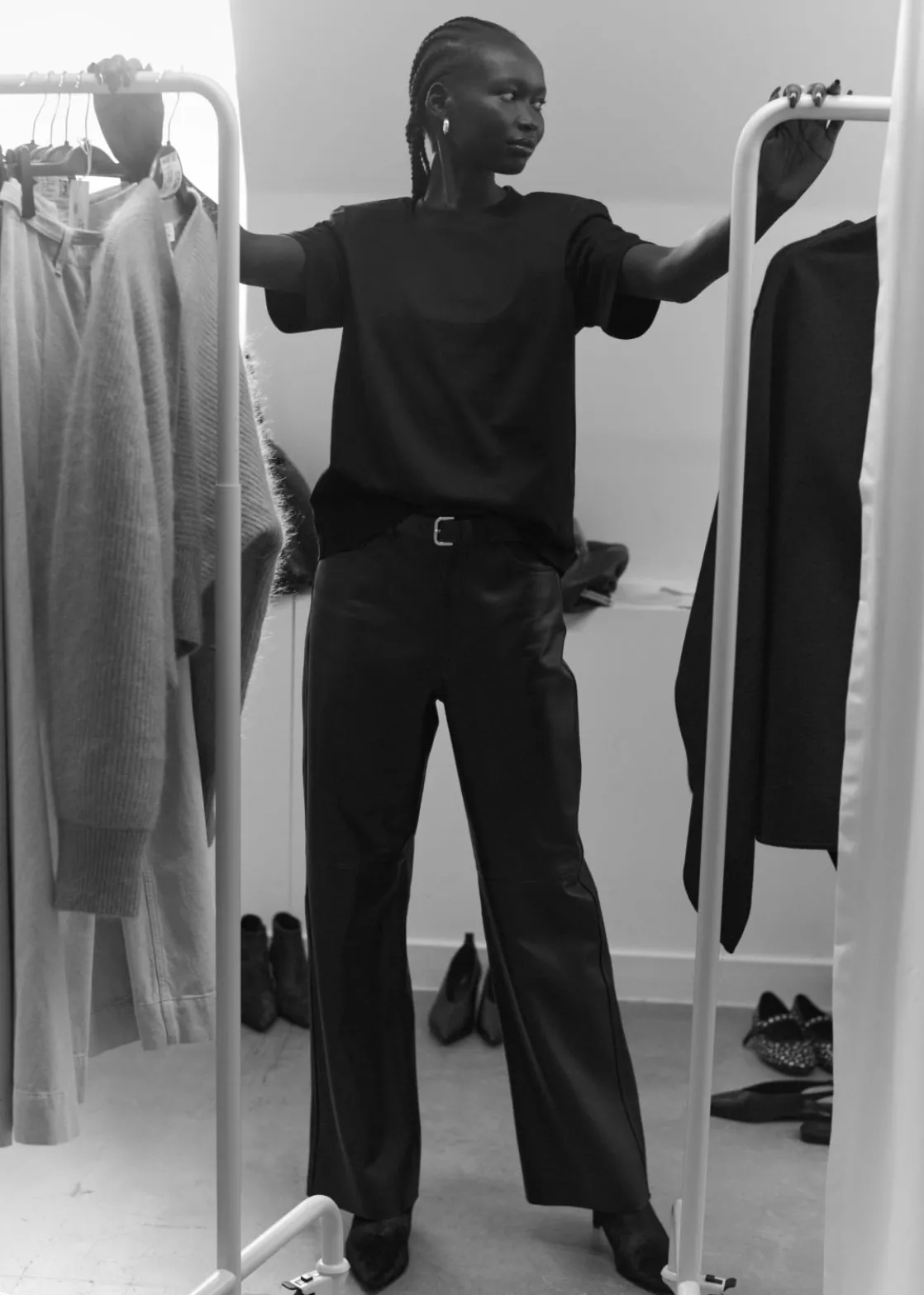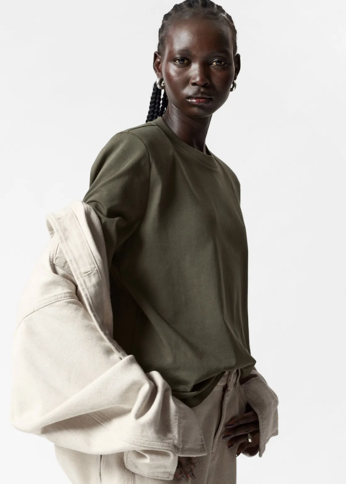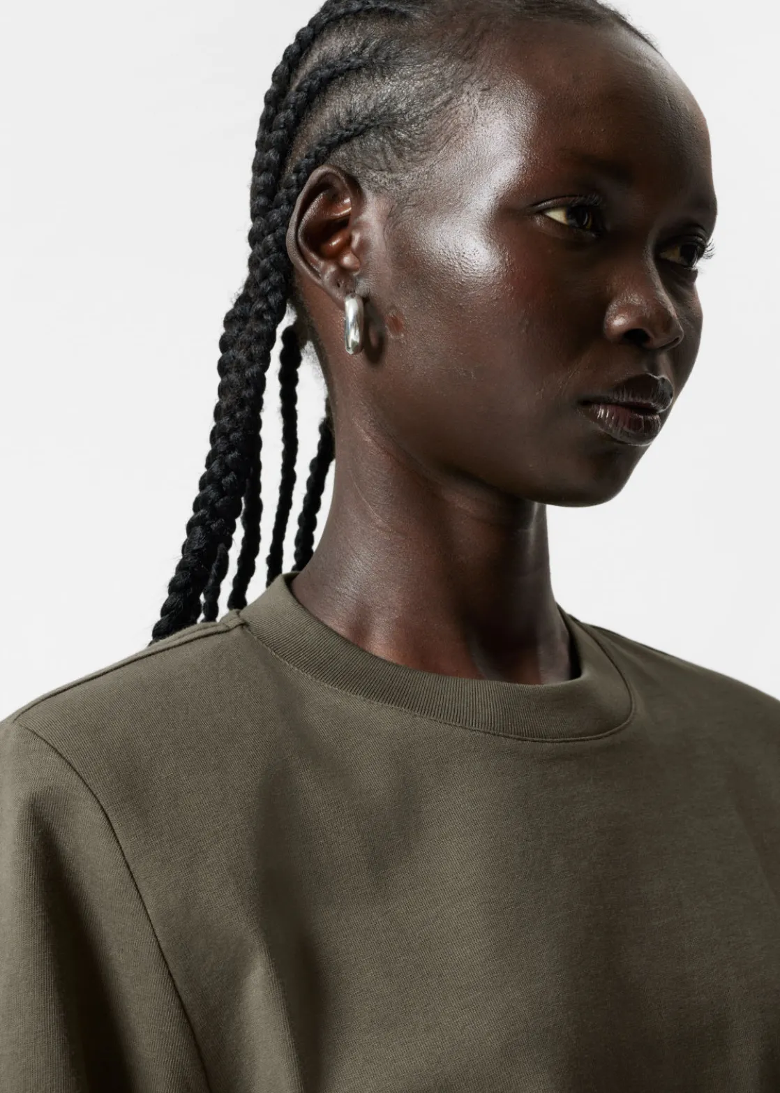 Classic crewneck t-shirt made from cotton. Featuring washable shoulder pads.