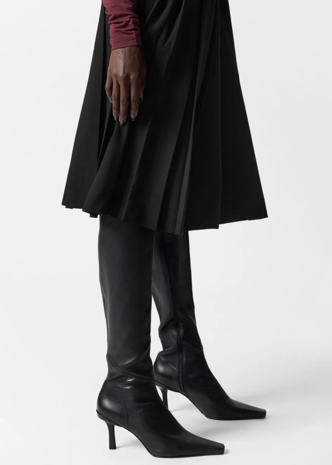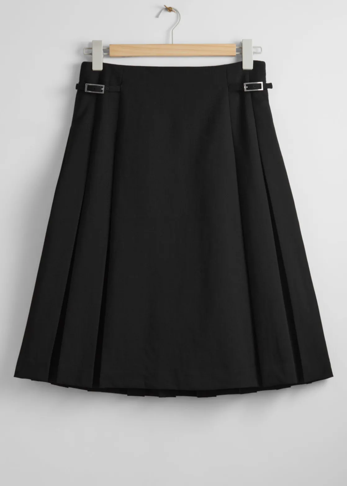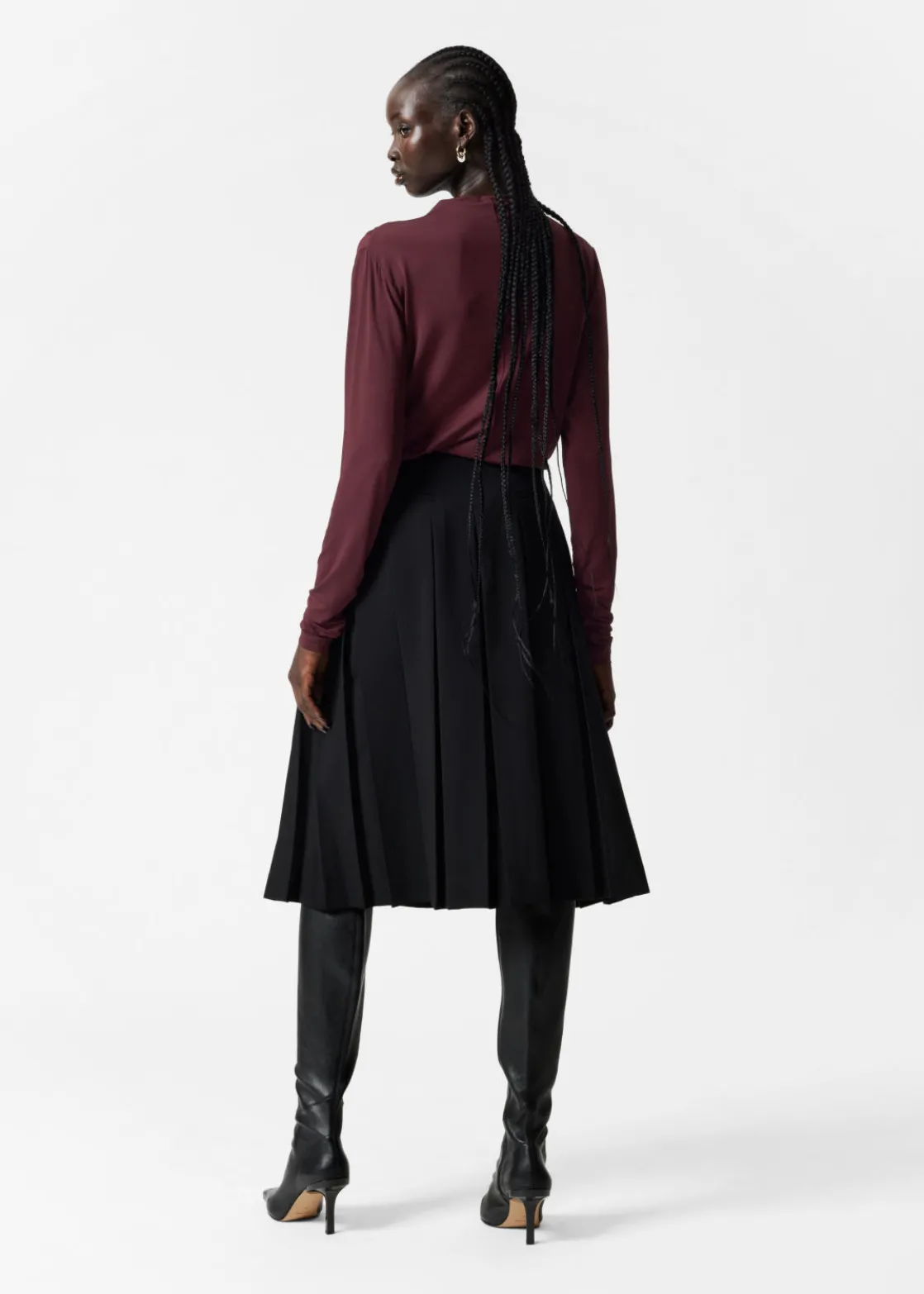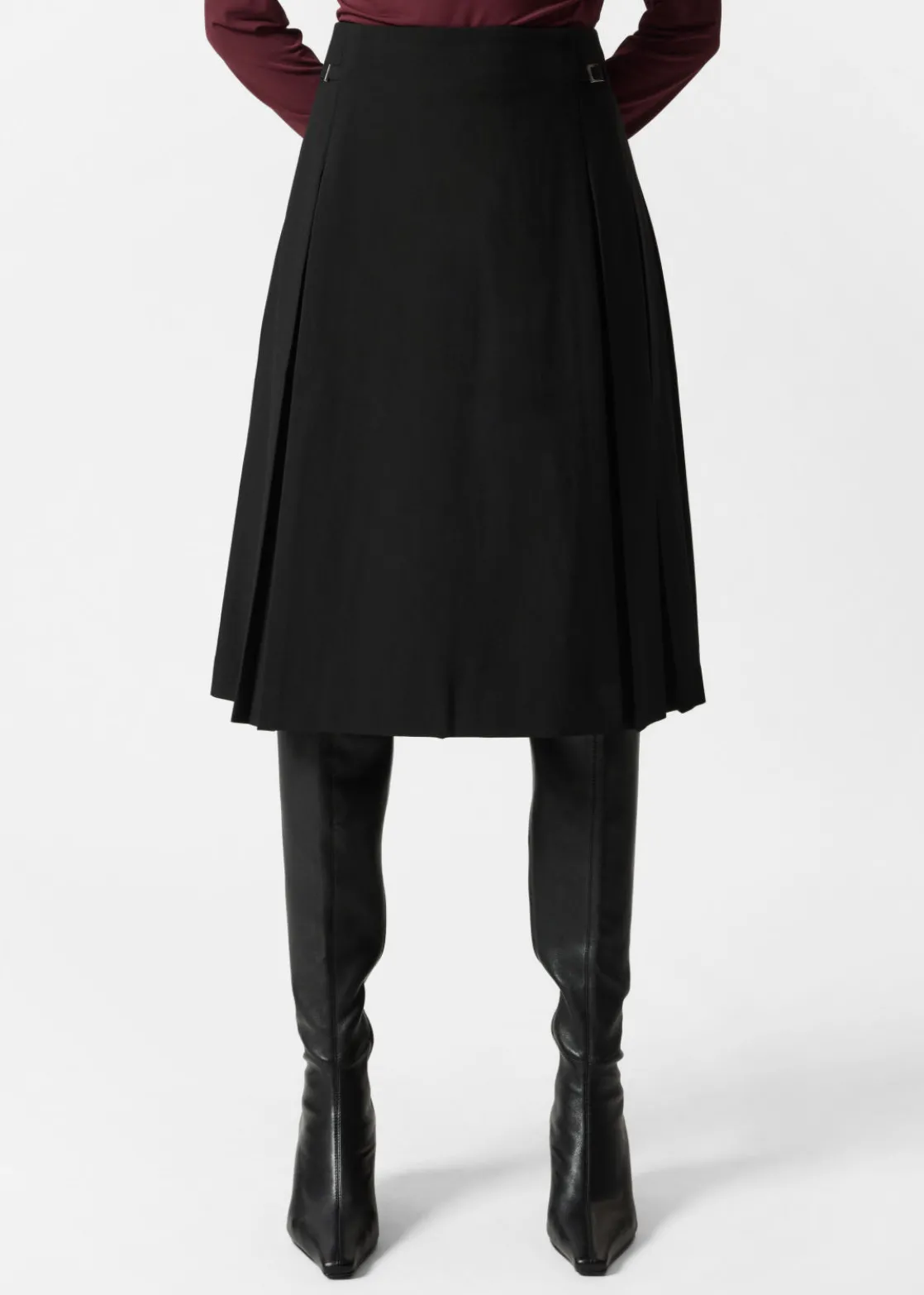 Midi skirt featuring pleated detailing at the sides and at the back.