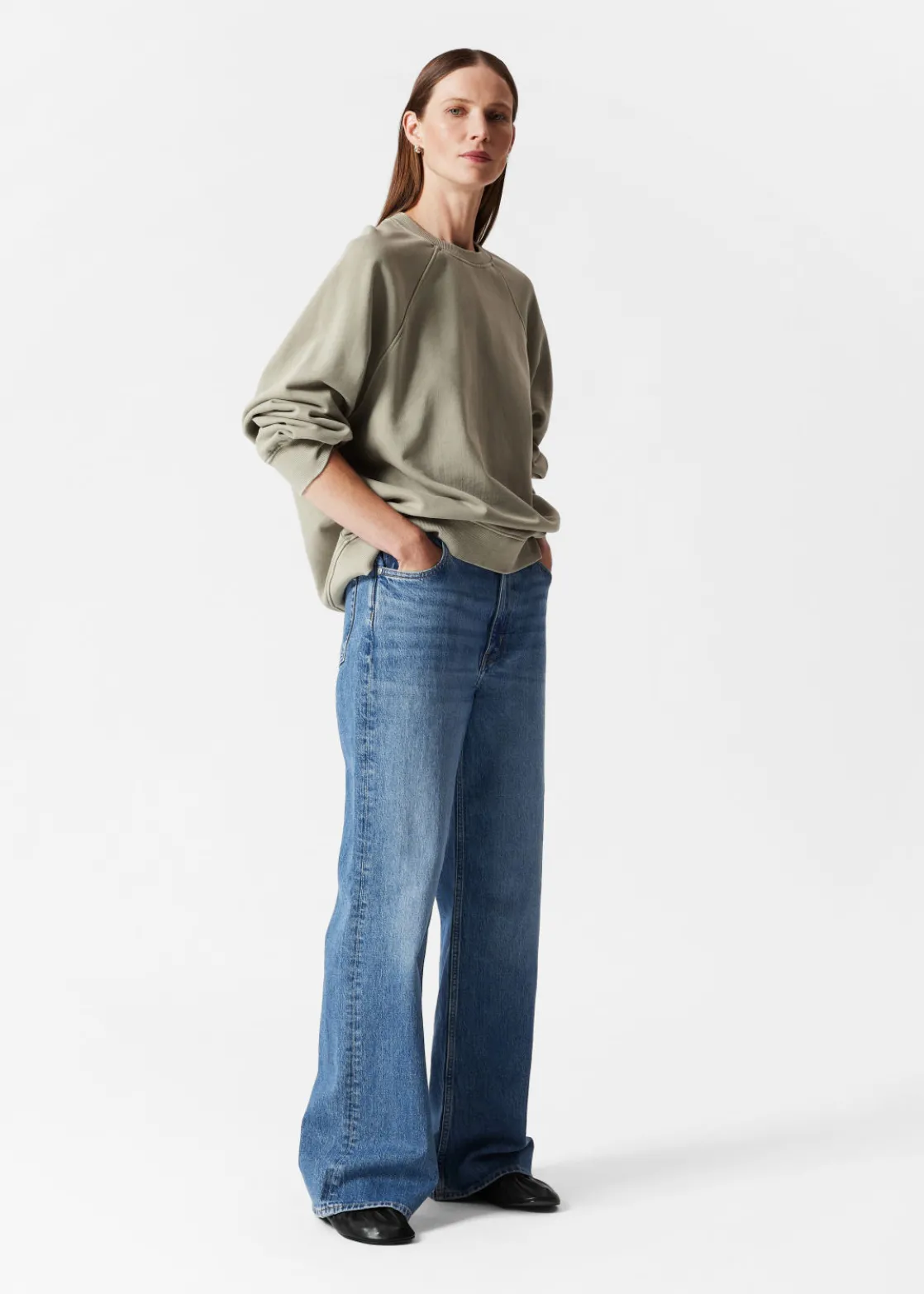 Relaxed sweatshirt finished with raglan sleeves and a ribbed neckline, cuffs and hemline.