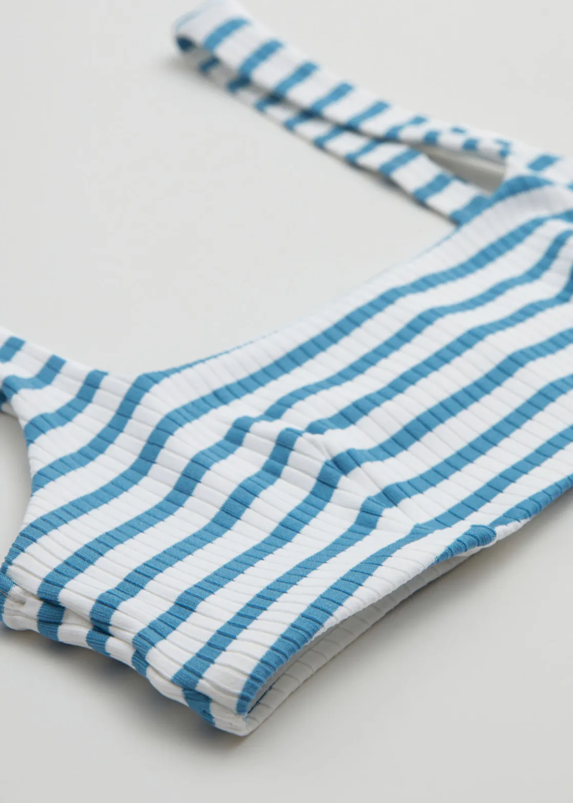 Bikini bandeau top with dart seams and light padding for a sculpting effect.