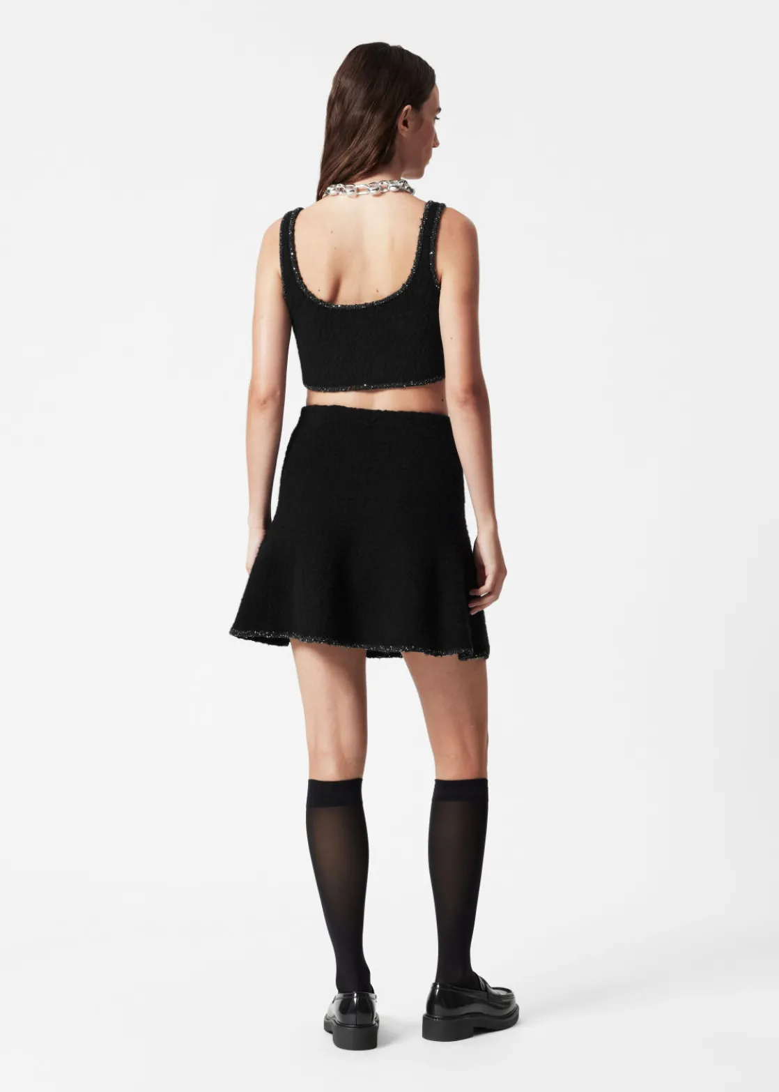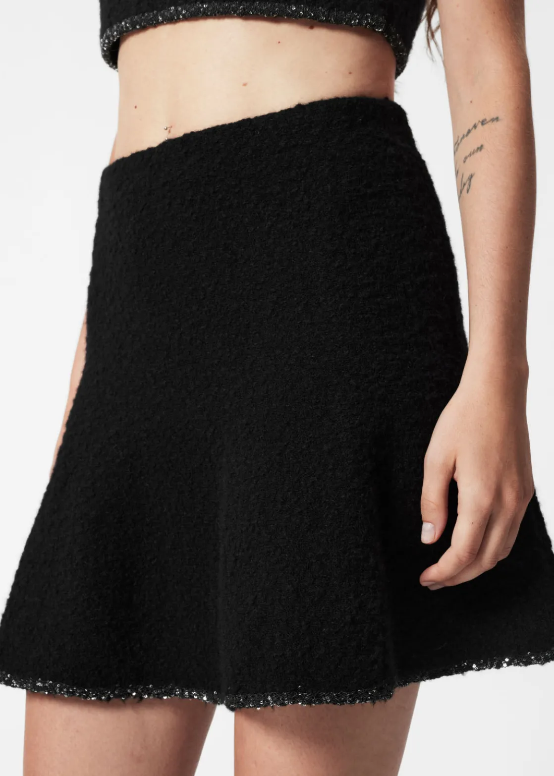 Sequin-Trimmed Bouclé Mini Skirt