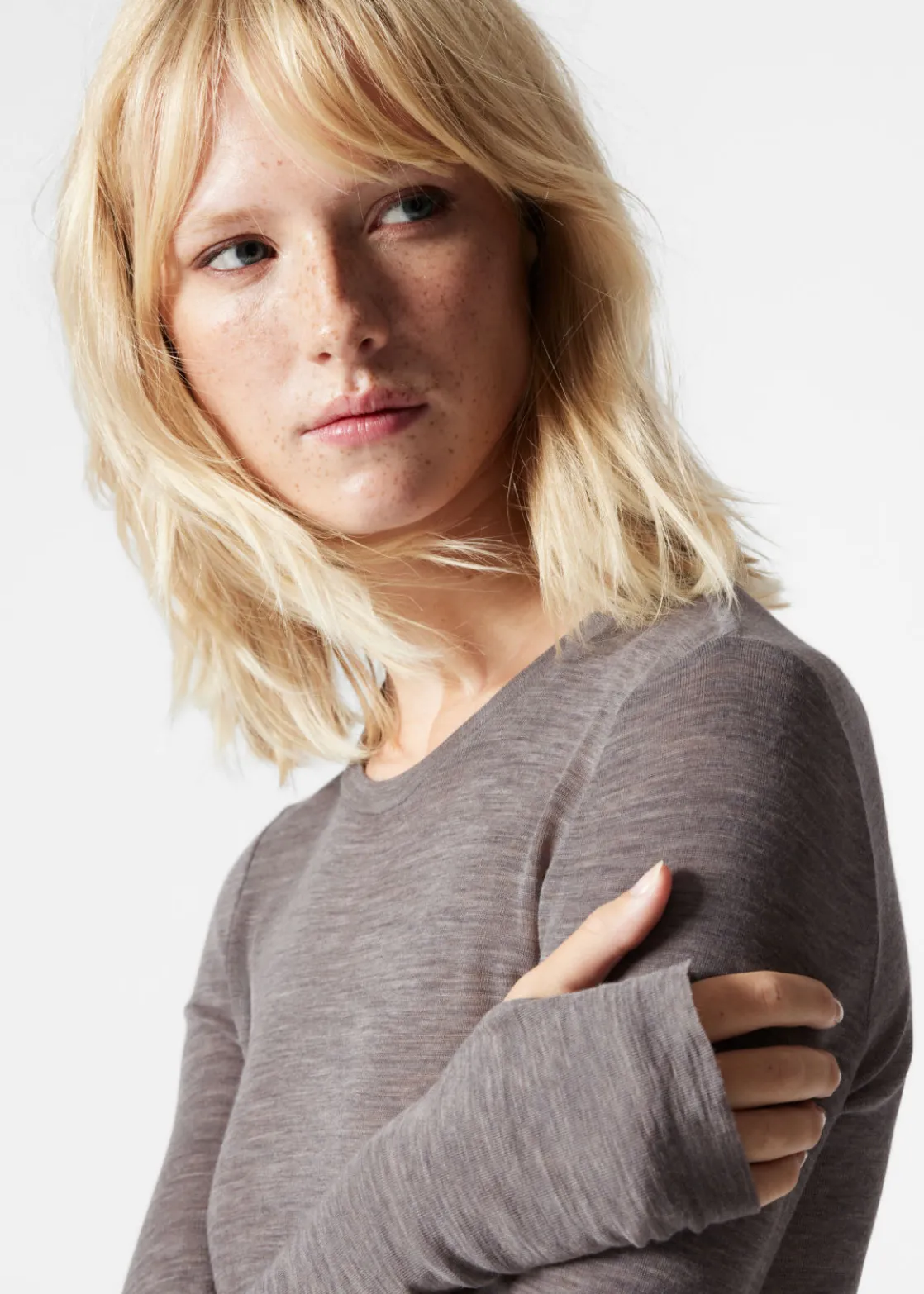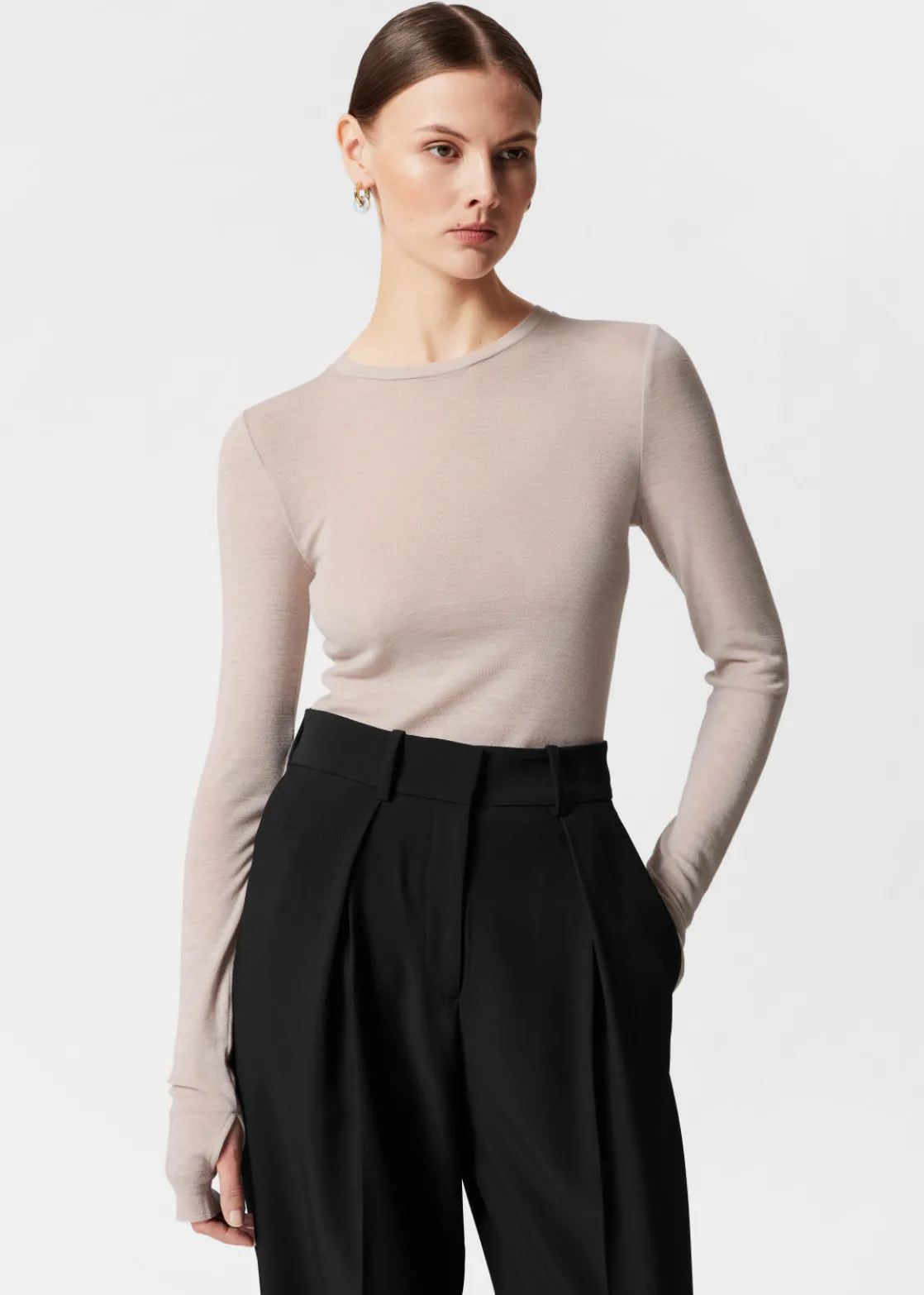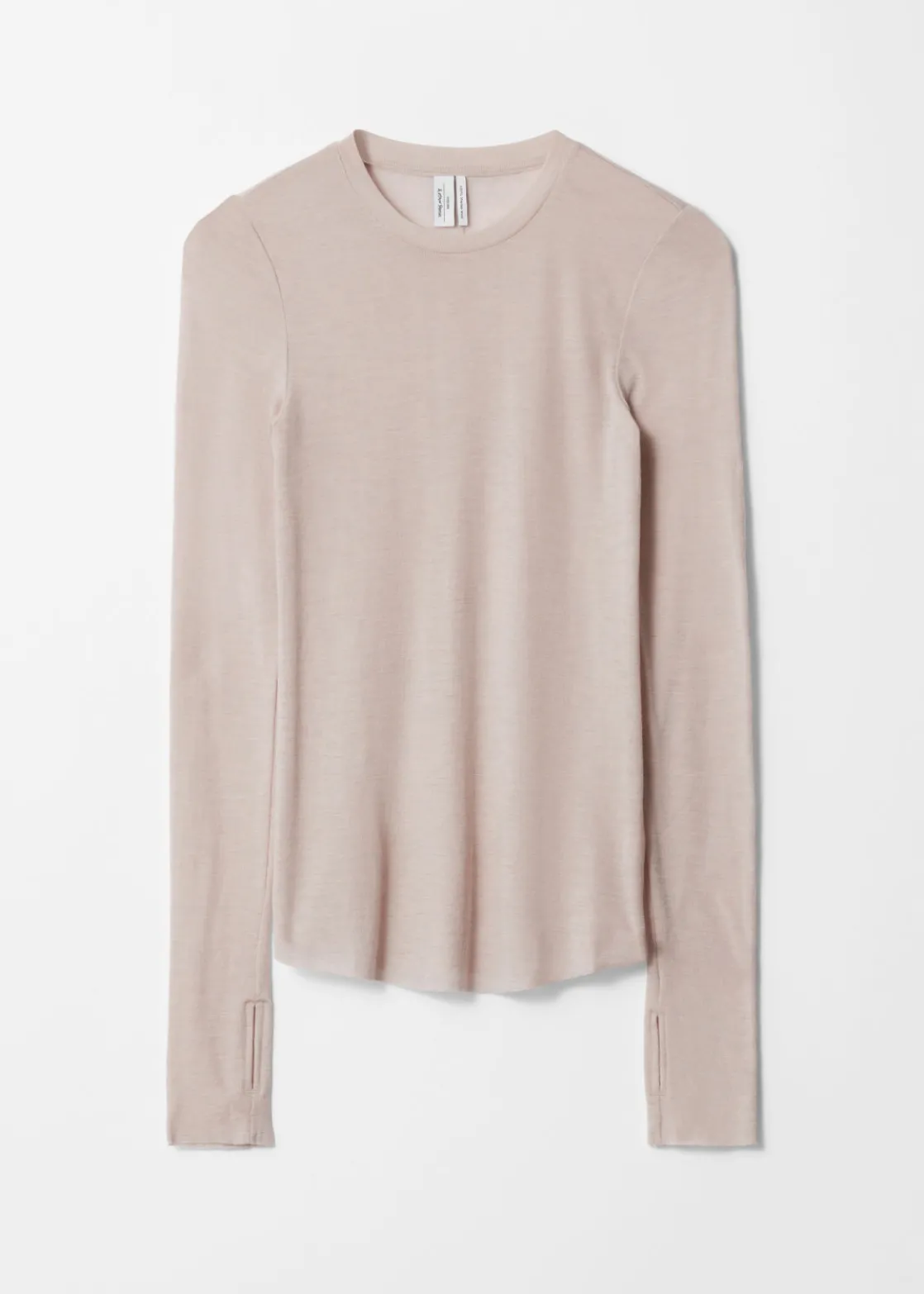 Long-sleeve top in a sheer finish. Detailed with open thumb openings at the cuffs.