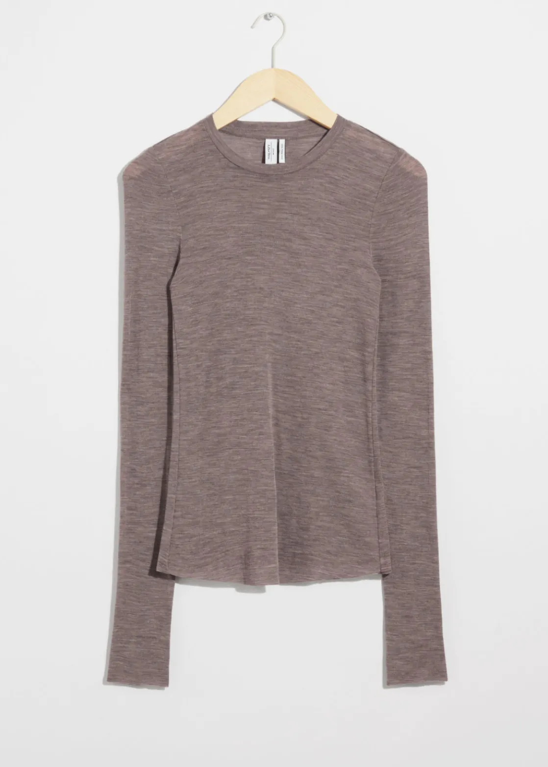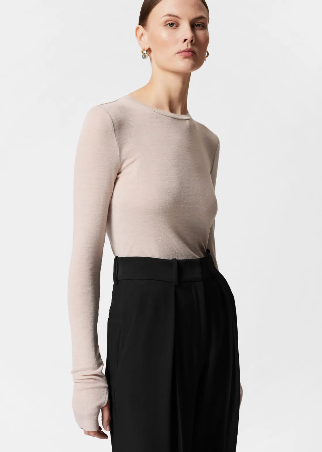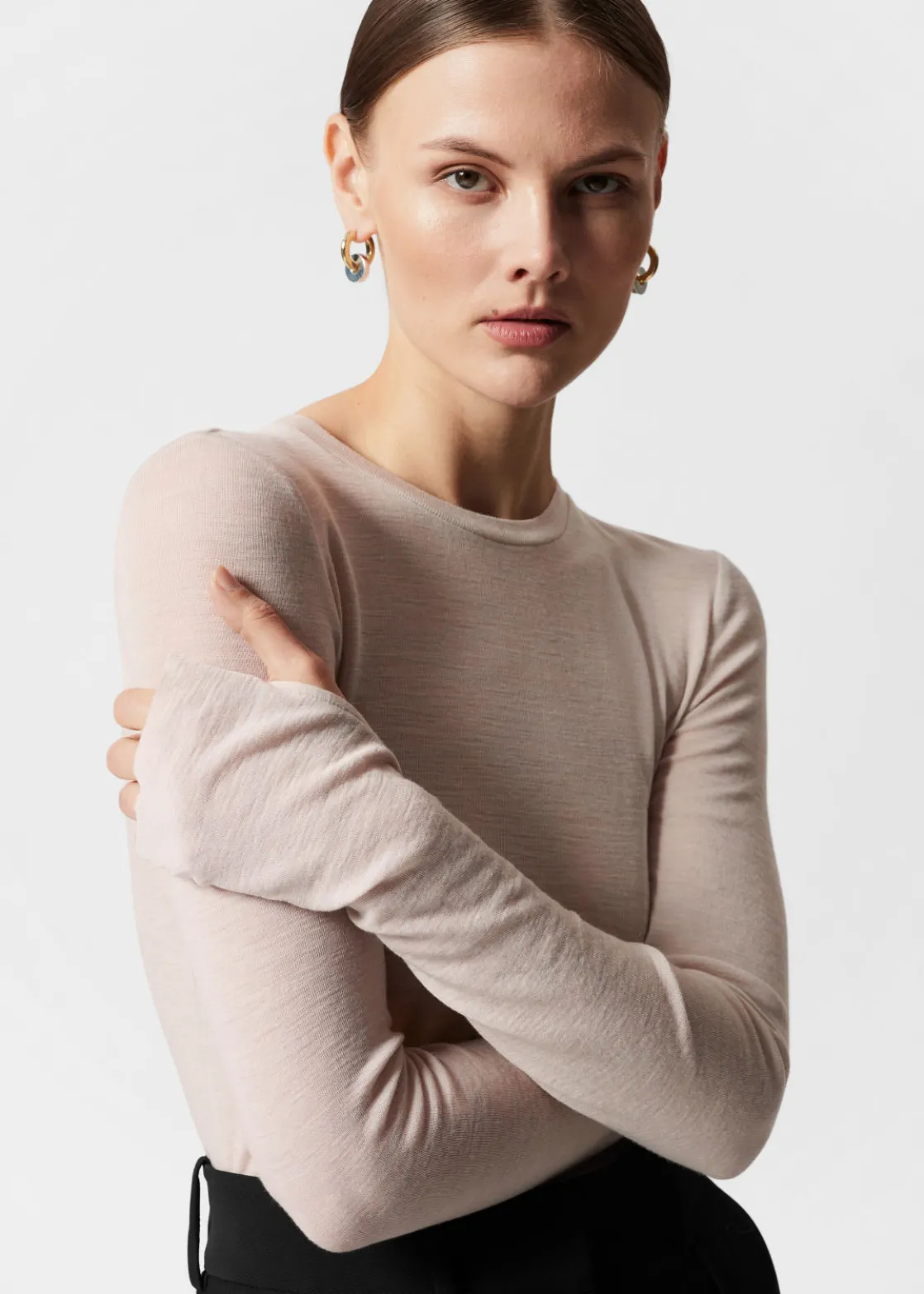 Long-sleeve top in a sheer finish. Detailed with open thumb openings at the cuffs.