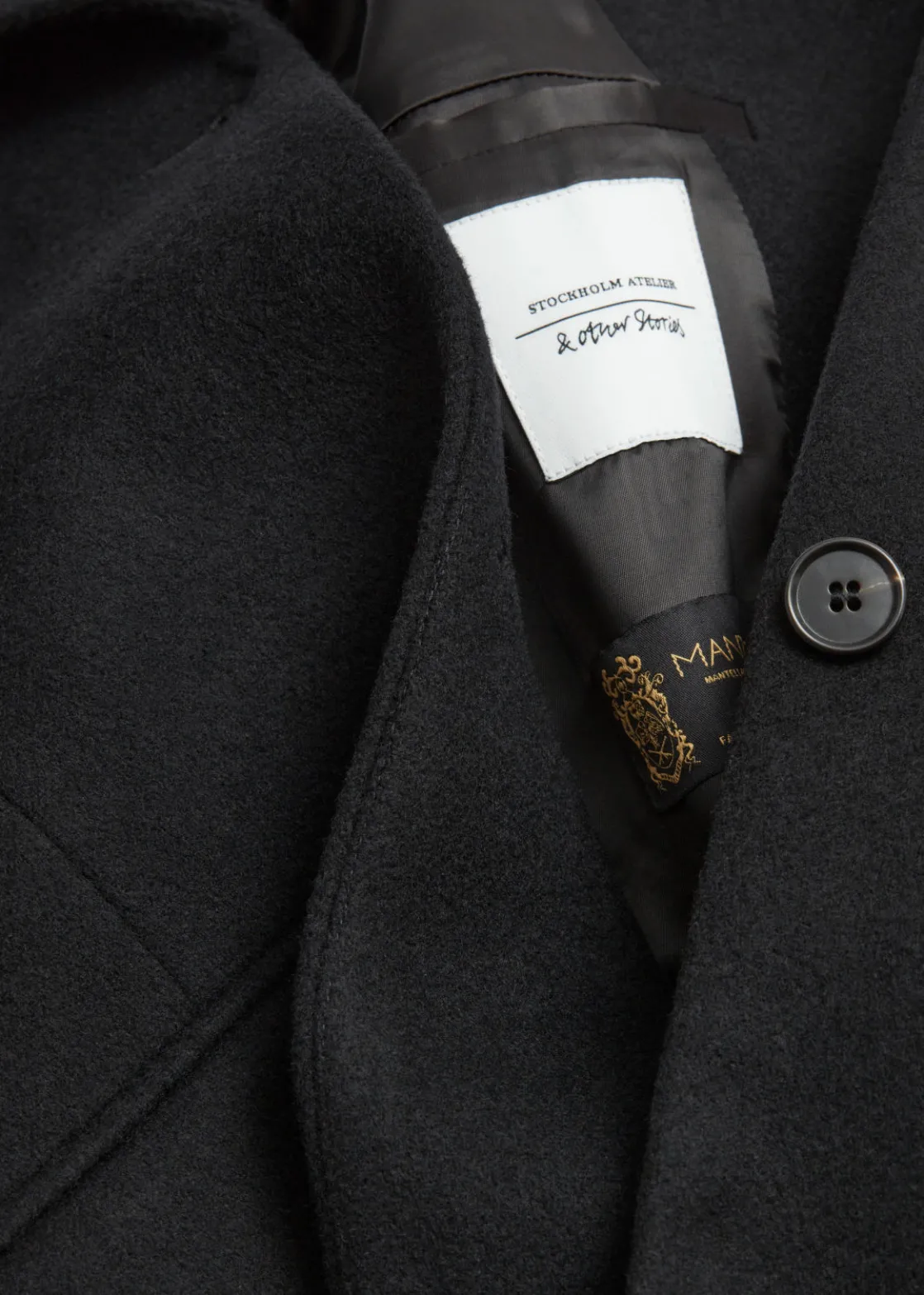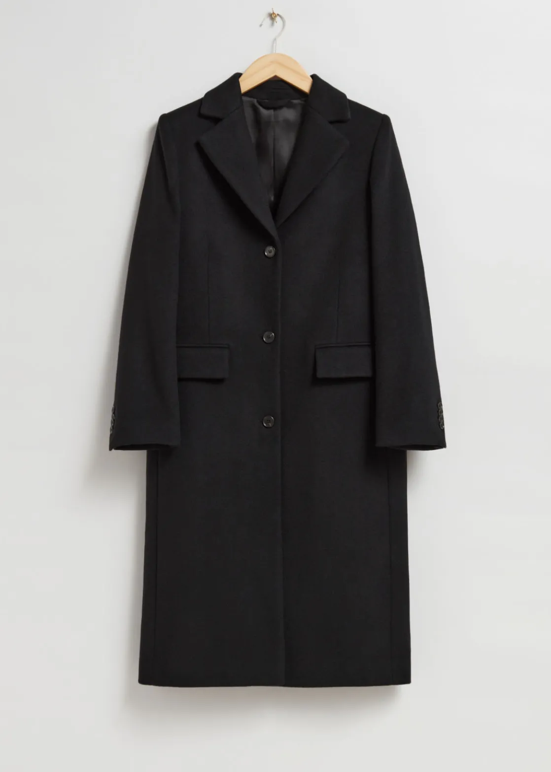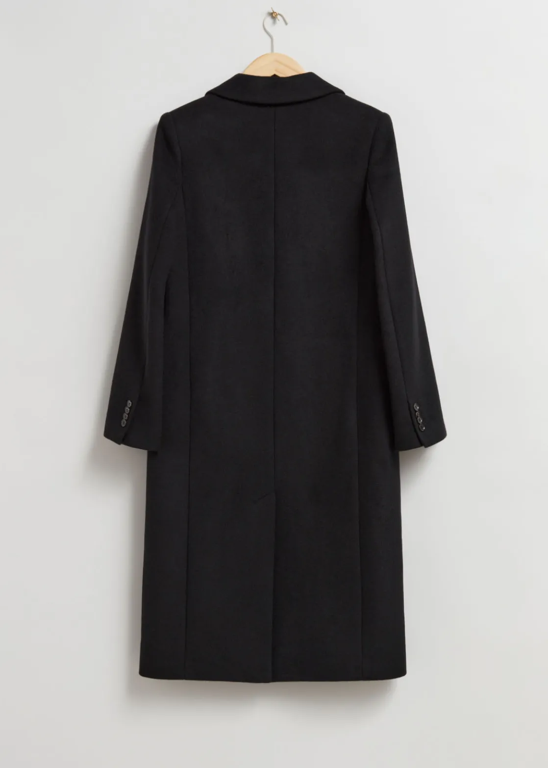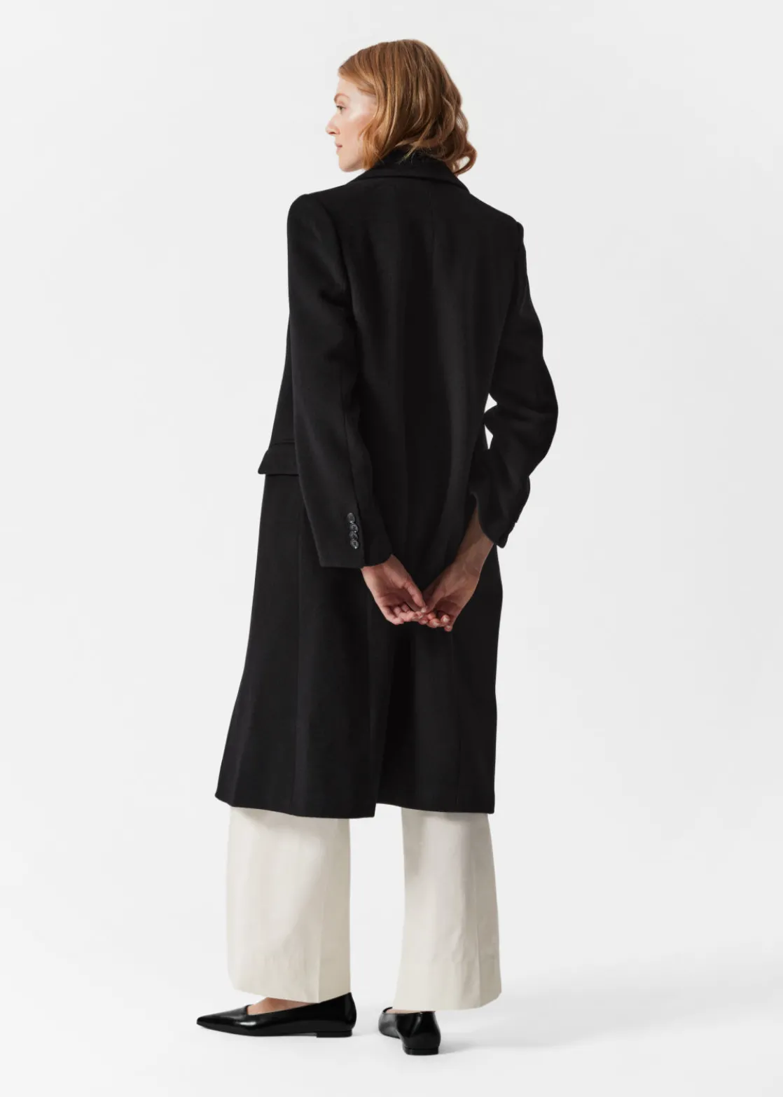 Relaxed wool-blend coat with a single-breasted finish and padded shoulders.