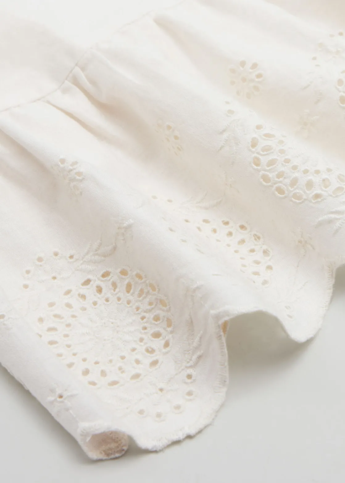 Sleeveless broderie anglaise top crafted from linen and cotton. Designed with a round-cut neckline, decorative embroidery detail, and a scalloped hemline.