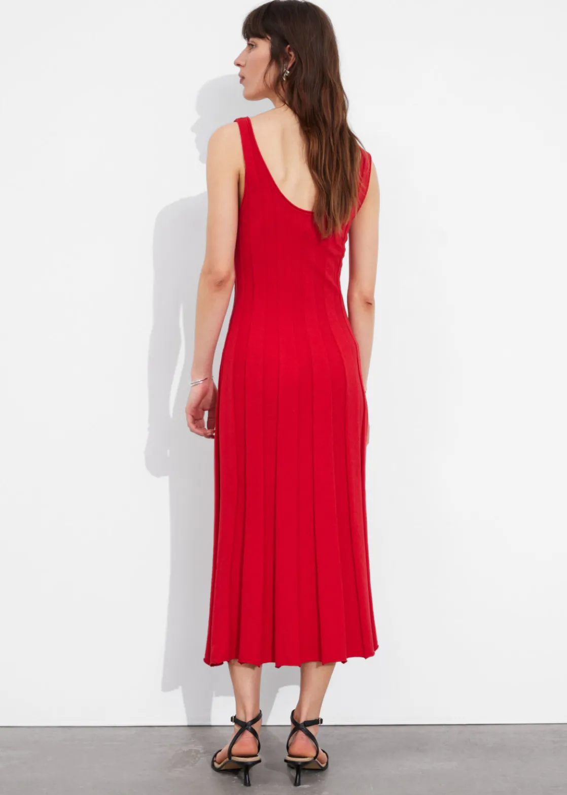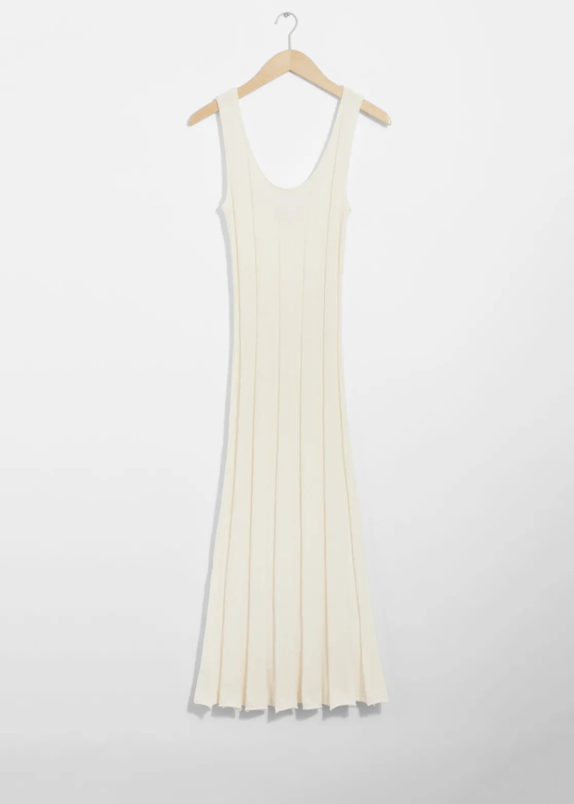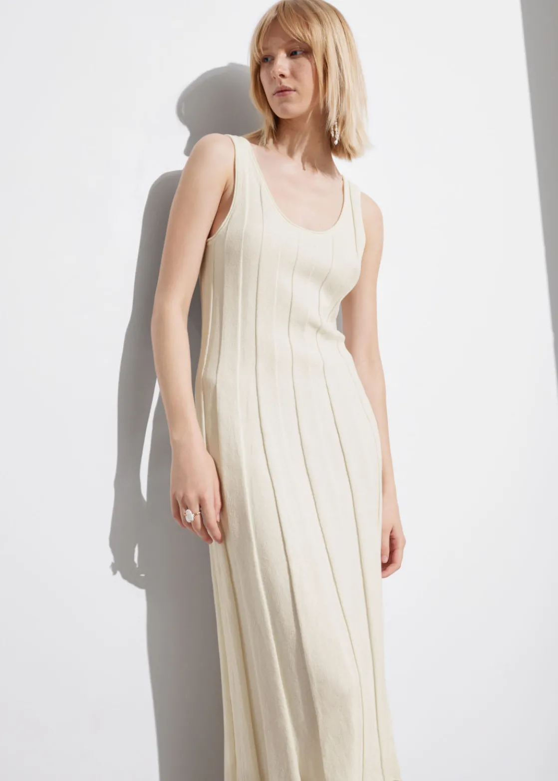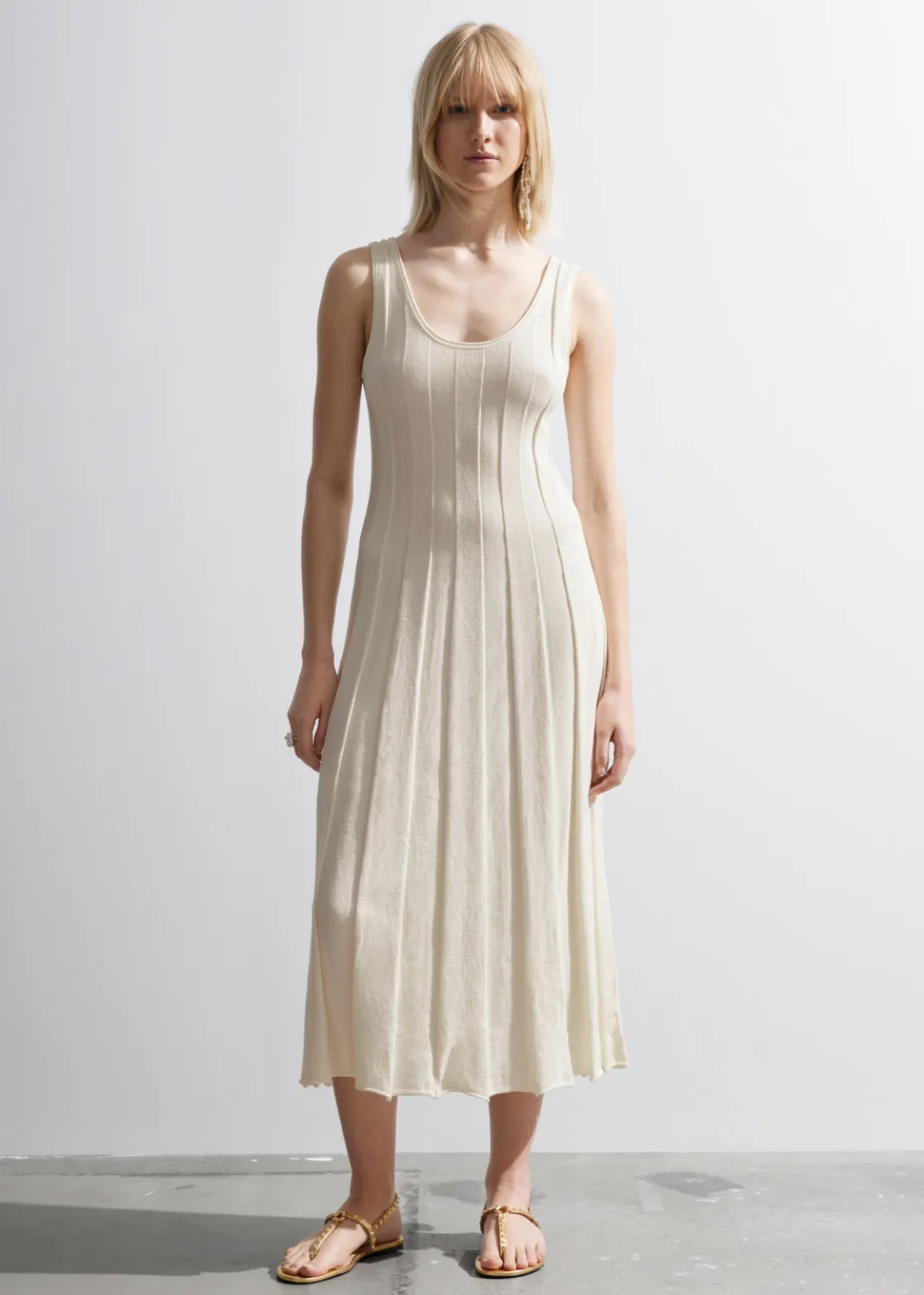 Tank midi dress finished with a ribbed structure and a deep neckline.