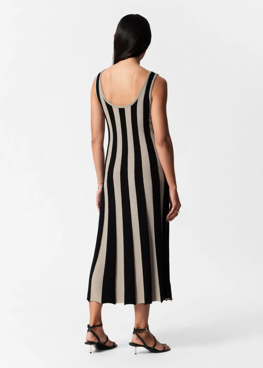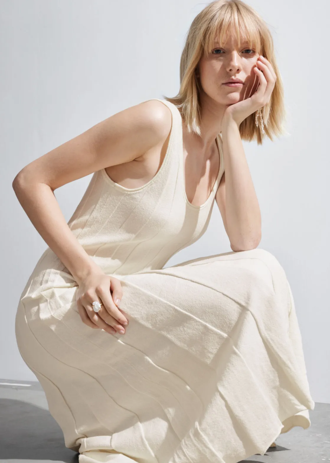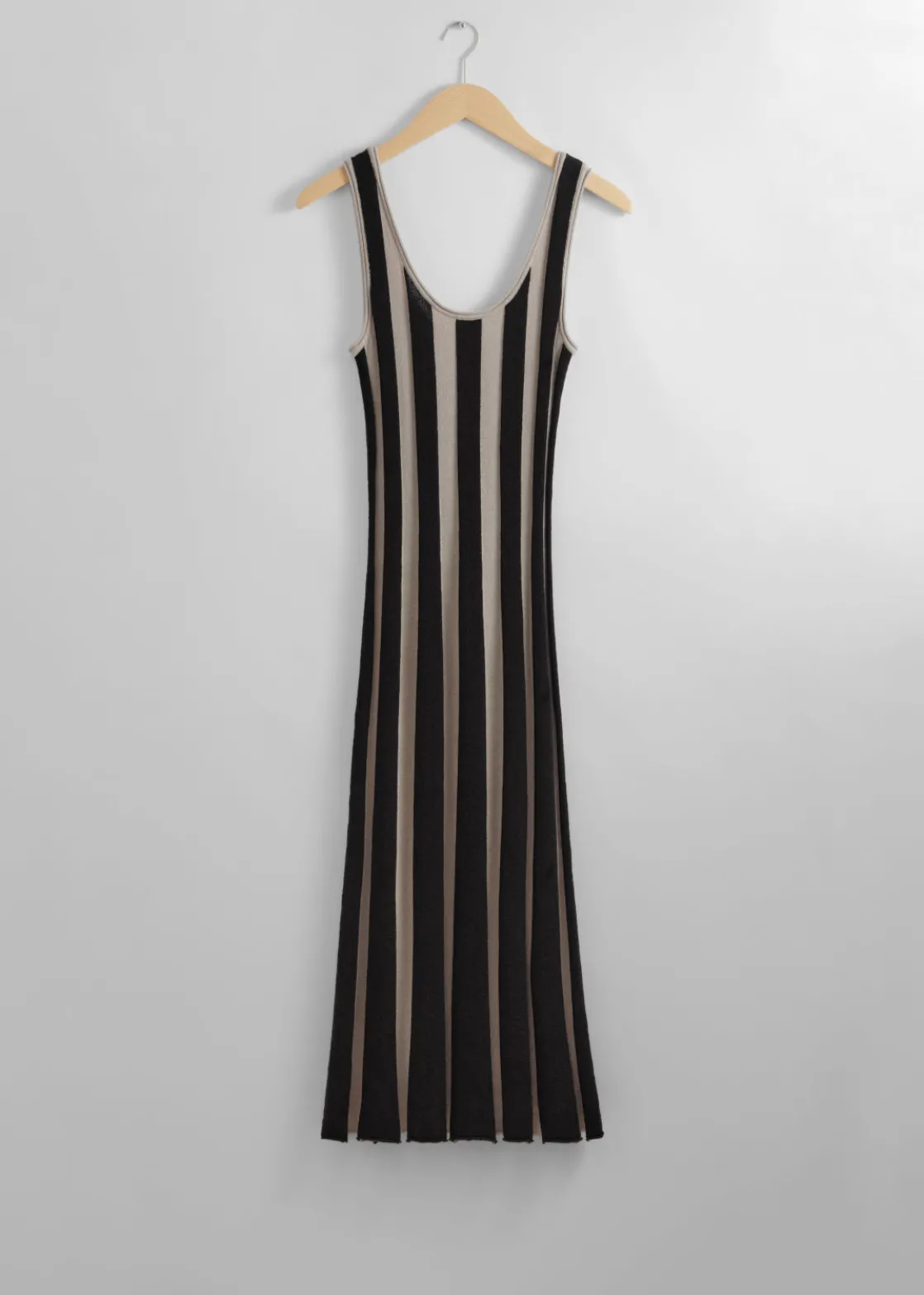 Tank midi dress finished with a ribbed structure and a deep neckline.