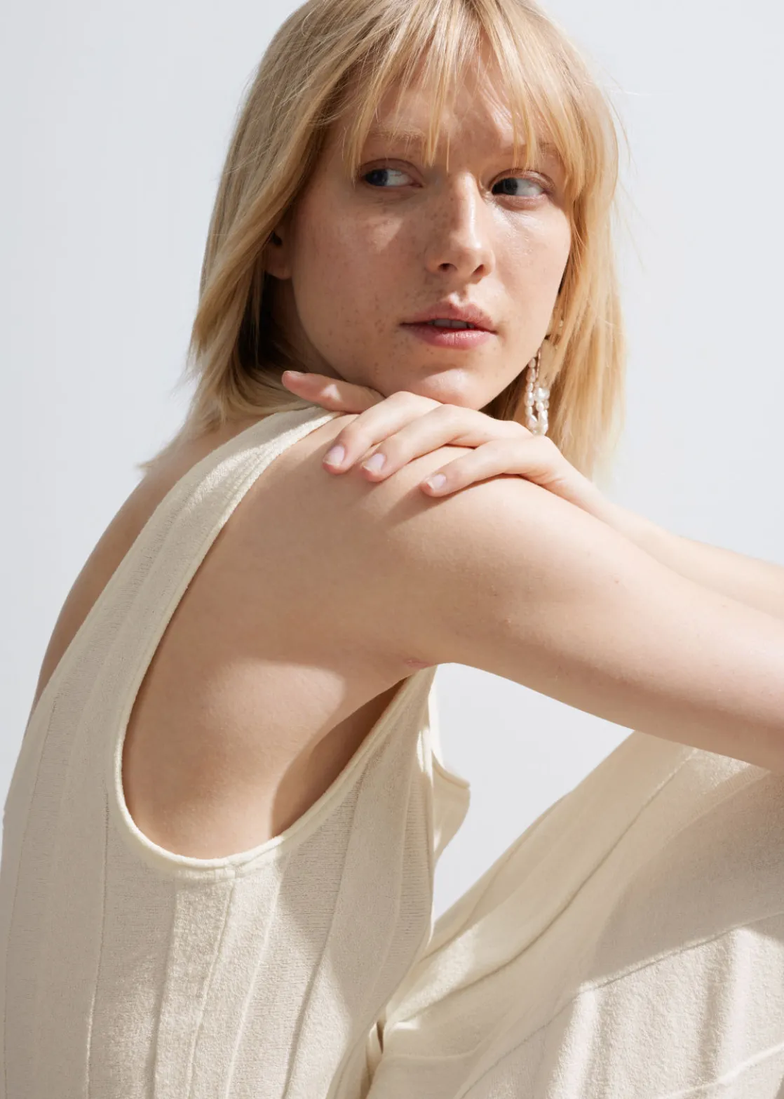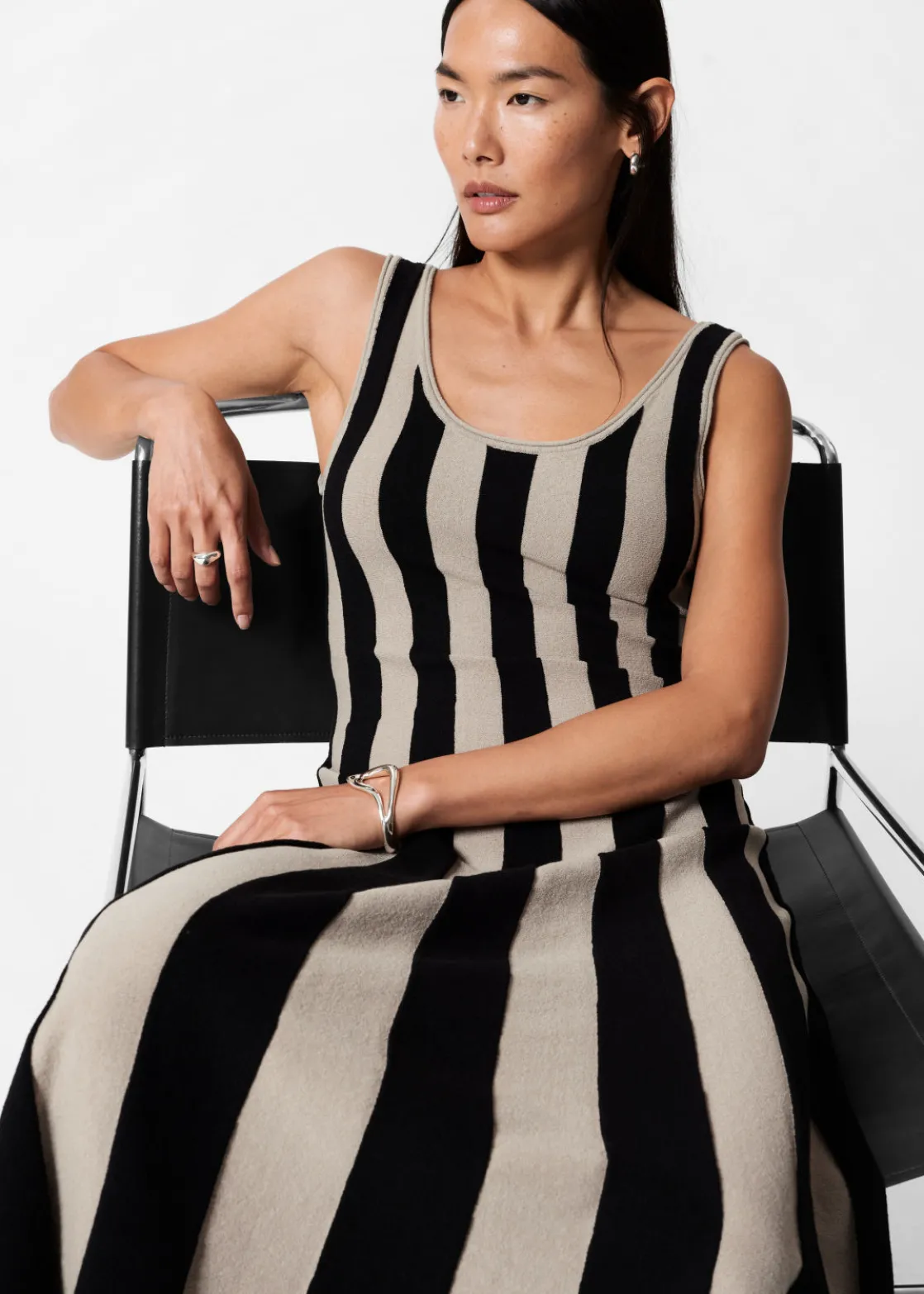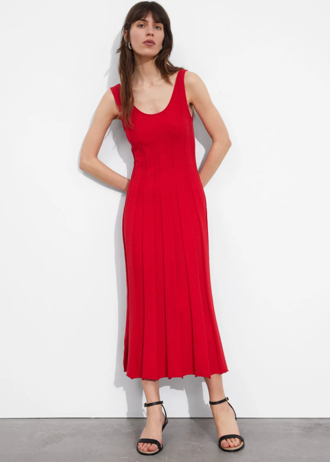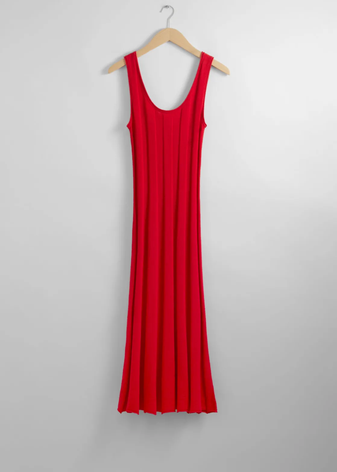 Tank midi dress finished with a ribbed structure and a deep neckline.