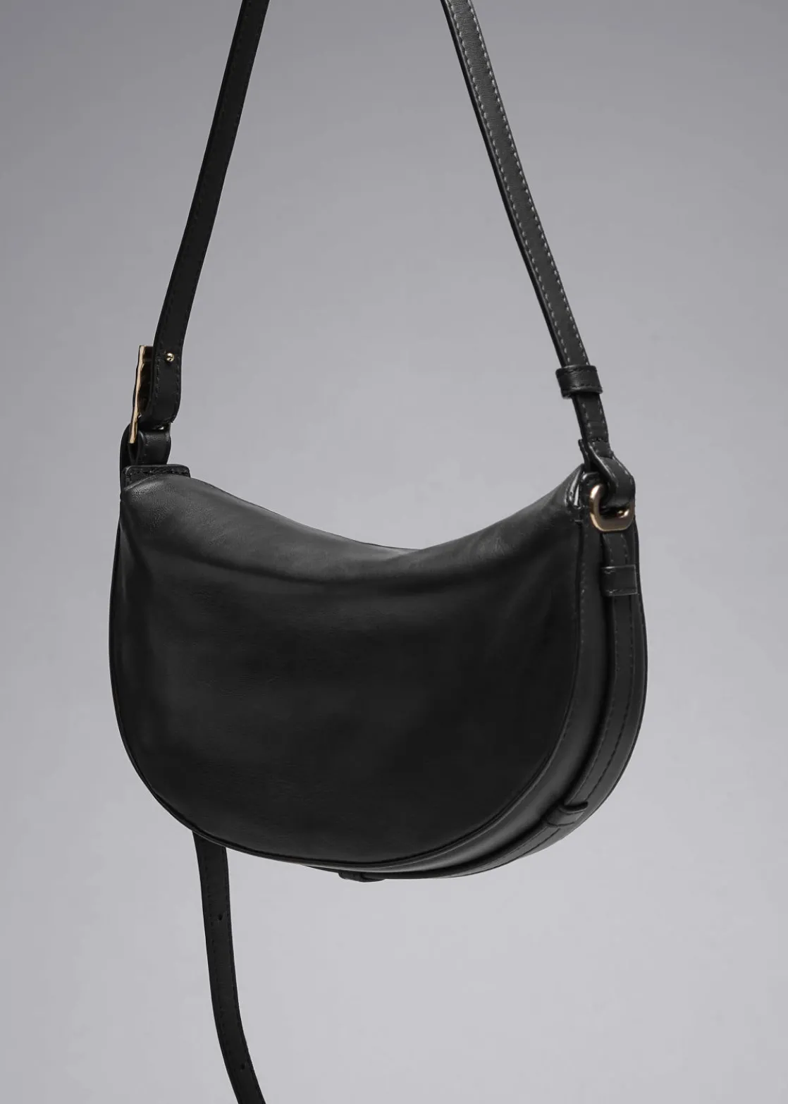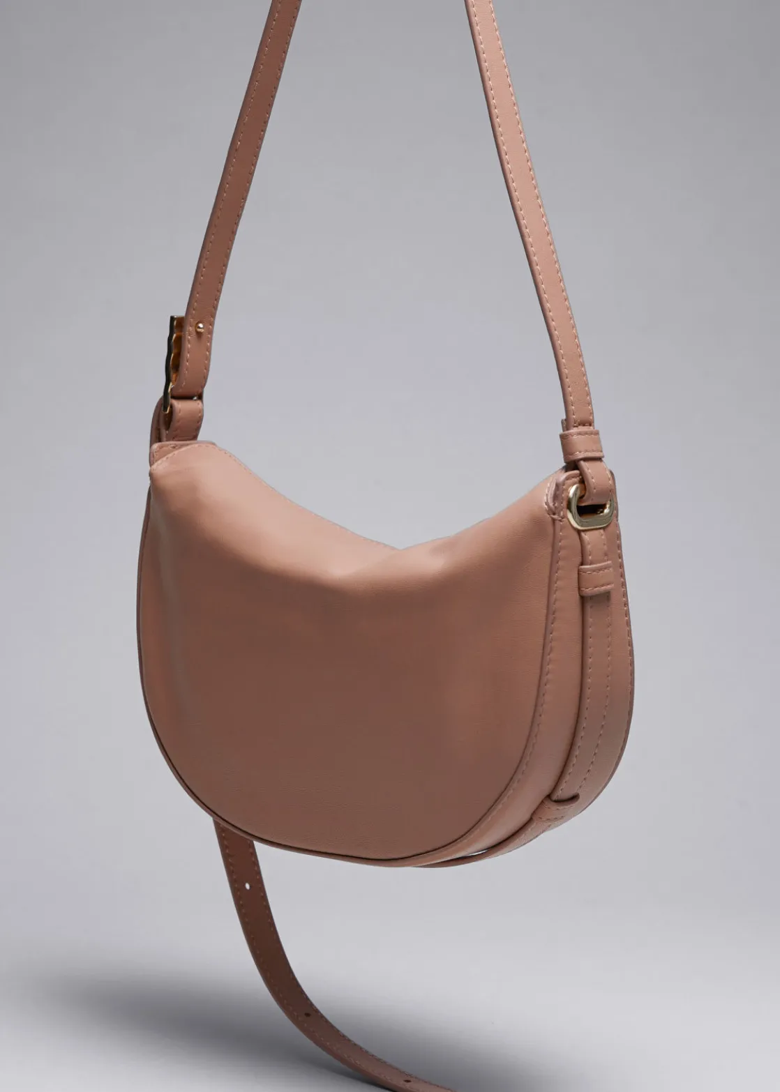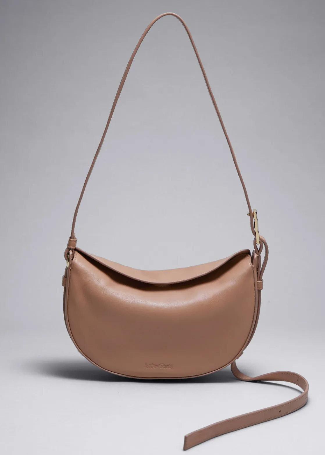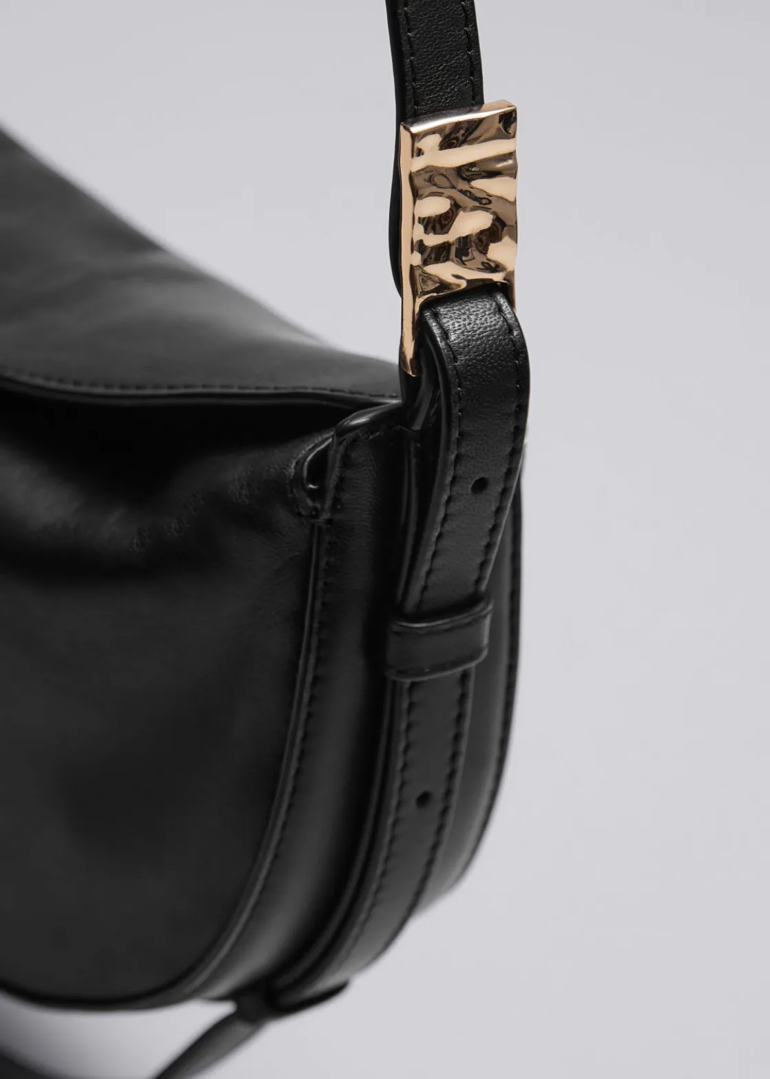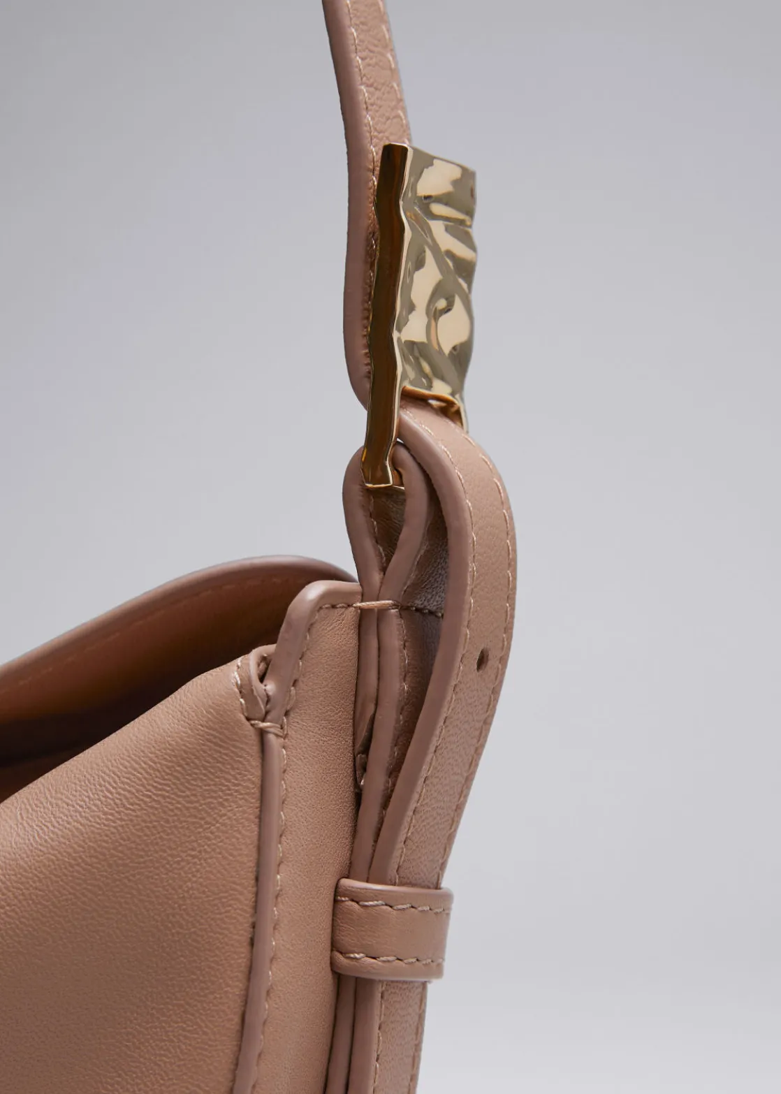 Shoulder bag crafted from smooth leather with a concealed magnetic fastening and an adjustable shoulder strap. Detailed simply with sculptural gold-tone buckle. The cotton lined interior holds an inner pocket.