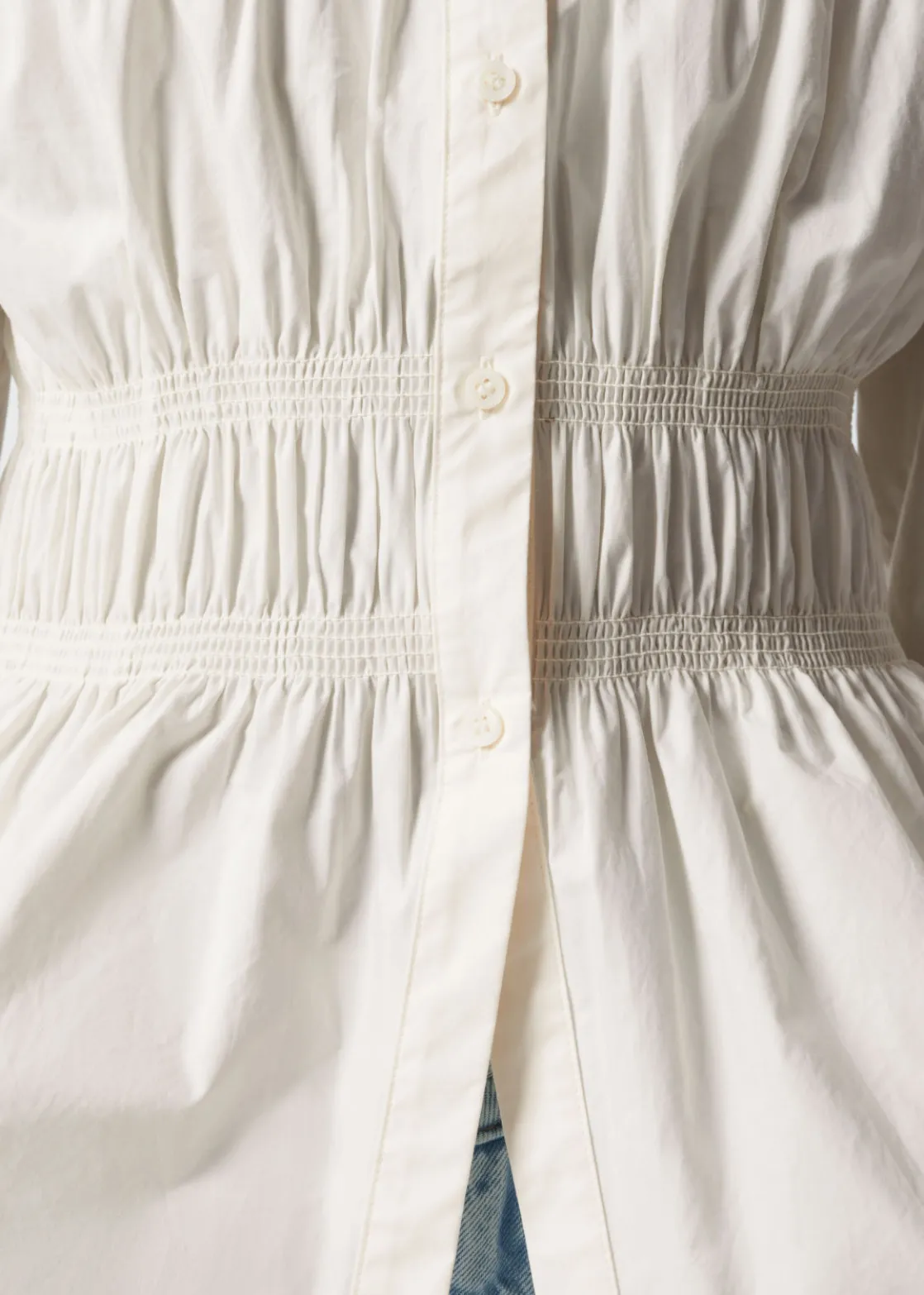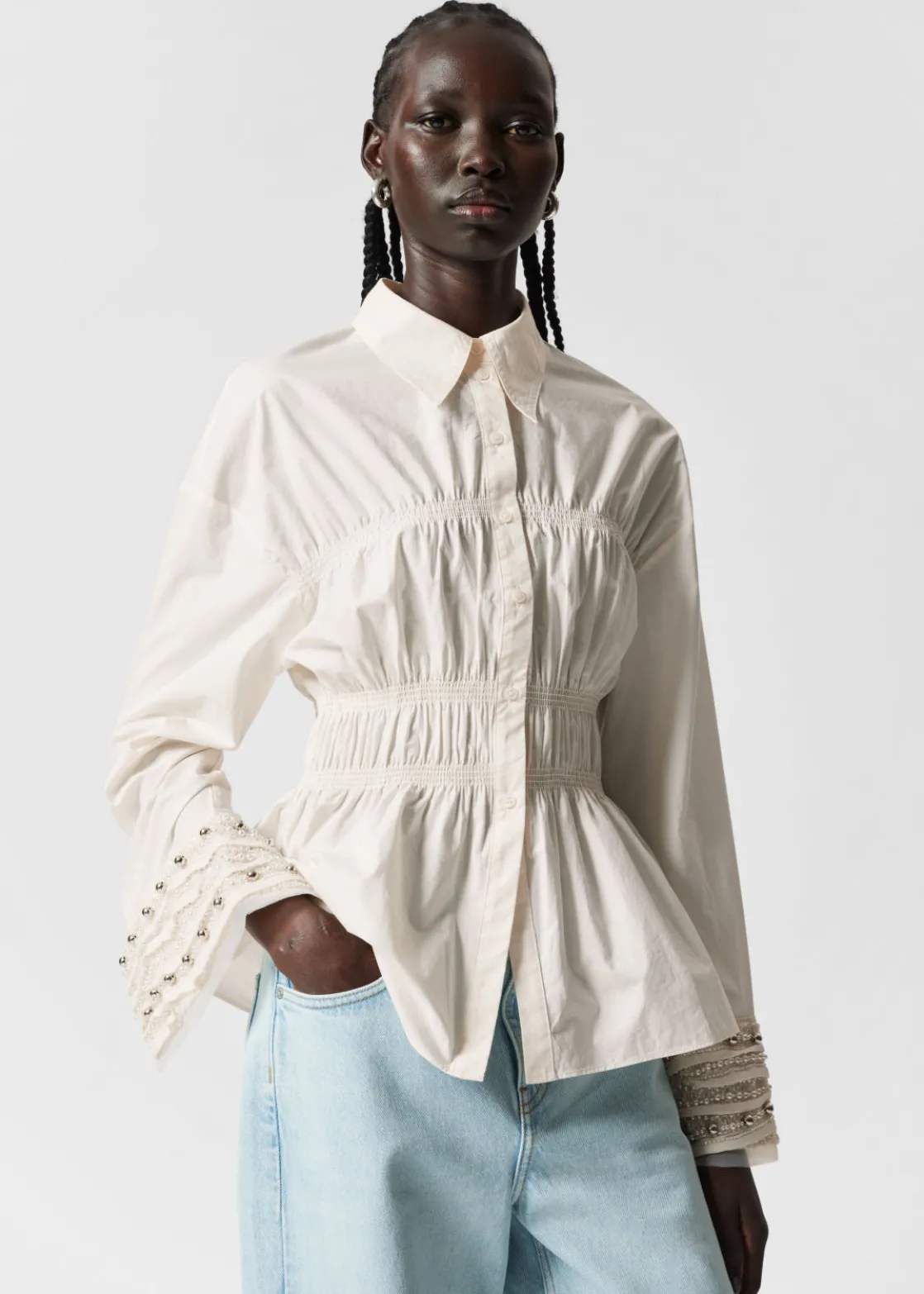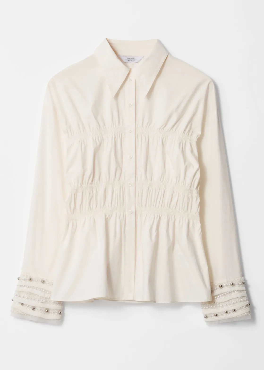 Long-sleeve shirt featuring smocked detailing and slits at the cuffs.