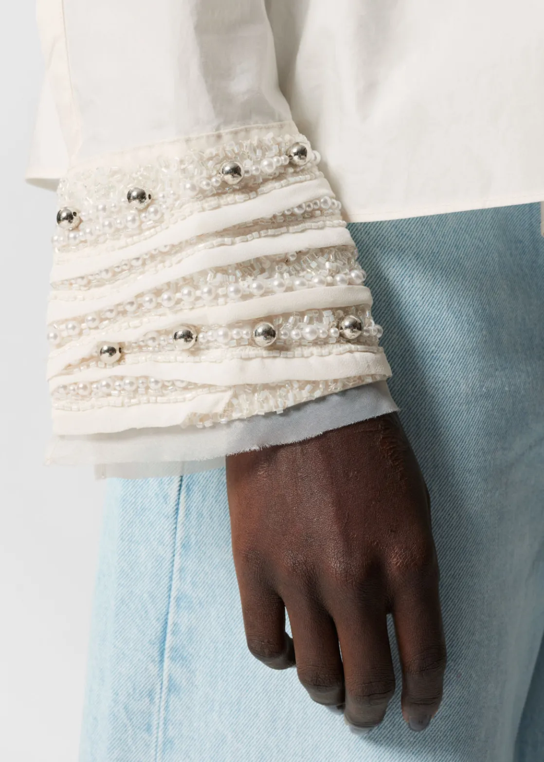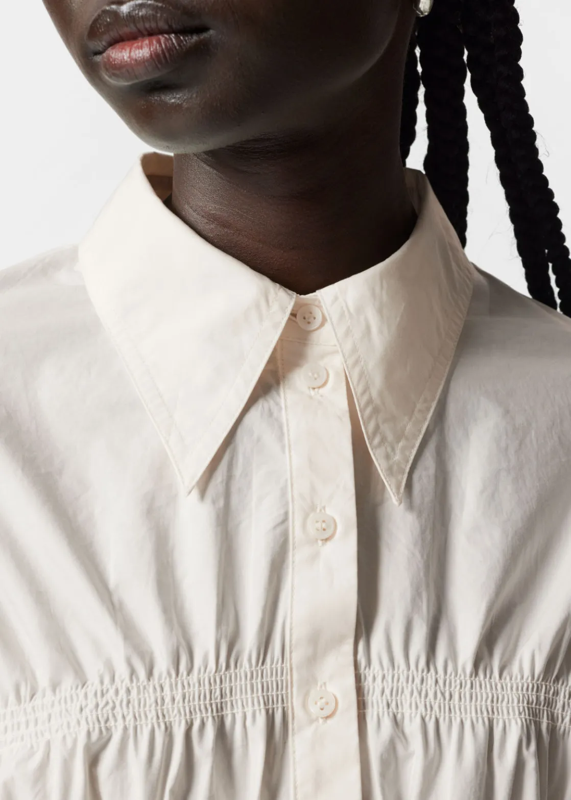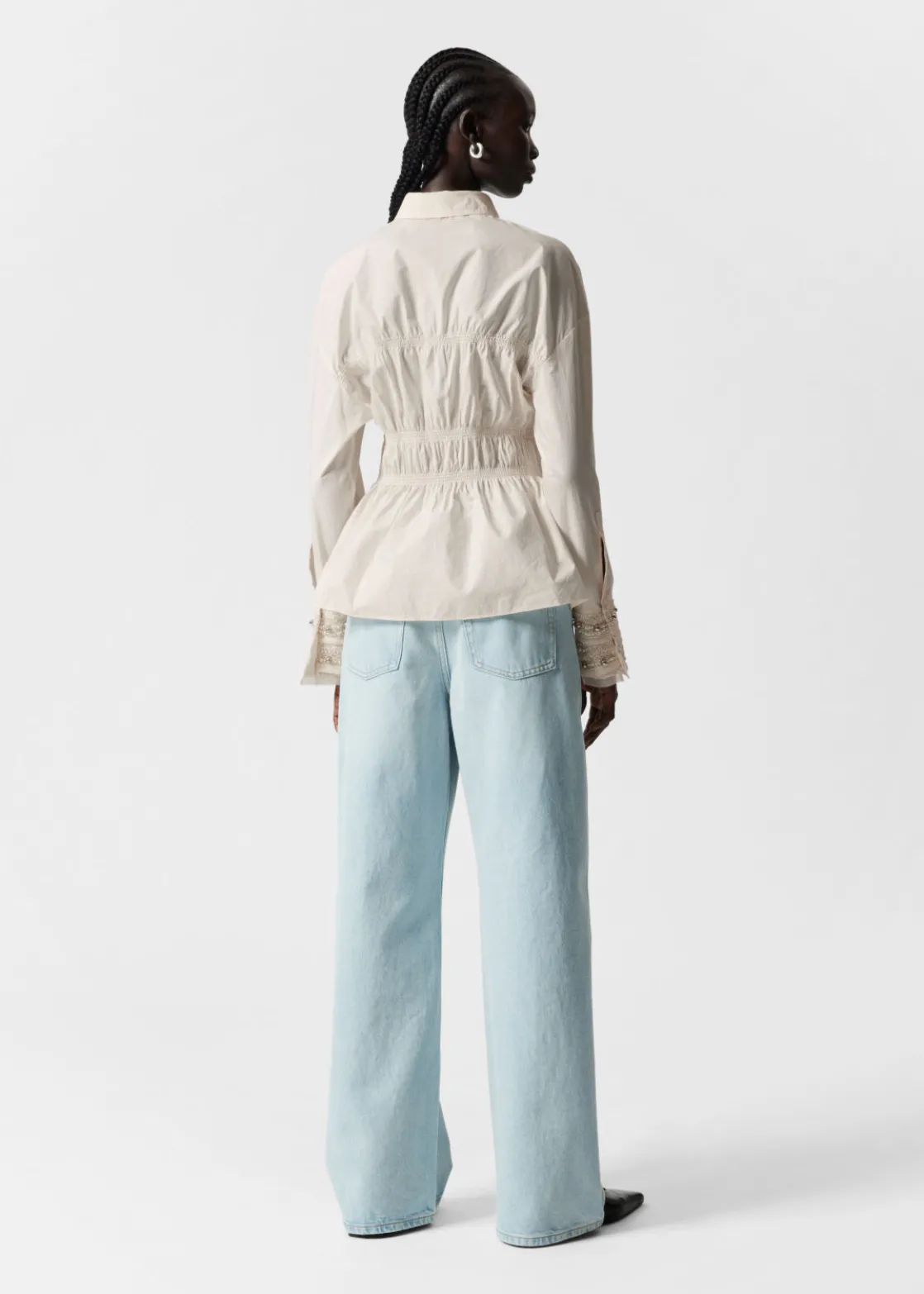 Long-sleeve shirt featuring smocked detailing and slits at the cuffs.
