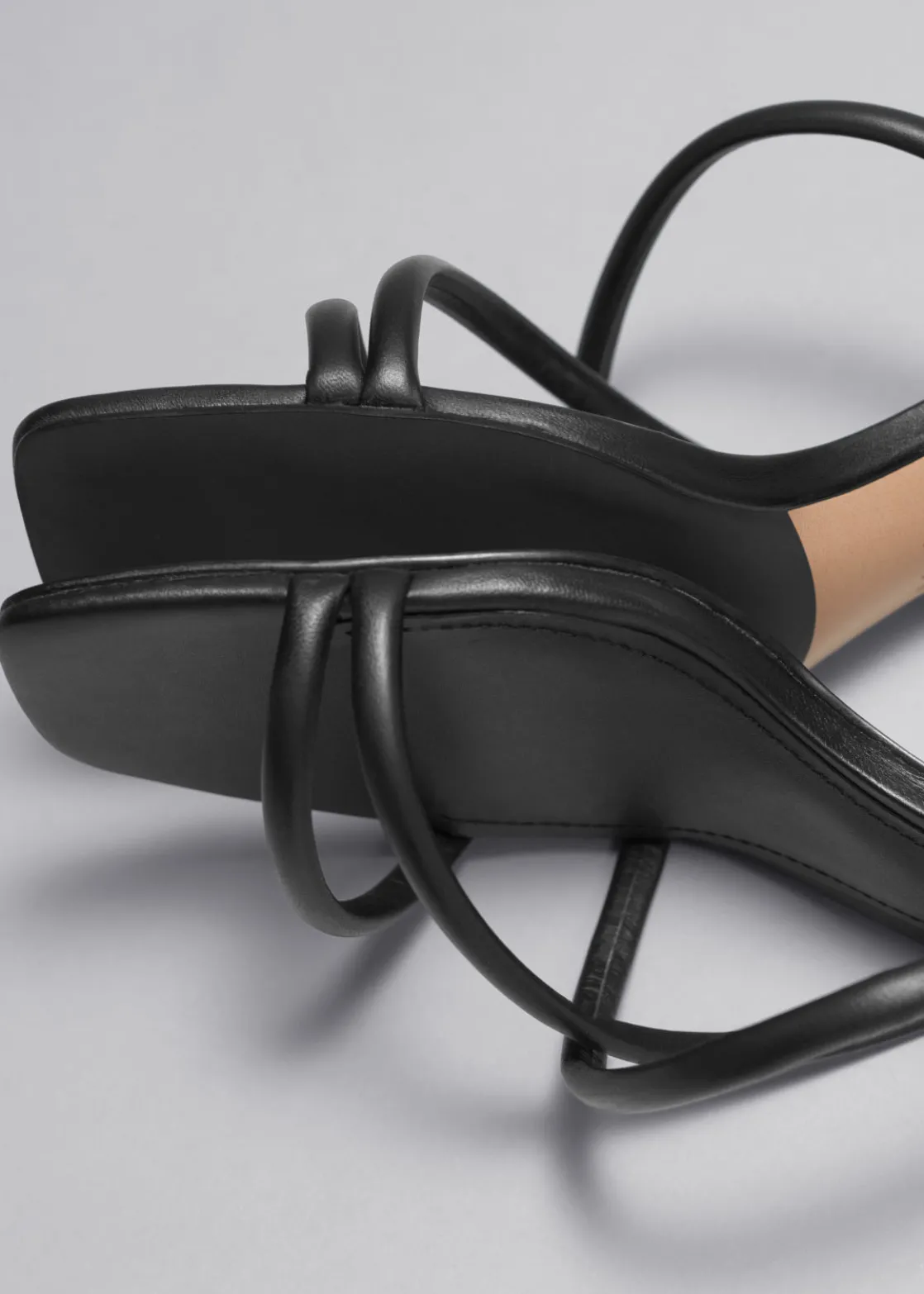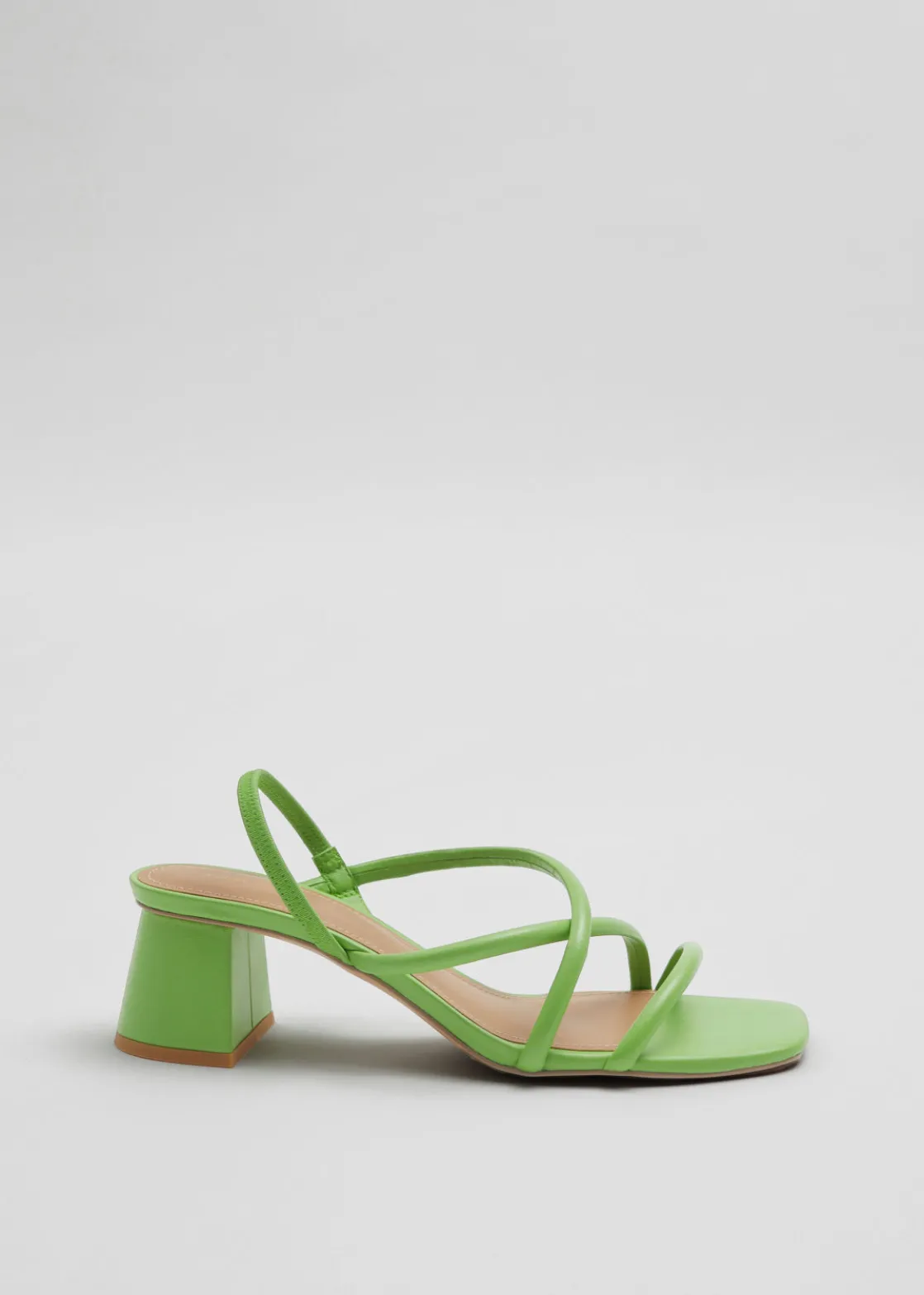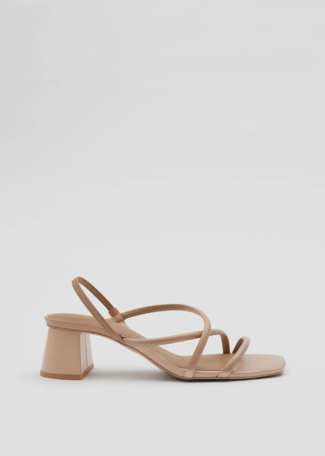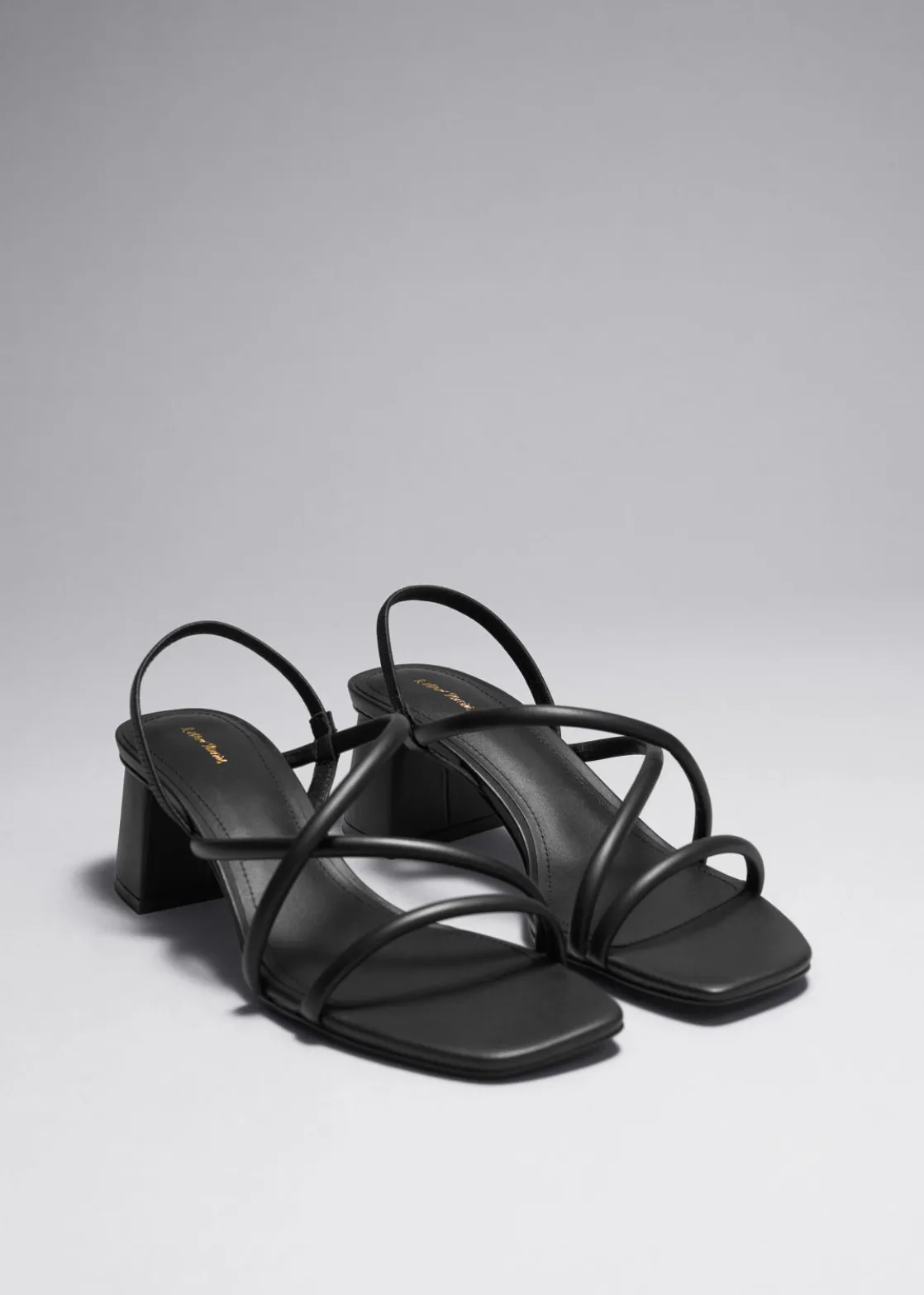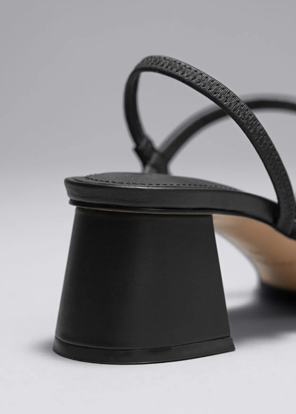 Block heel sandals crafted from soft leather. Featuring a minimalistic strappy silhouettefinished with an elastic back strap for an adjustable fit.