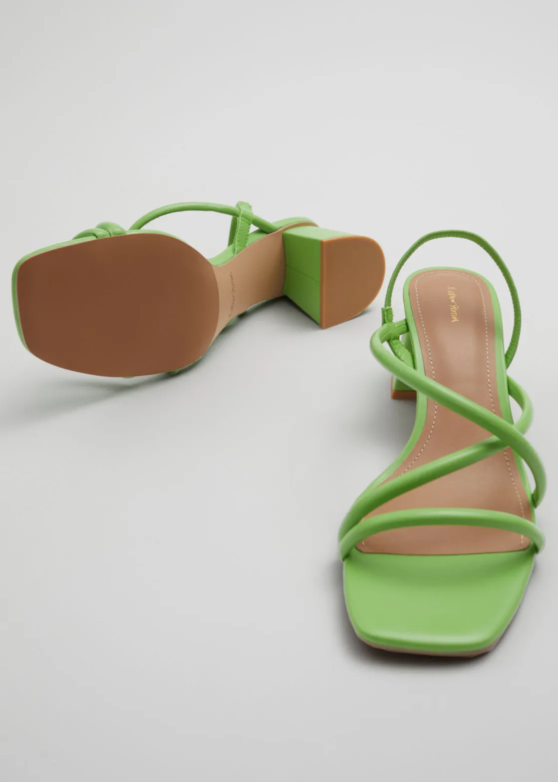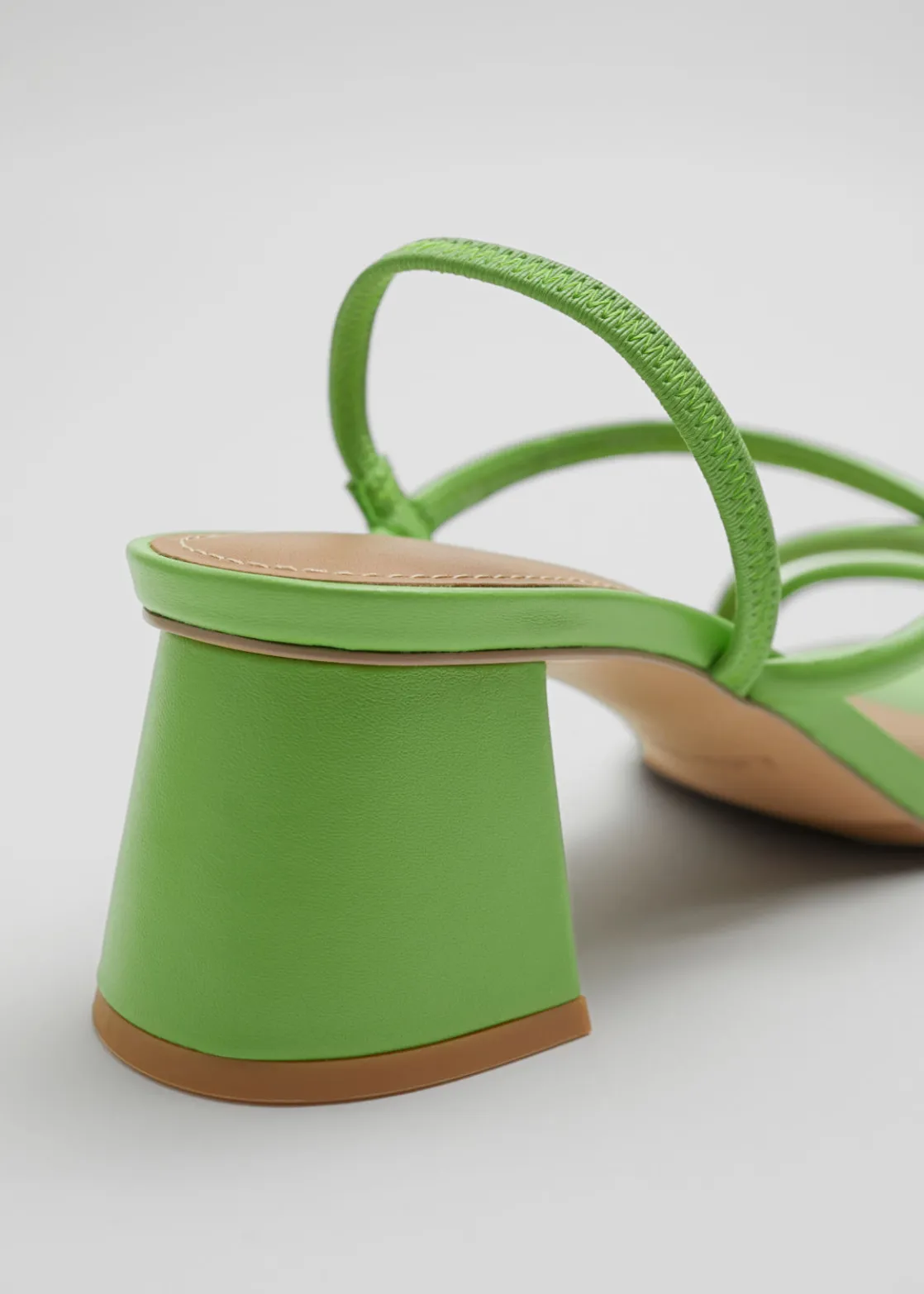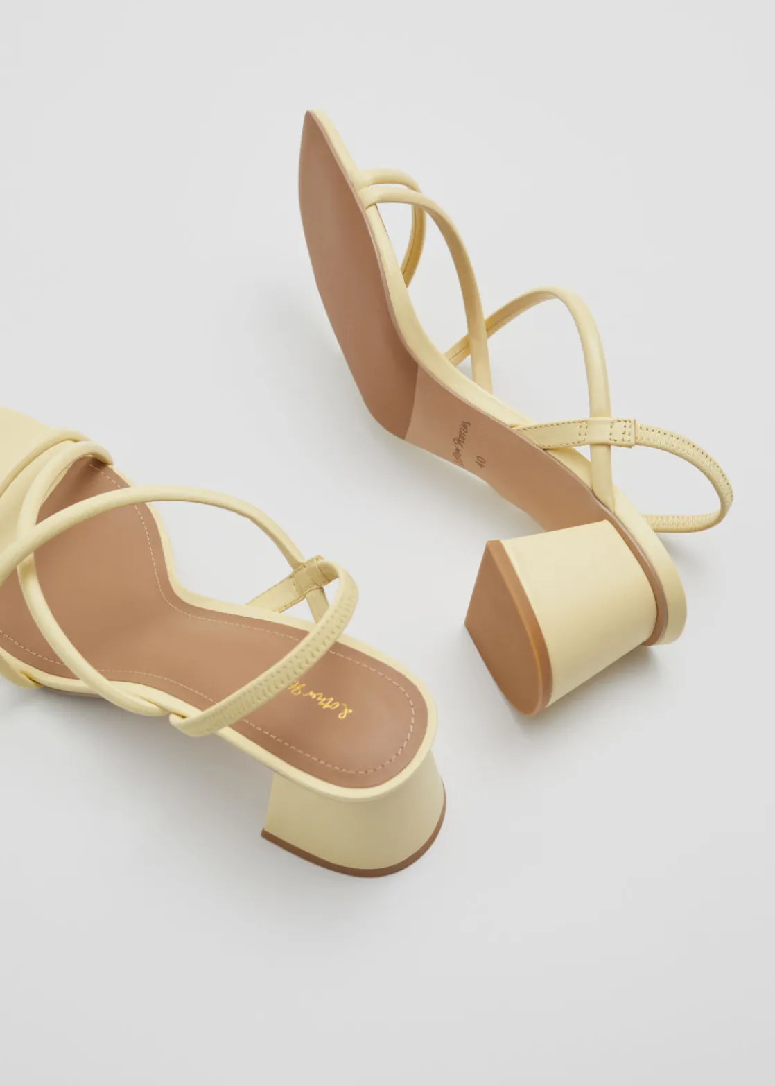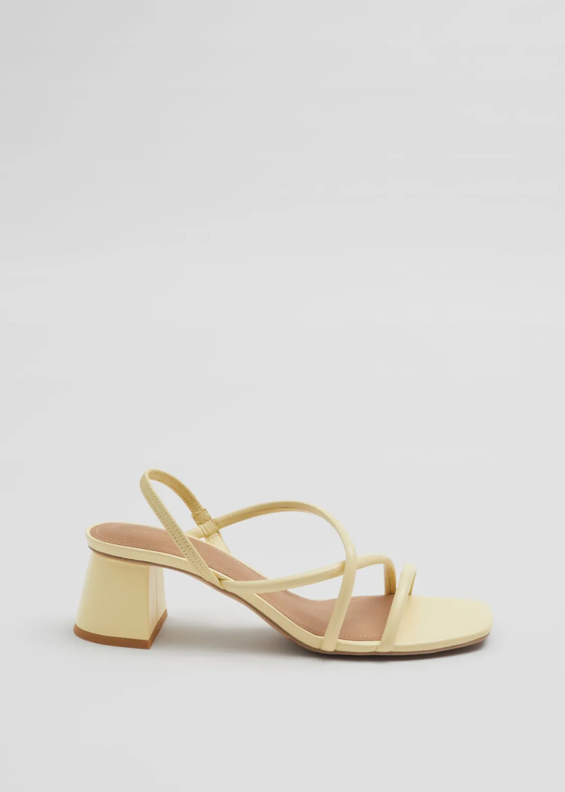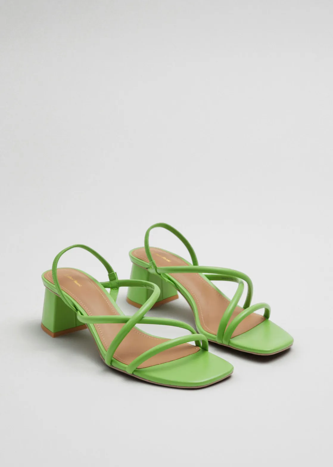 Block heel sandals crafted from soft leather. Featuring a minimalistic strappy silhouettefinished with an elastic back strap for an adjustable fit.