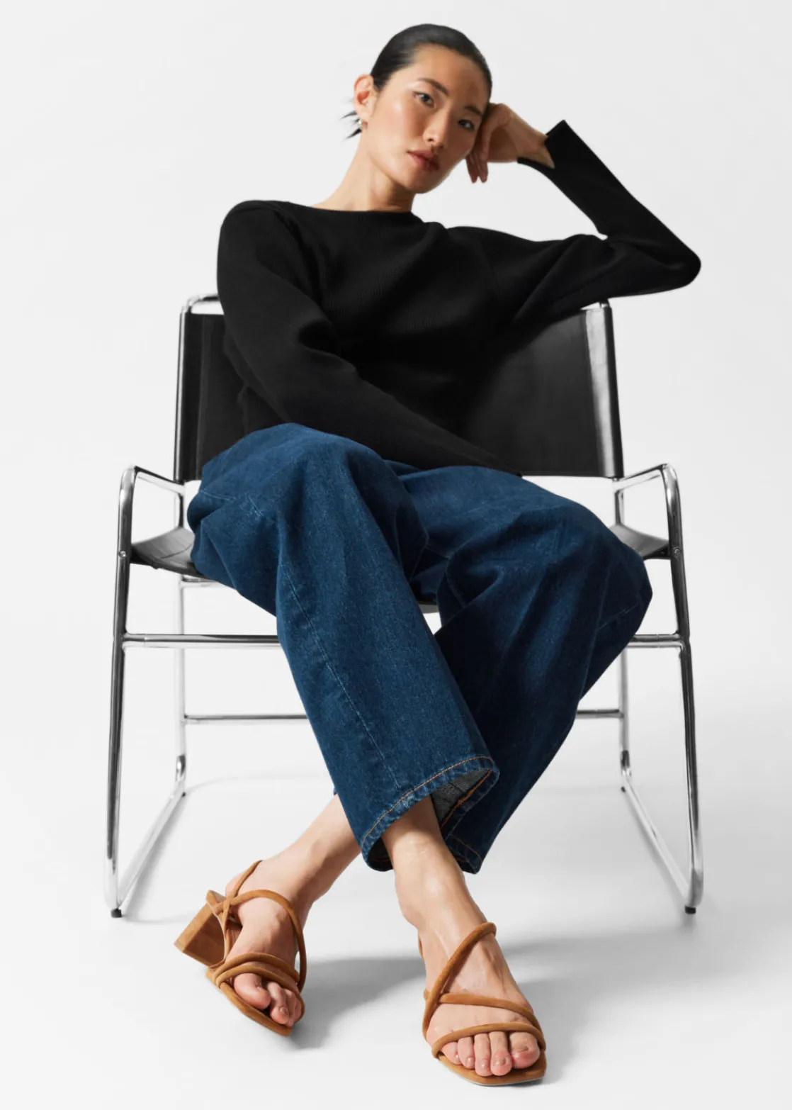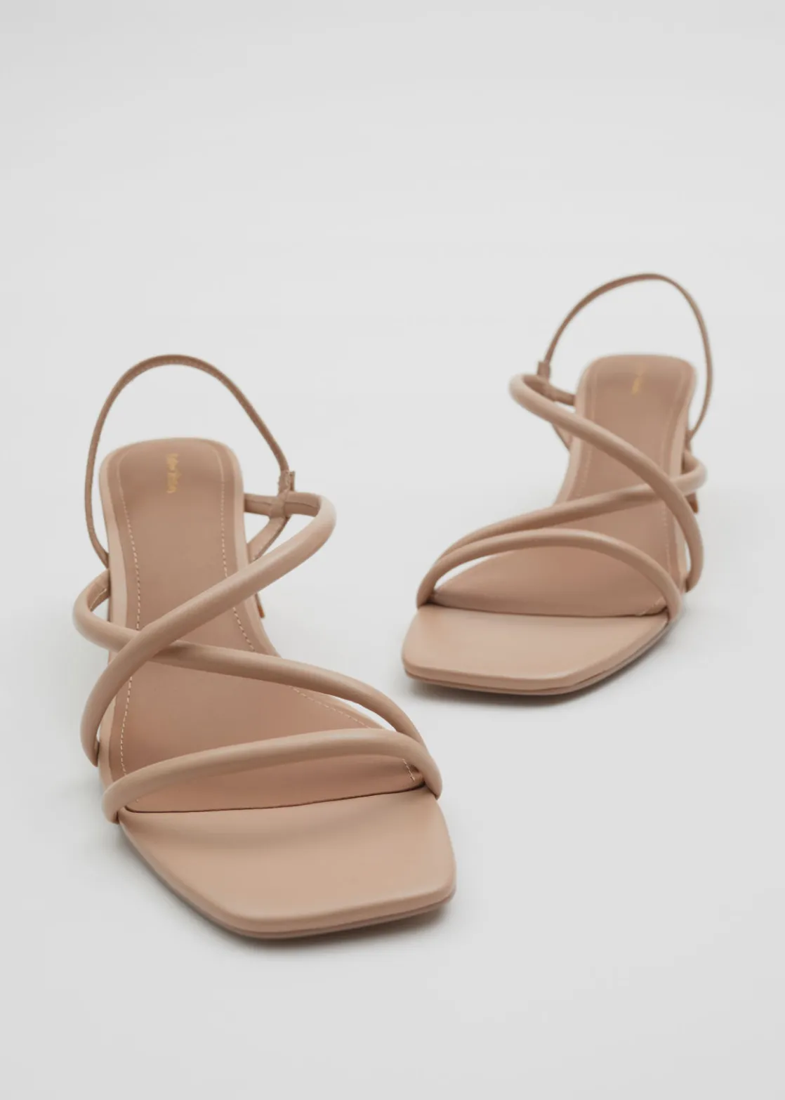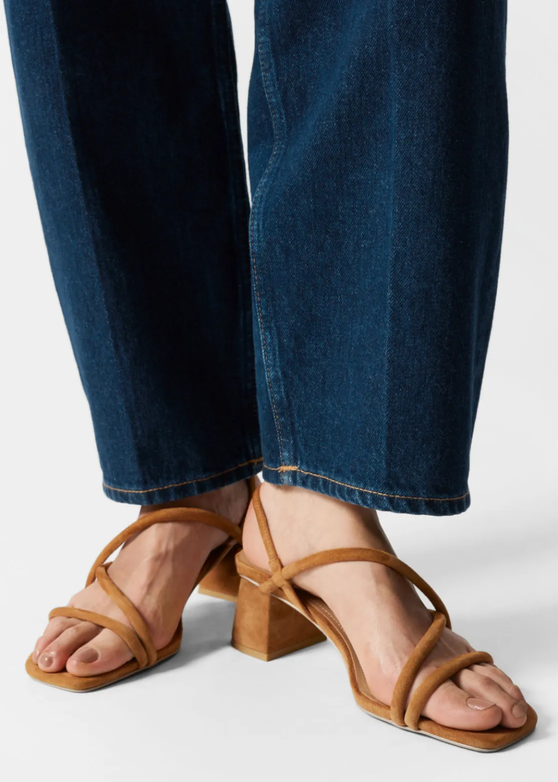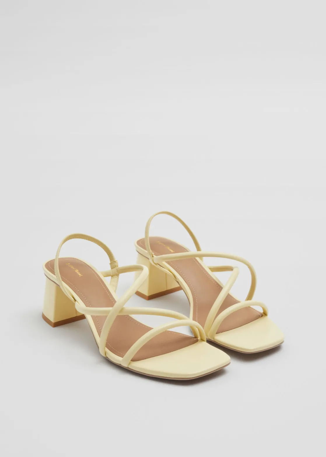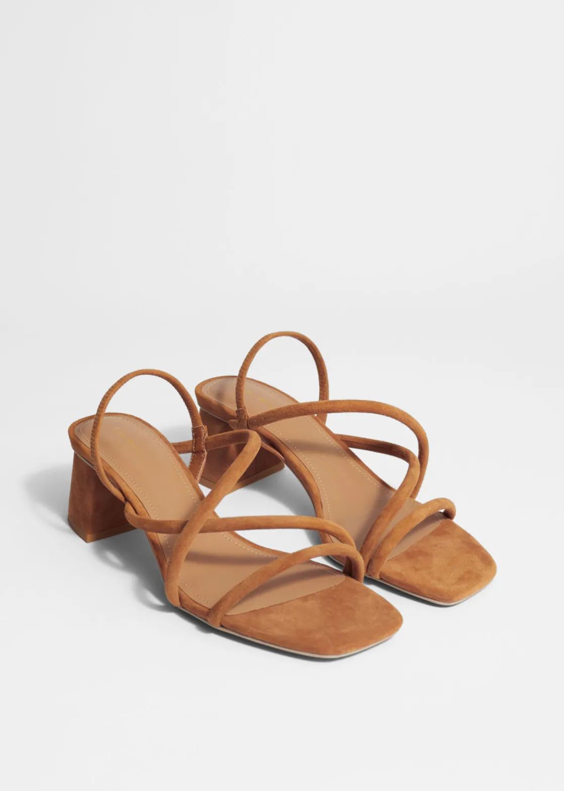 Block heel sandals crafted from soft leather. Featuring a minimalistic strappy silhouettefinished with an elastic back strap for an adjustable fit.