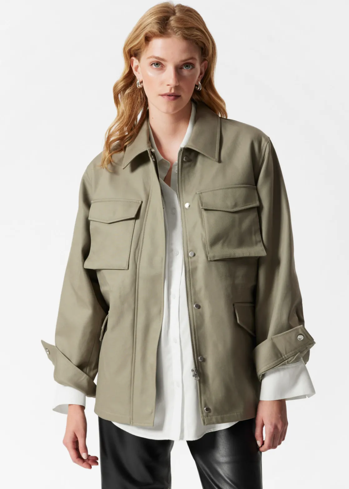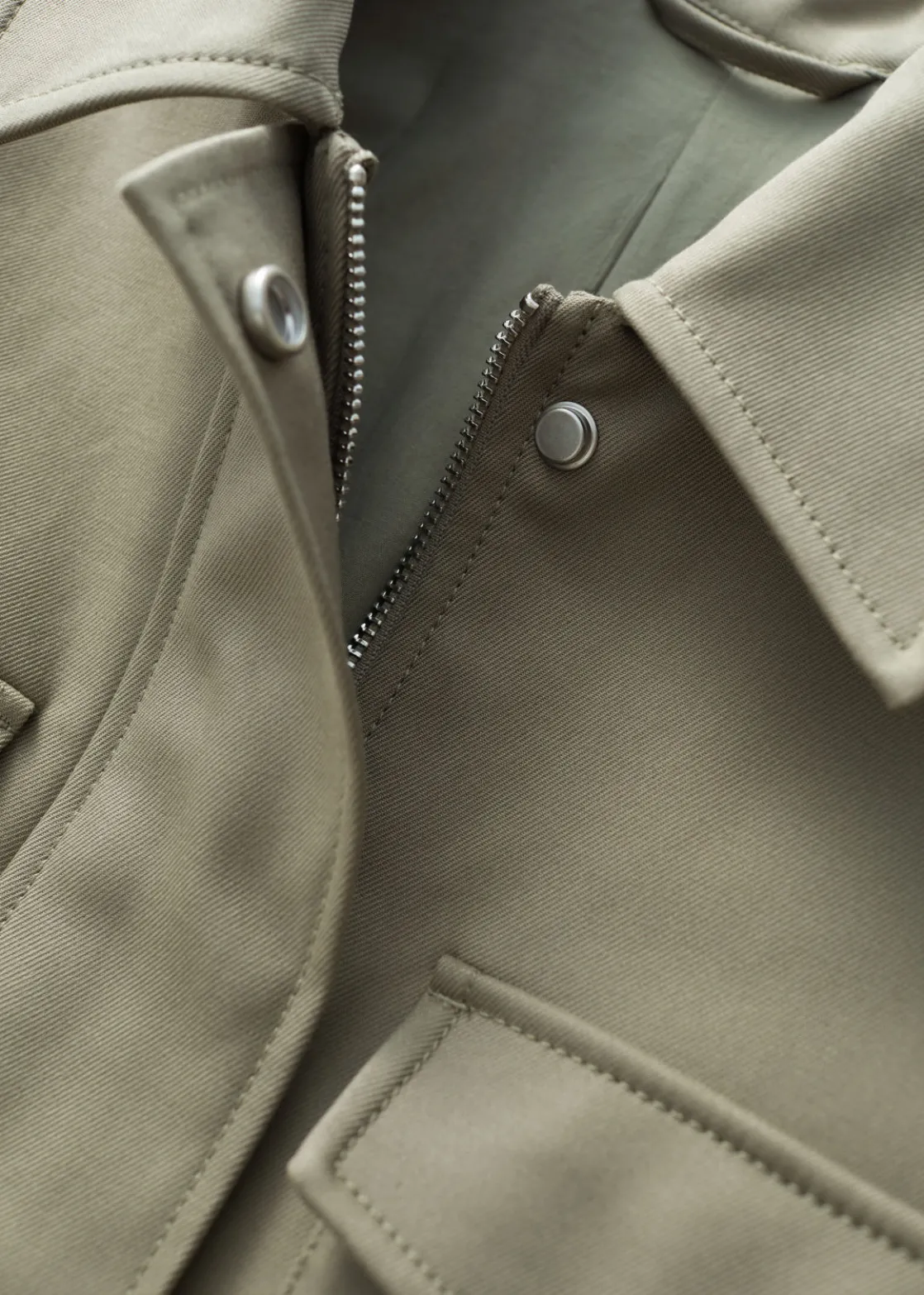 • Concealed centre front zipper and snap buttons