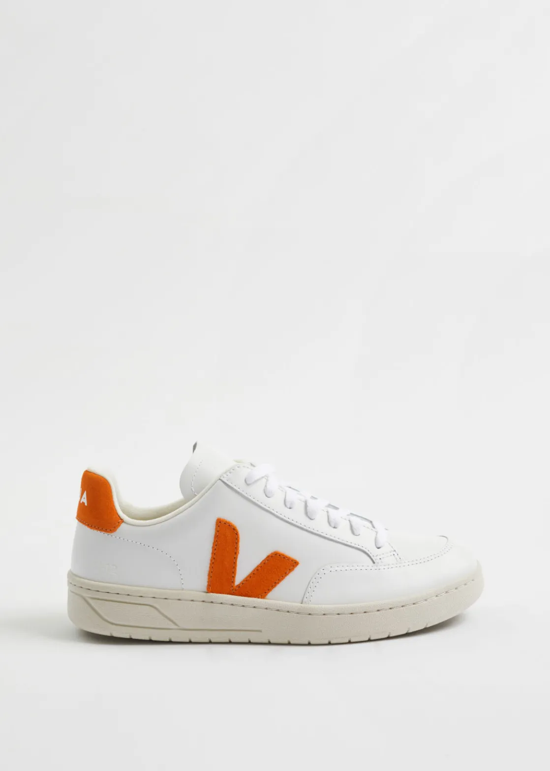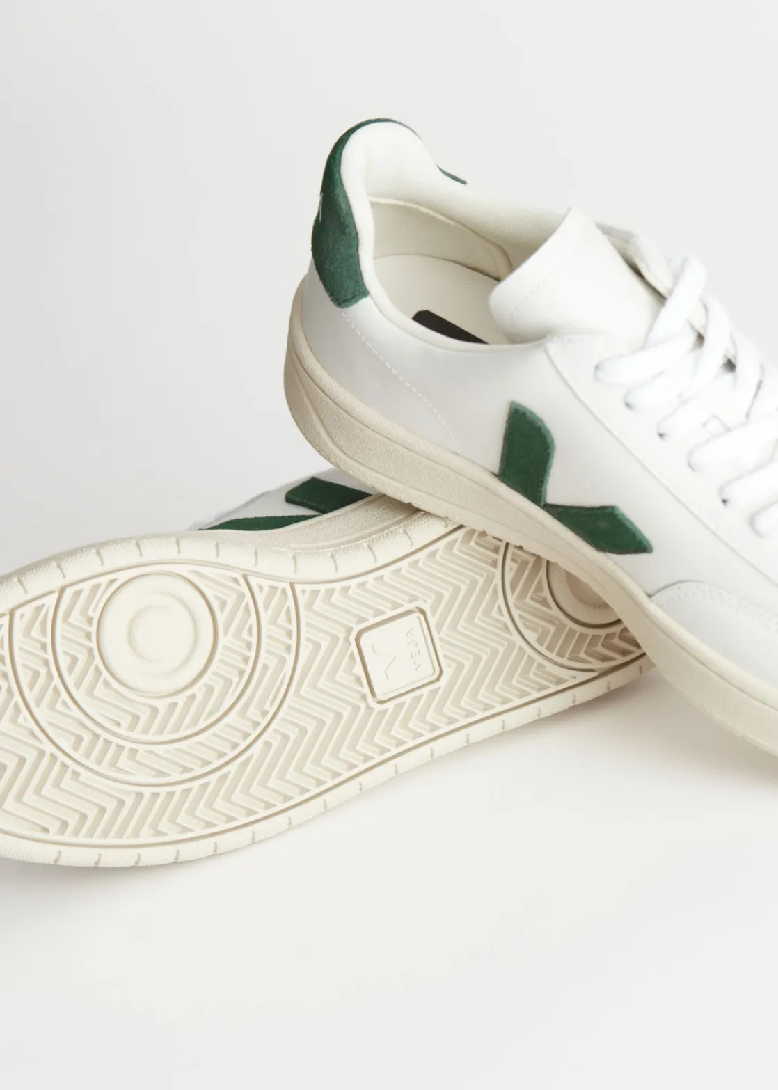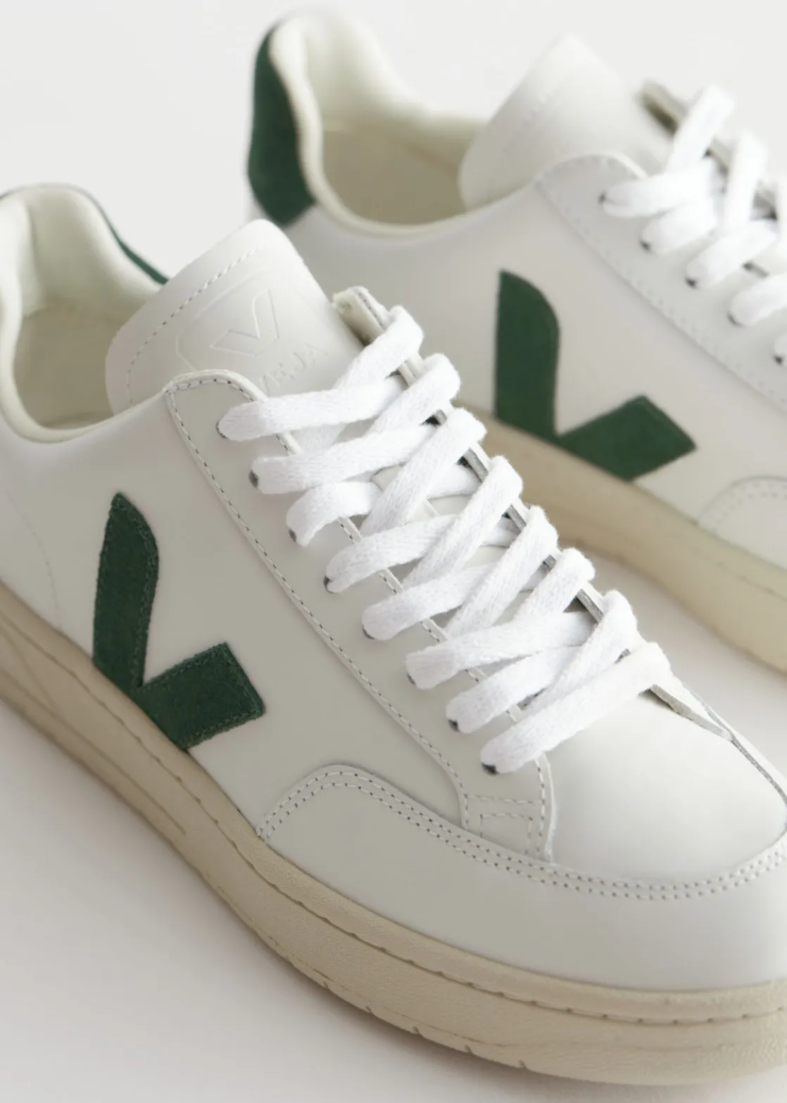Veja V-12 sneakers with a smooth leather upper, suede accents and signature “V” branding on the sides.