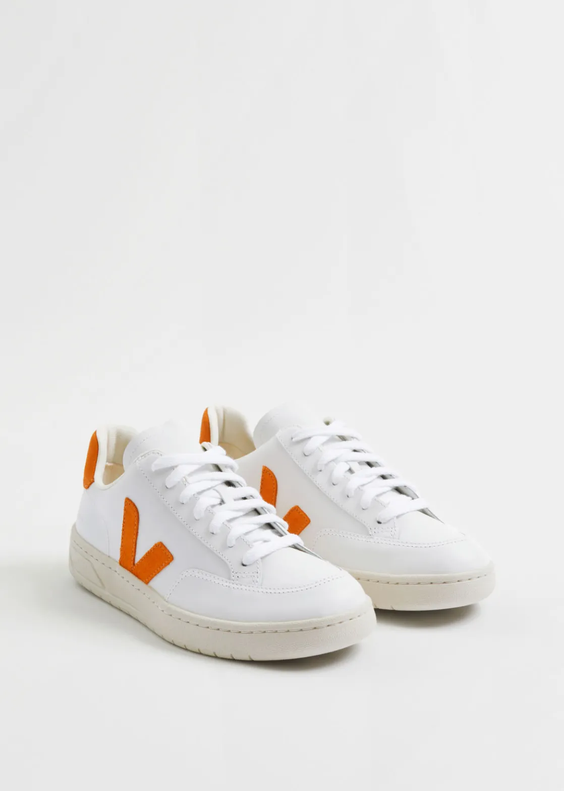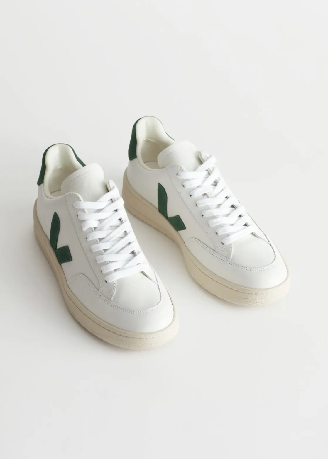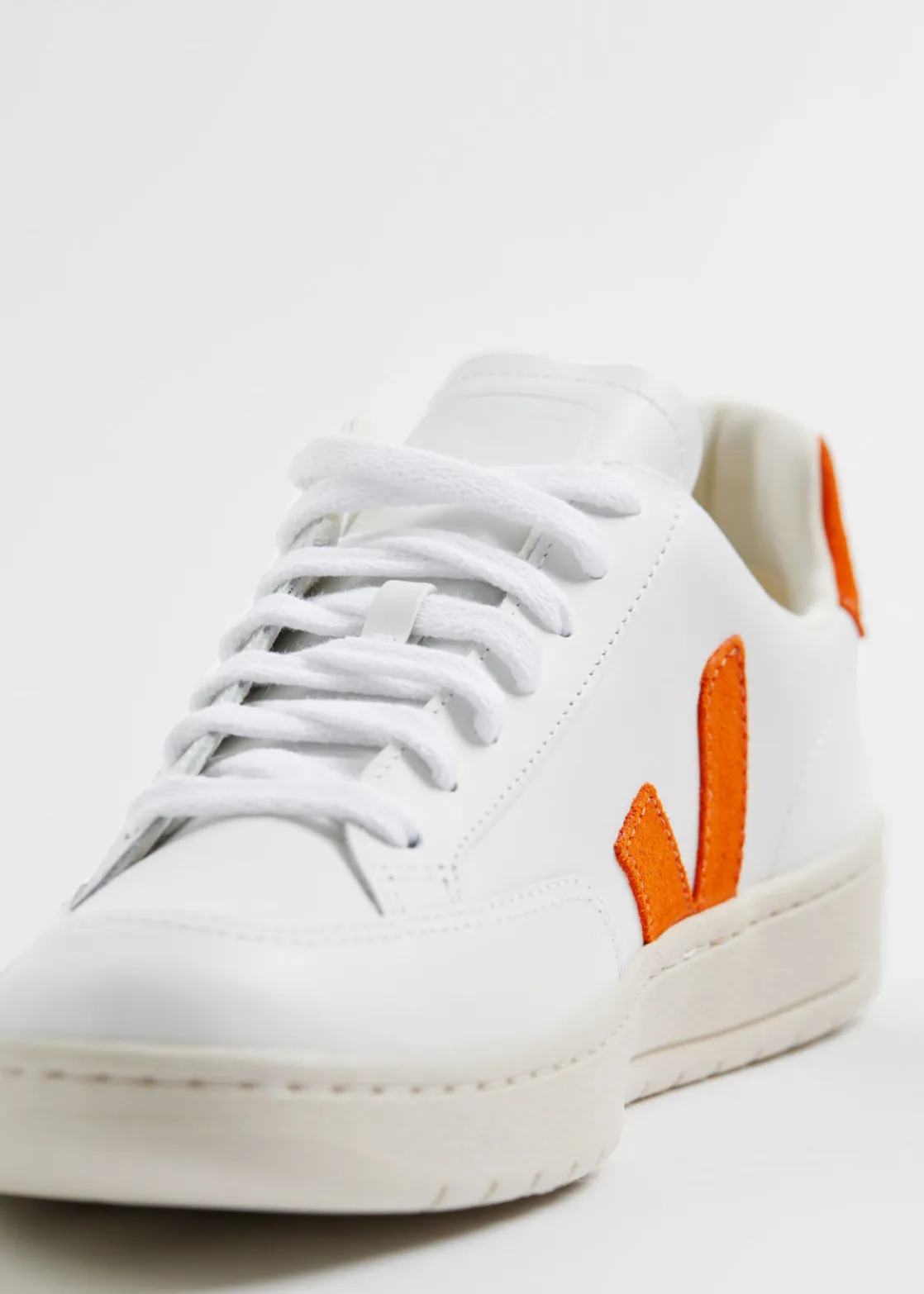 Veja V-12 sneakers with a smooth leather upper, suede accents and signature “V” branding on the sides.