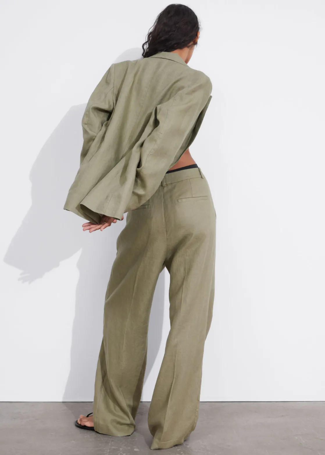 Wide high-waist trousers crafted from linen. Finished with centre front pleats.