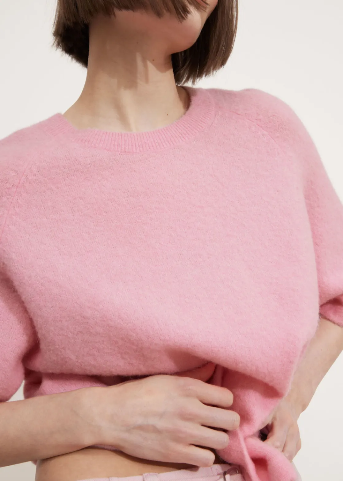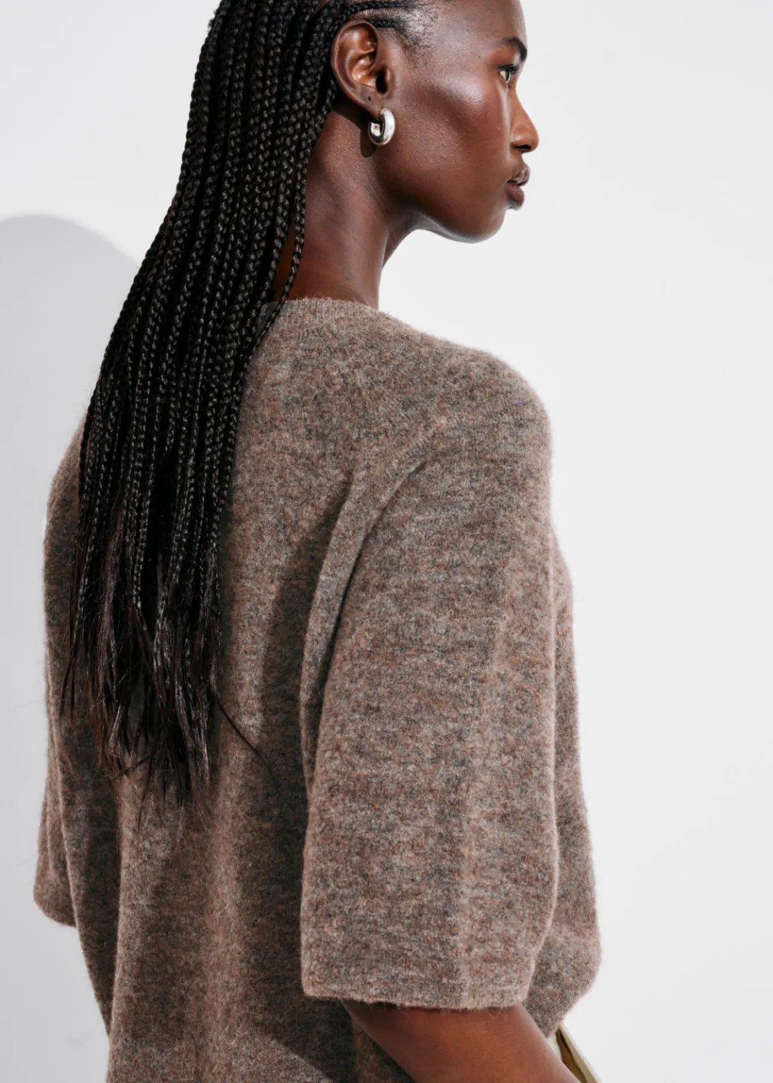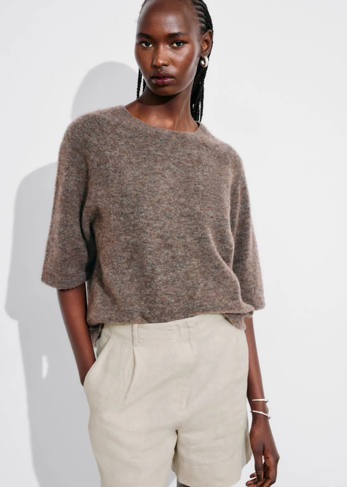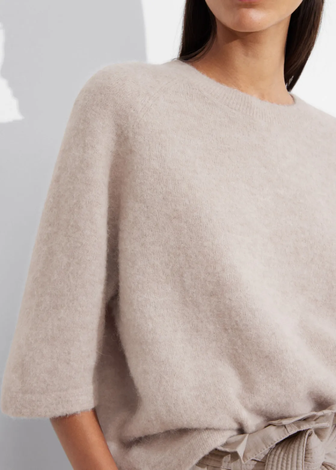 Crewneck t-shirt knitted from alpaca and merino wool.
